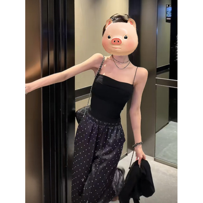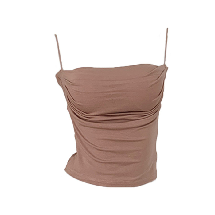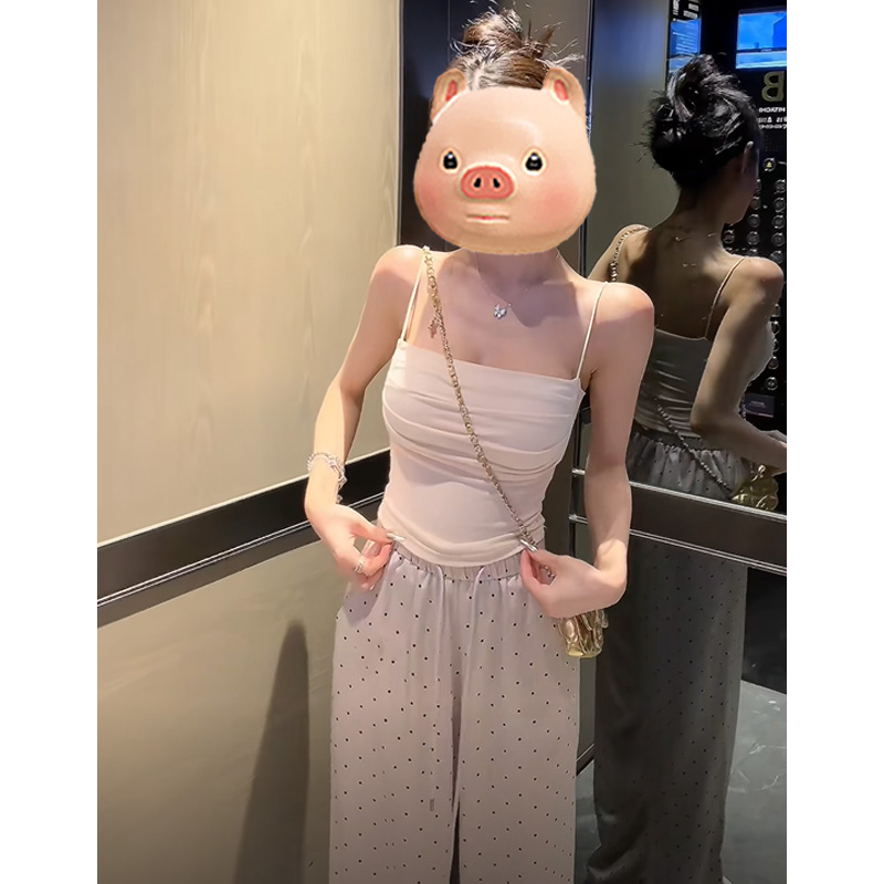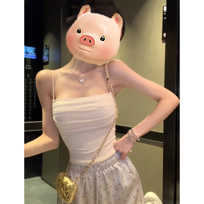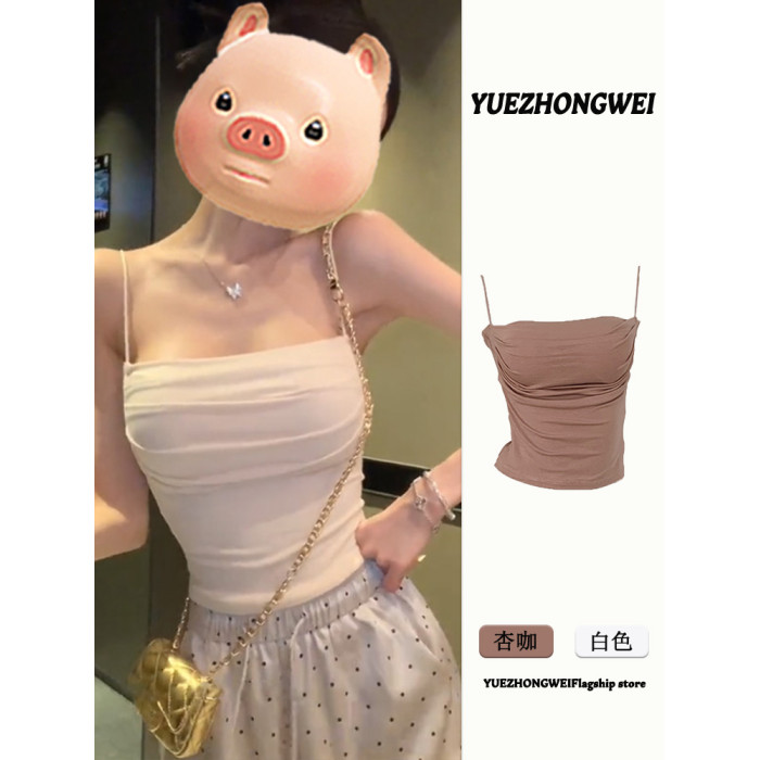 不規則褶皺吊帶背心女夏季2025新款內搭外穿修身辣妹短款無袖上衣