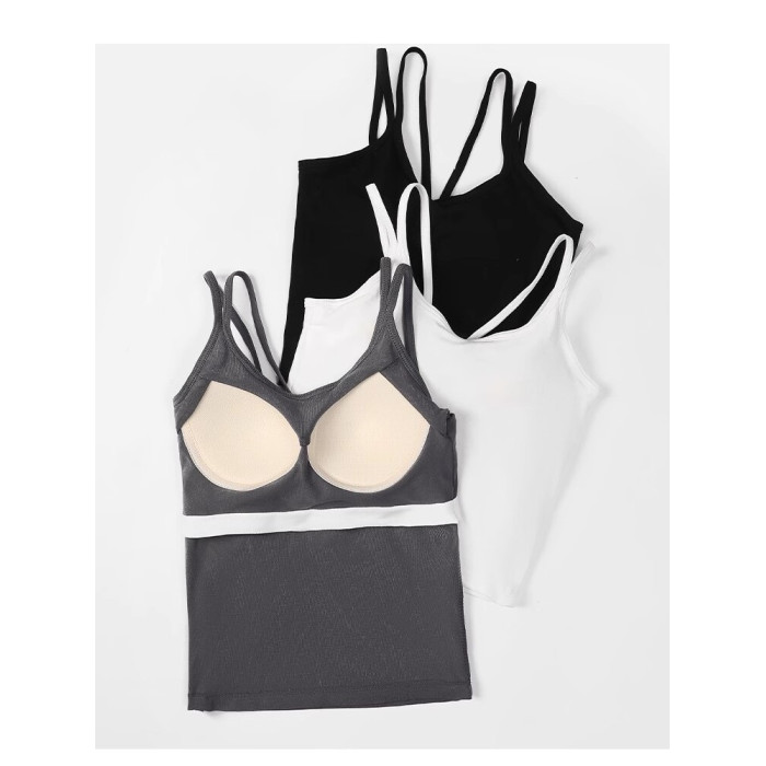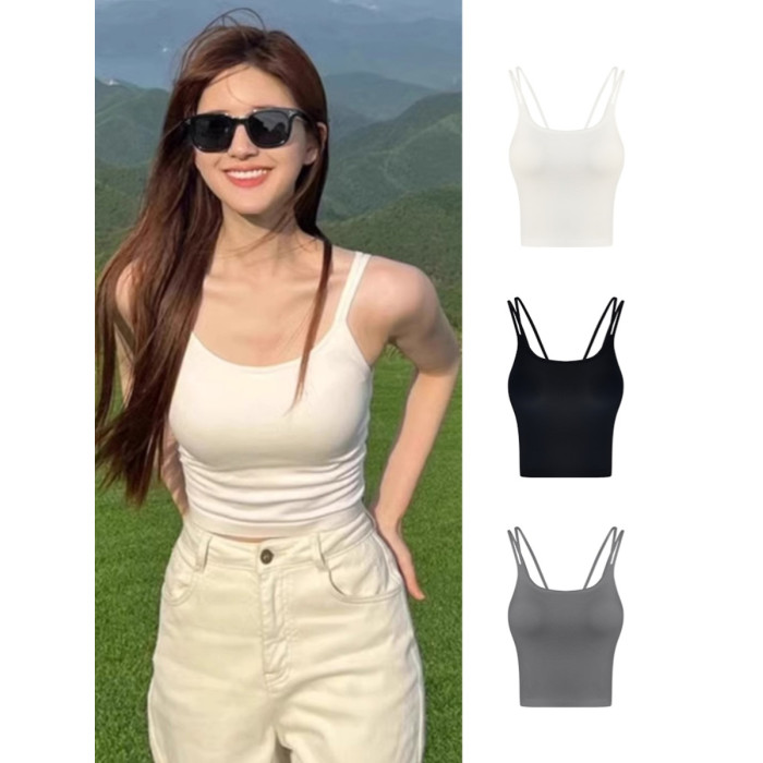 胖mm大碼女裝白色吊帶背心內搭女秋季外穿帶胸墊美背文胸一體上衣