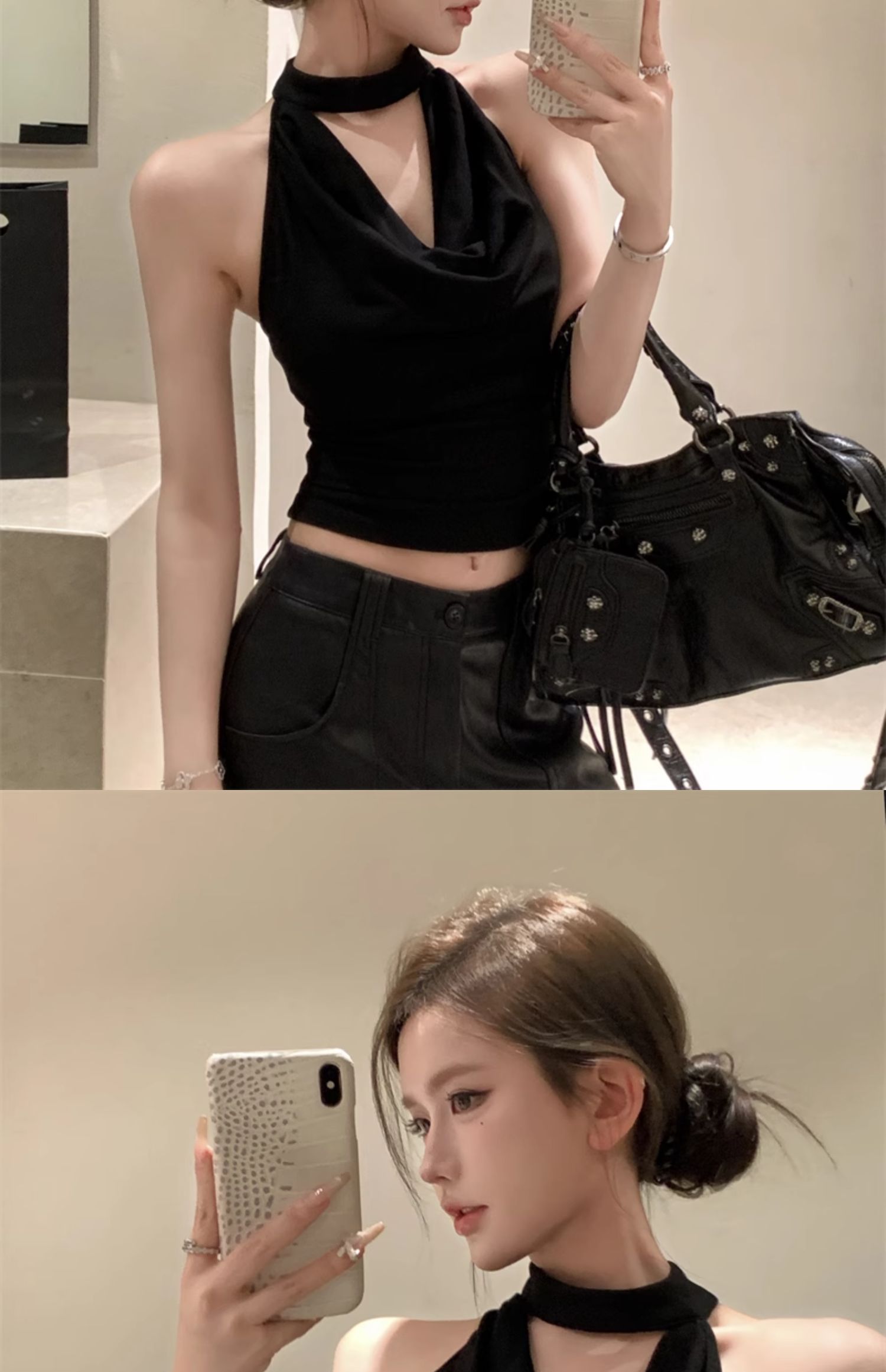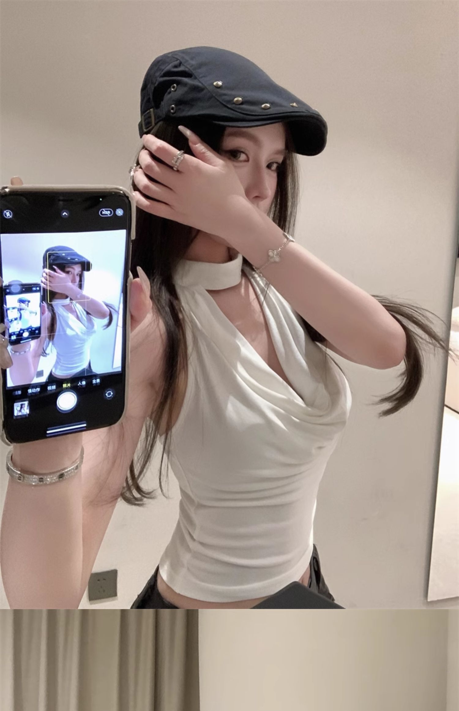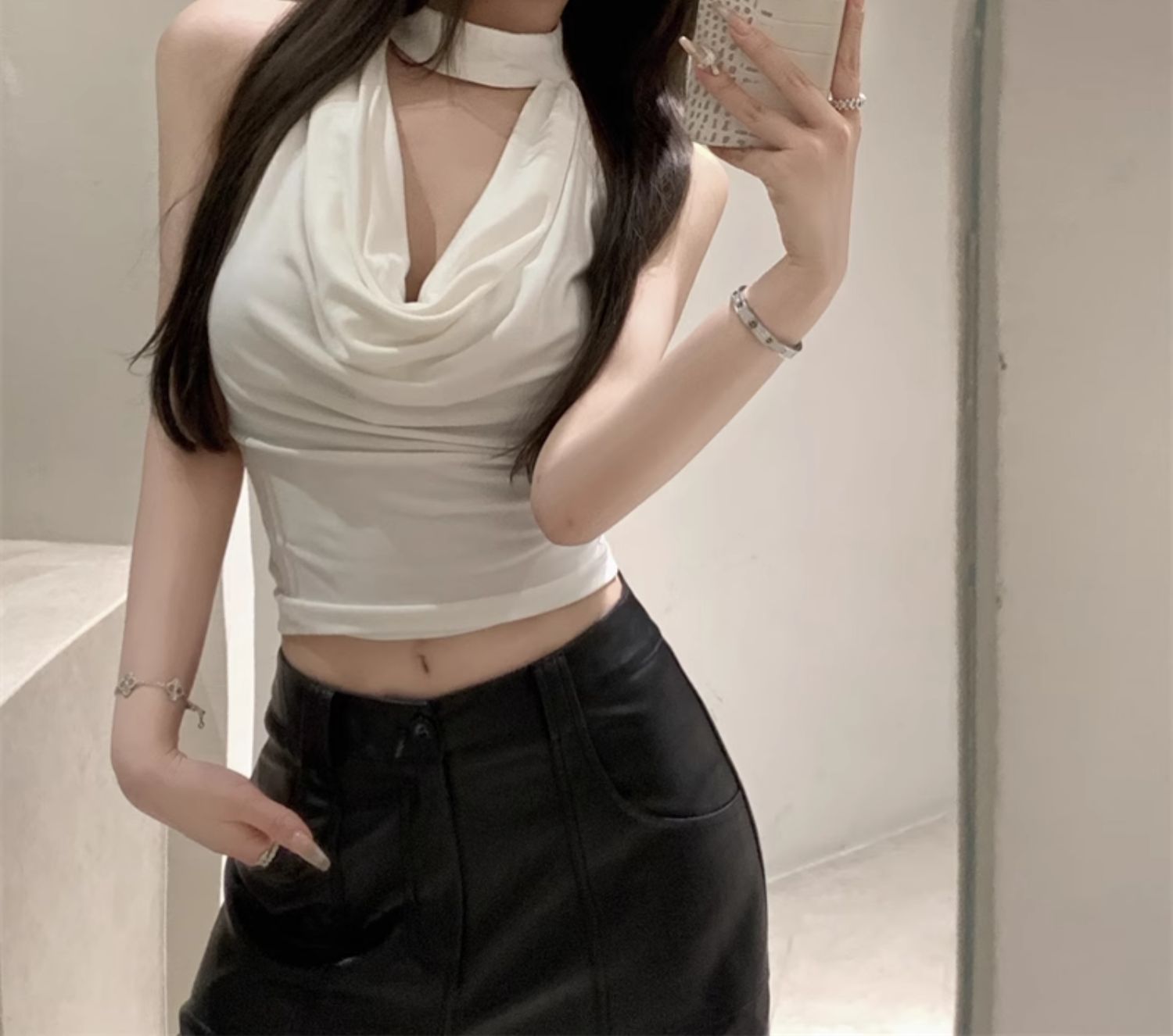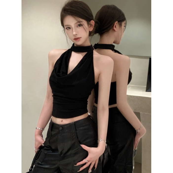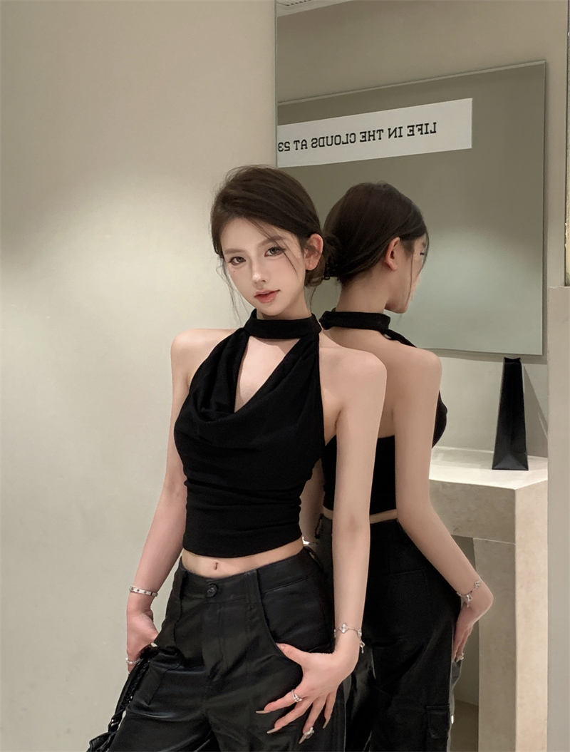 純欲氣質收腰掛脖吊帶背心女夏季外穿蕩領設計感小衆短款辣妹上衣