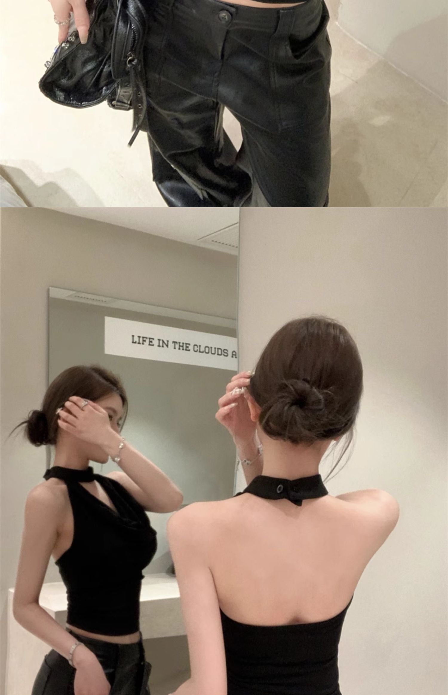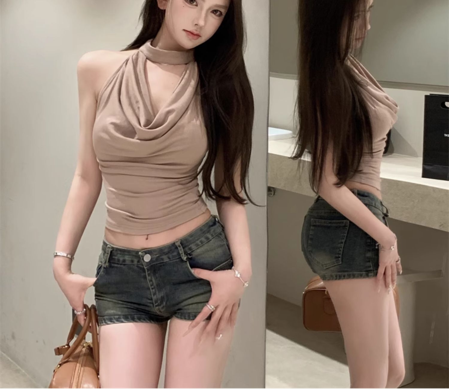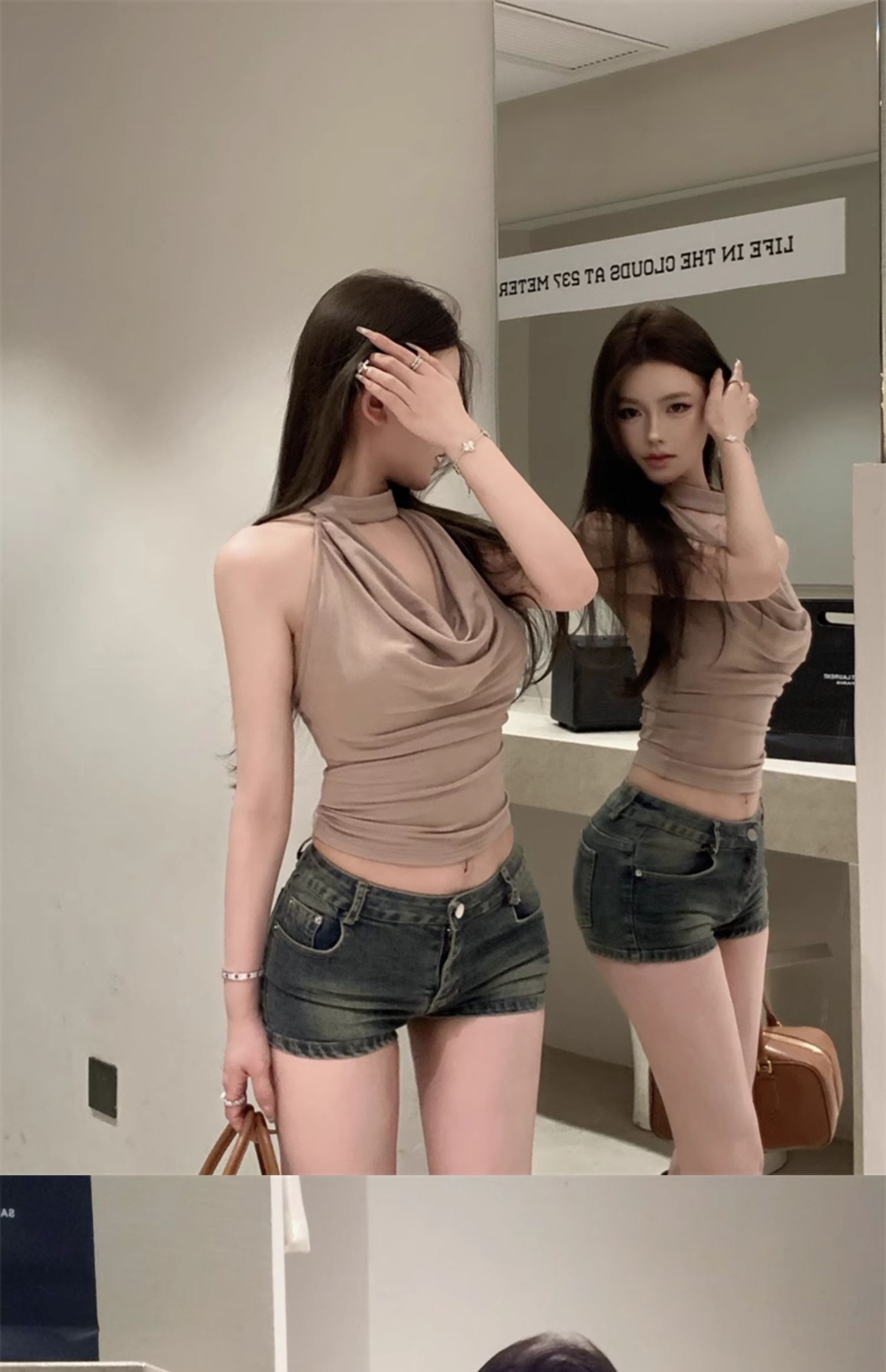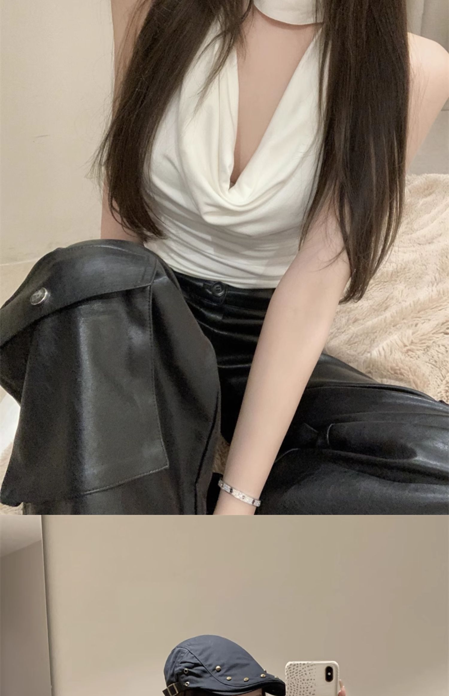 純欲氣質收腰掛脖吊帶背心女夏季外穿蕩領設計感小衆短款辣妹上衣