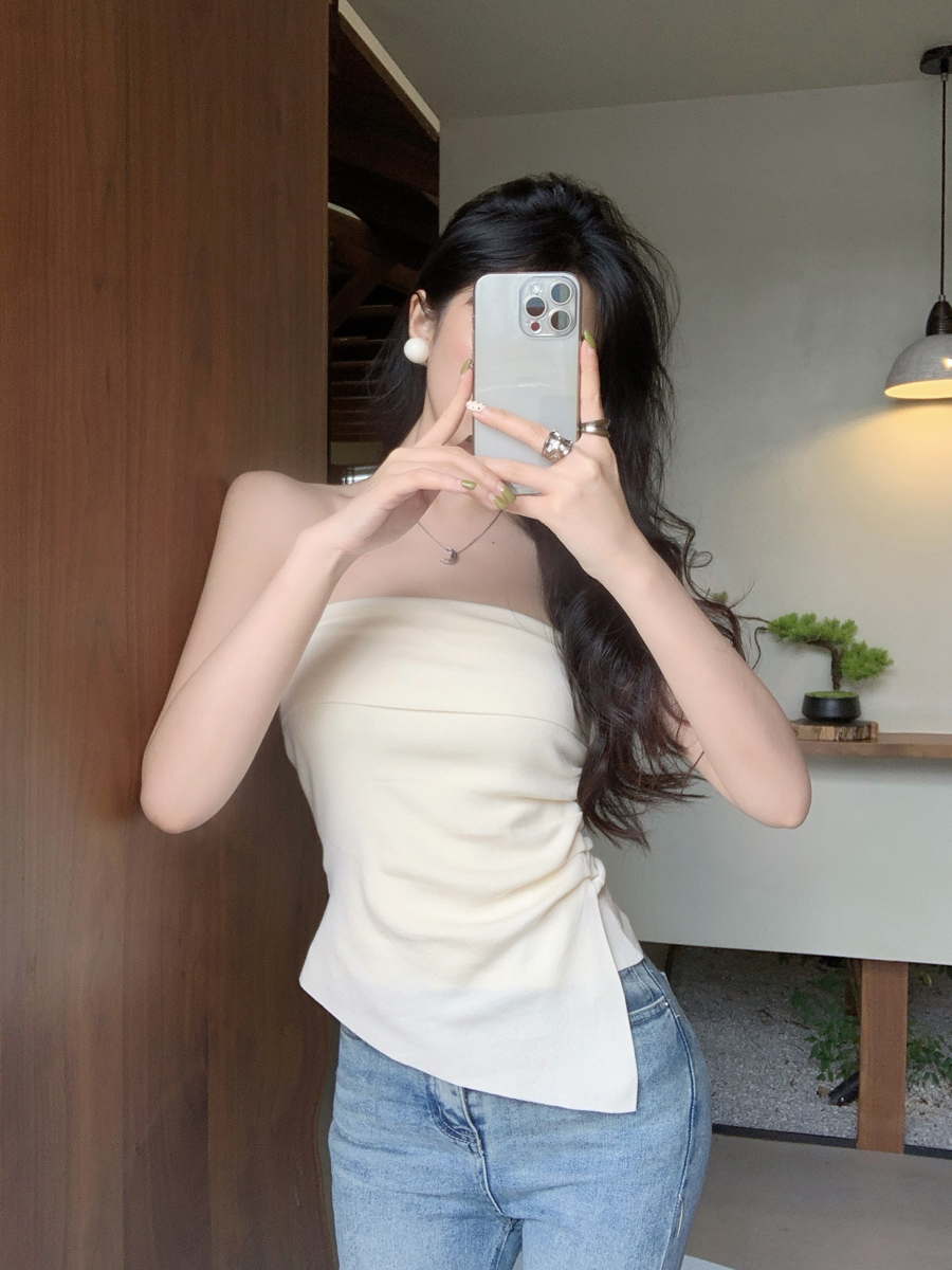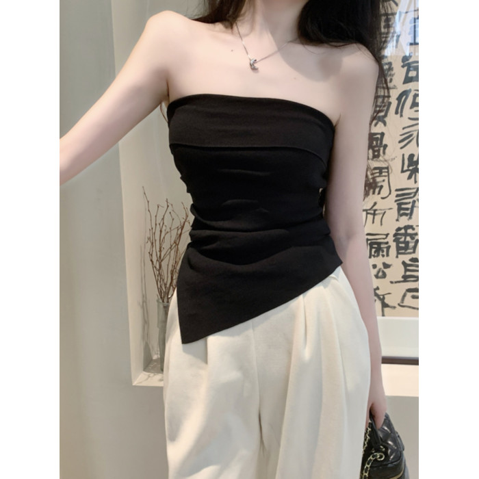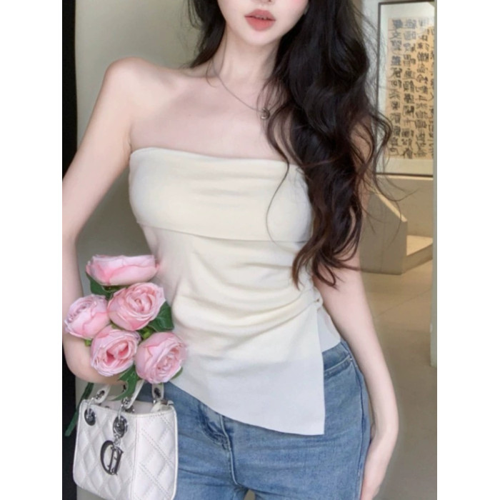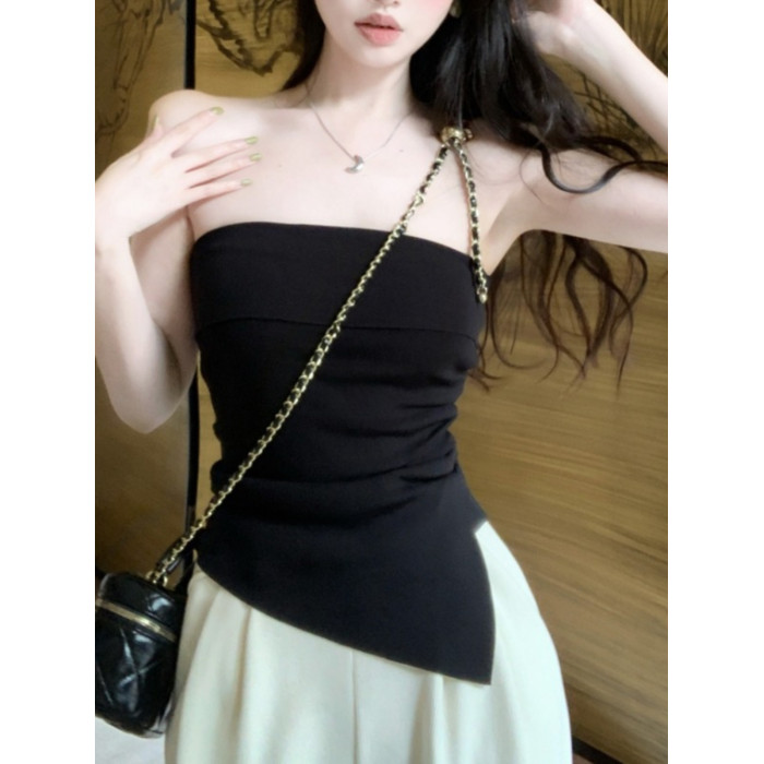 一字肩抹胸吊帶小背心女秋外穿絕美高級感裹胸泰式不規則辣妹上衣