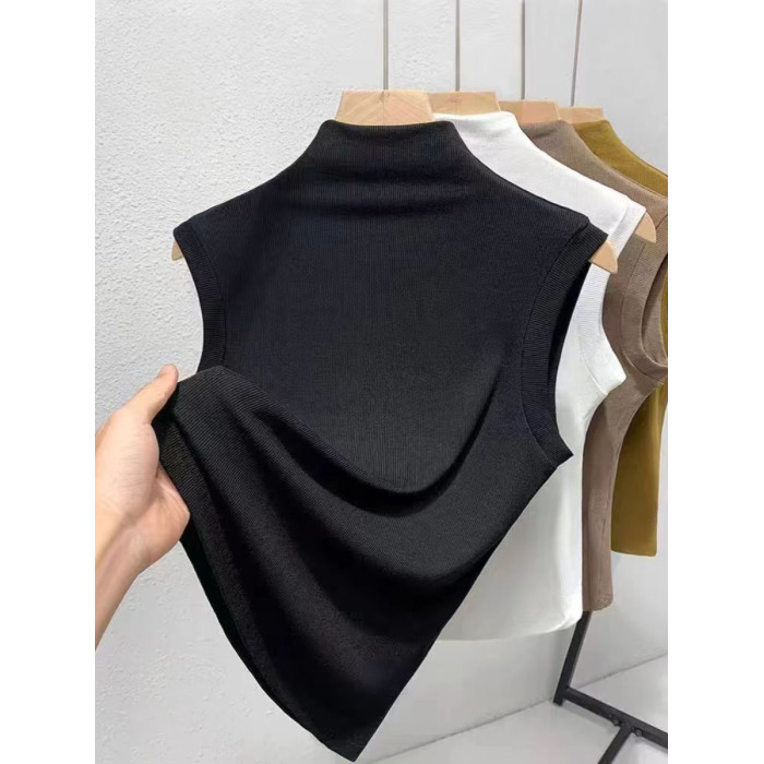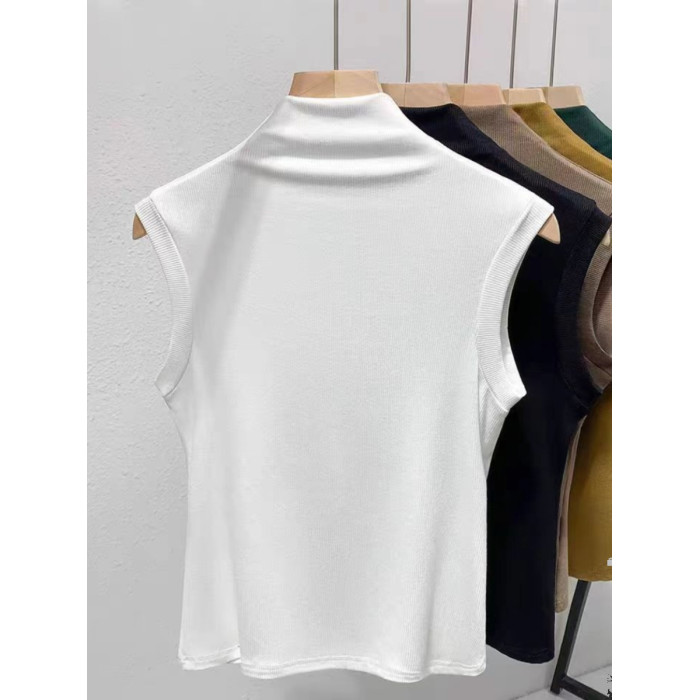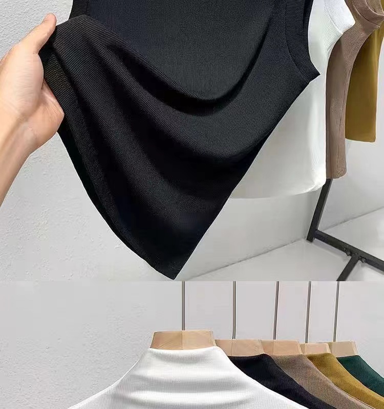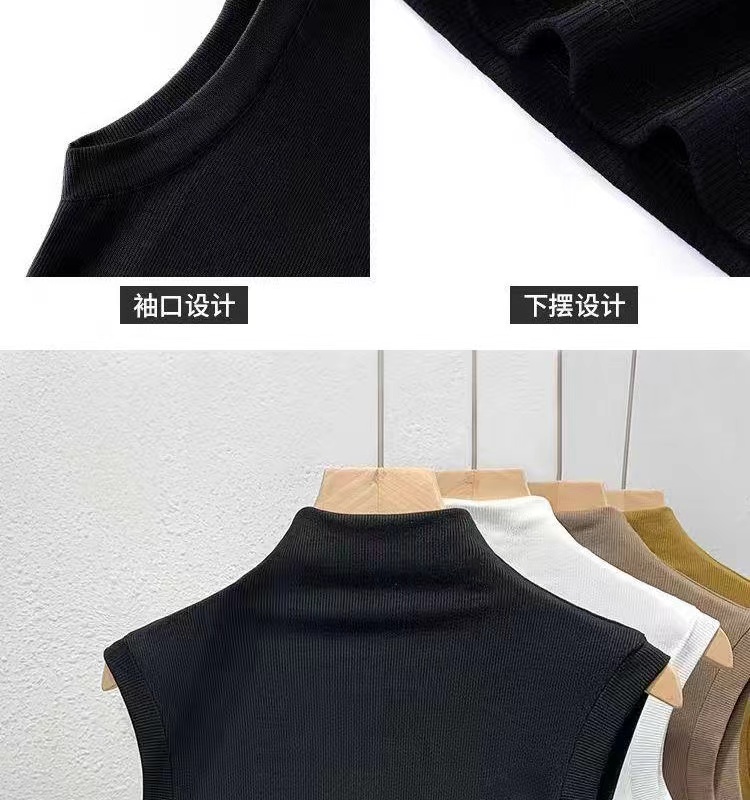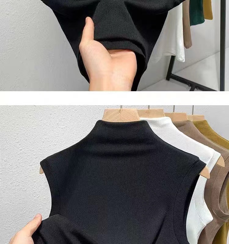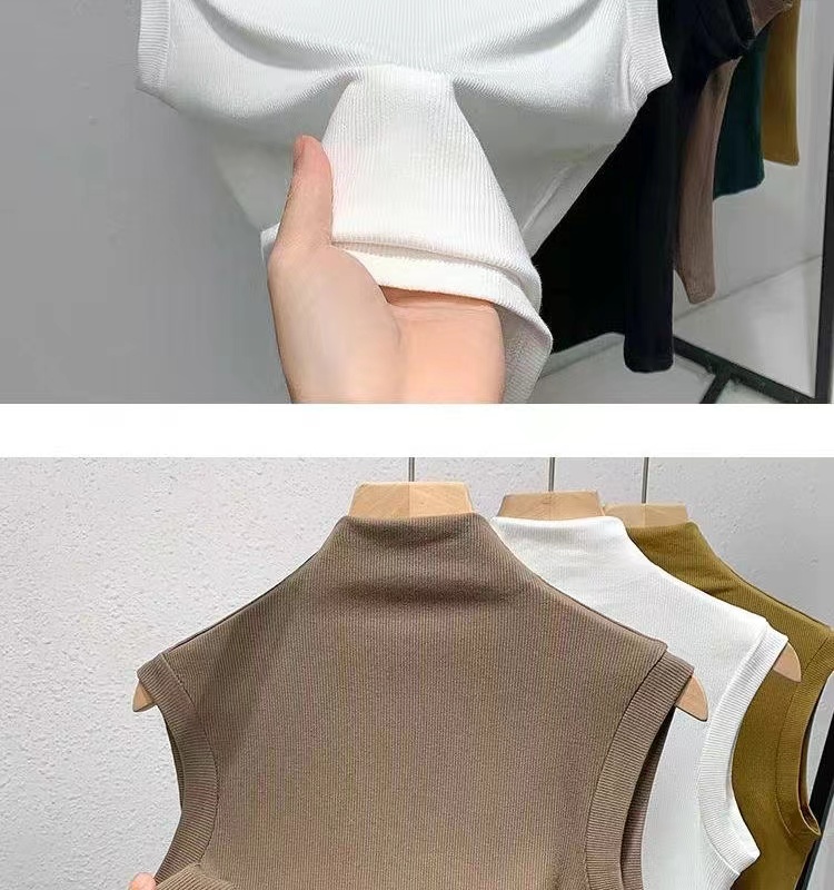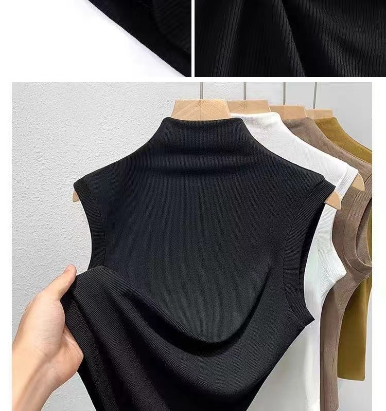 莫代爾半高領無袖背心女春夏季新款大碼修身內搭百搭打底衫上衣潮