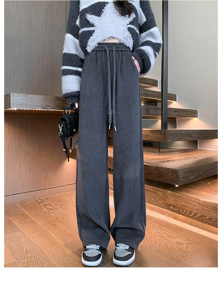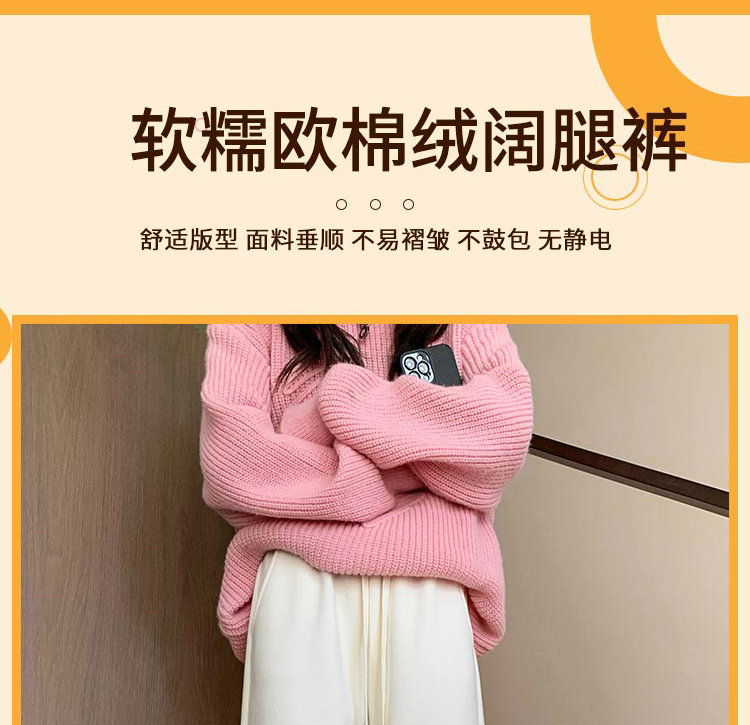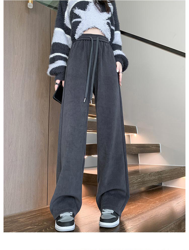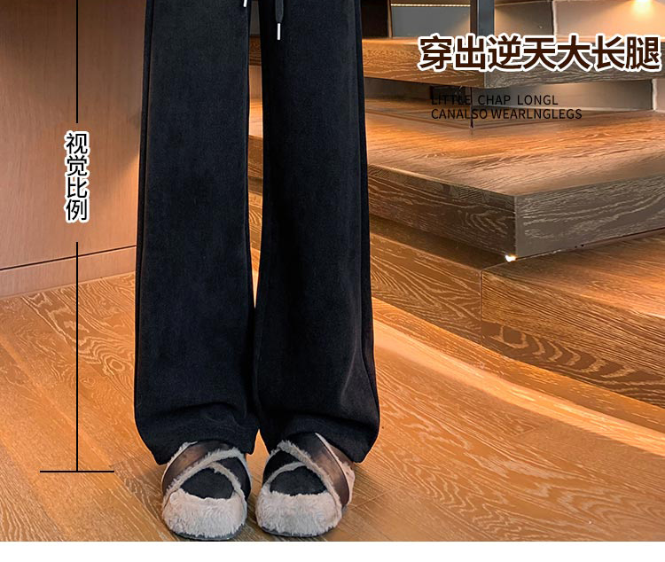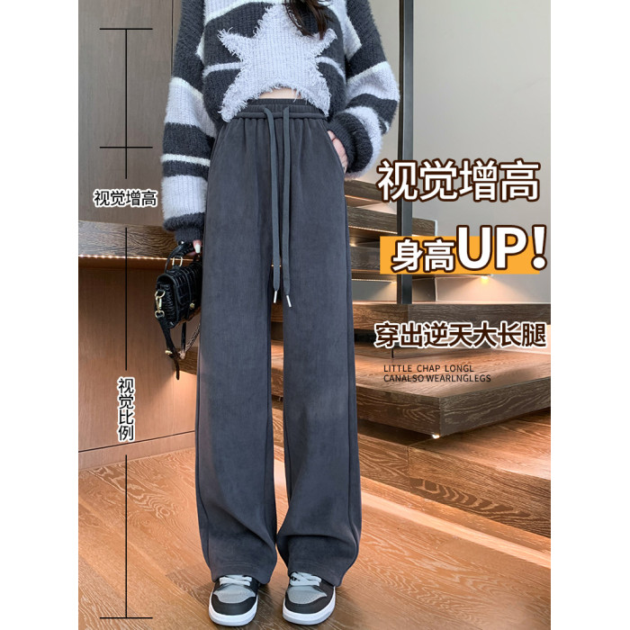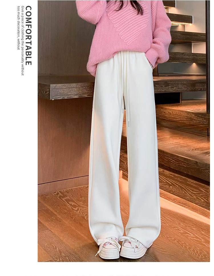 白色濶腿褲女2024新款冬季加絨窄版垂感大碼休閒春秋雪尼爾直筒褲