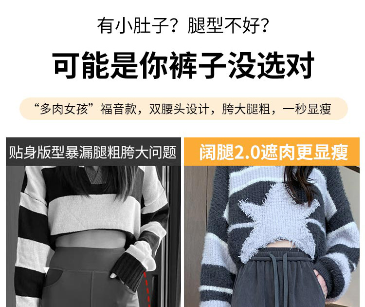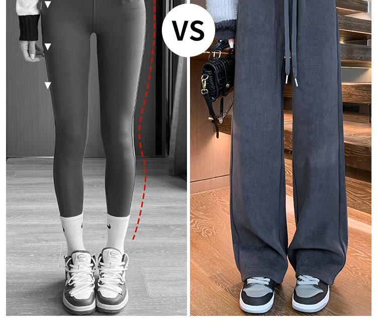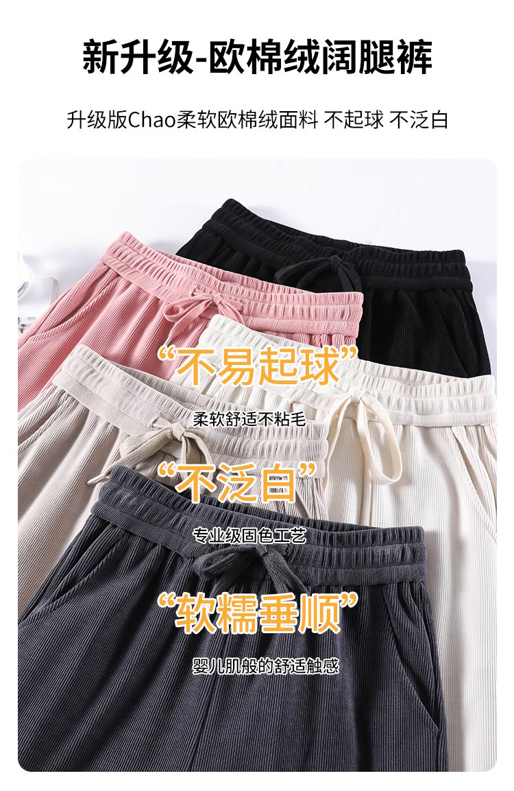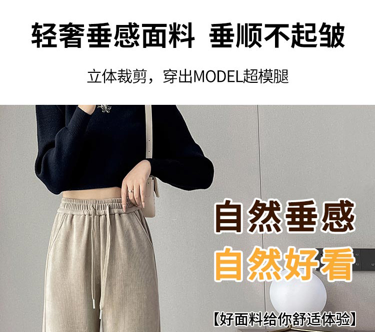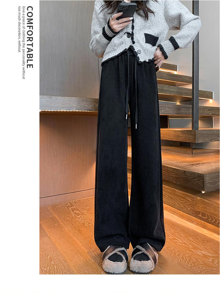 白色濶腿褲女2024新款冬季加絨窄版垂感大碼休閒春秋雪尼爾直筒褲
