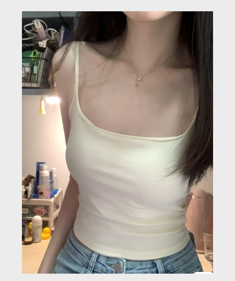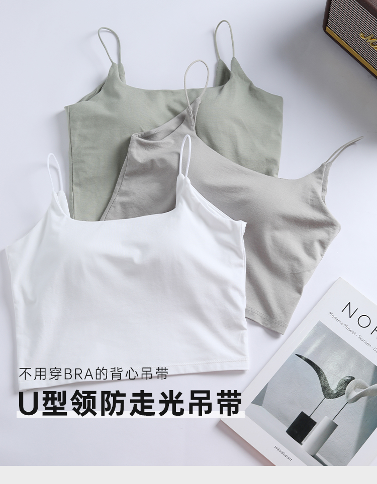 白色吊帶帶胸墊短款小背心女夏外穿內搭u型美背文胸一體打底上衣