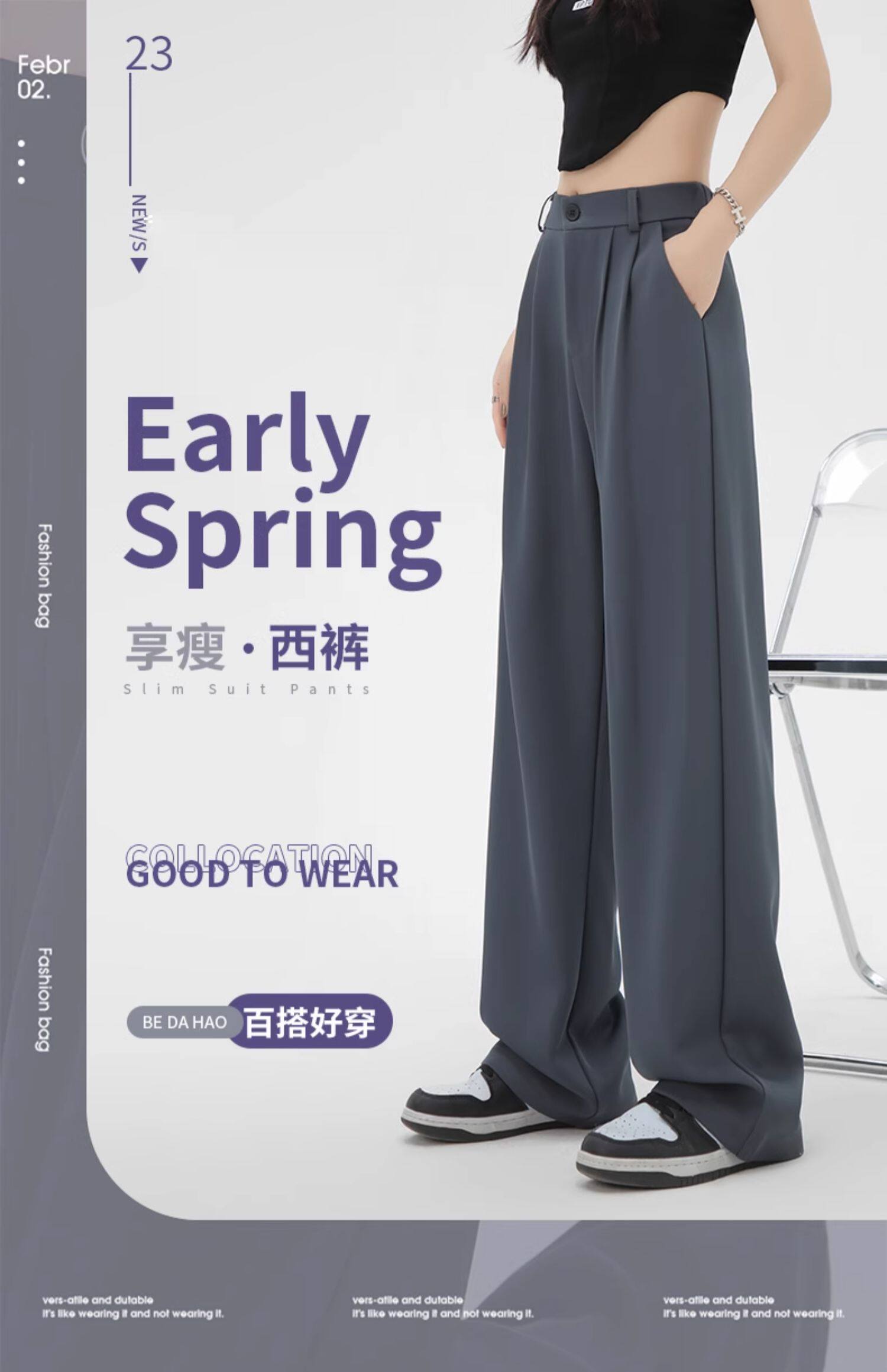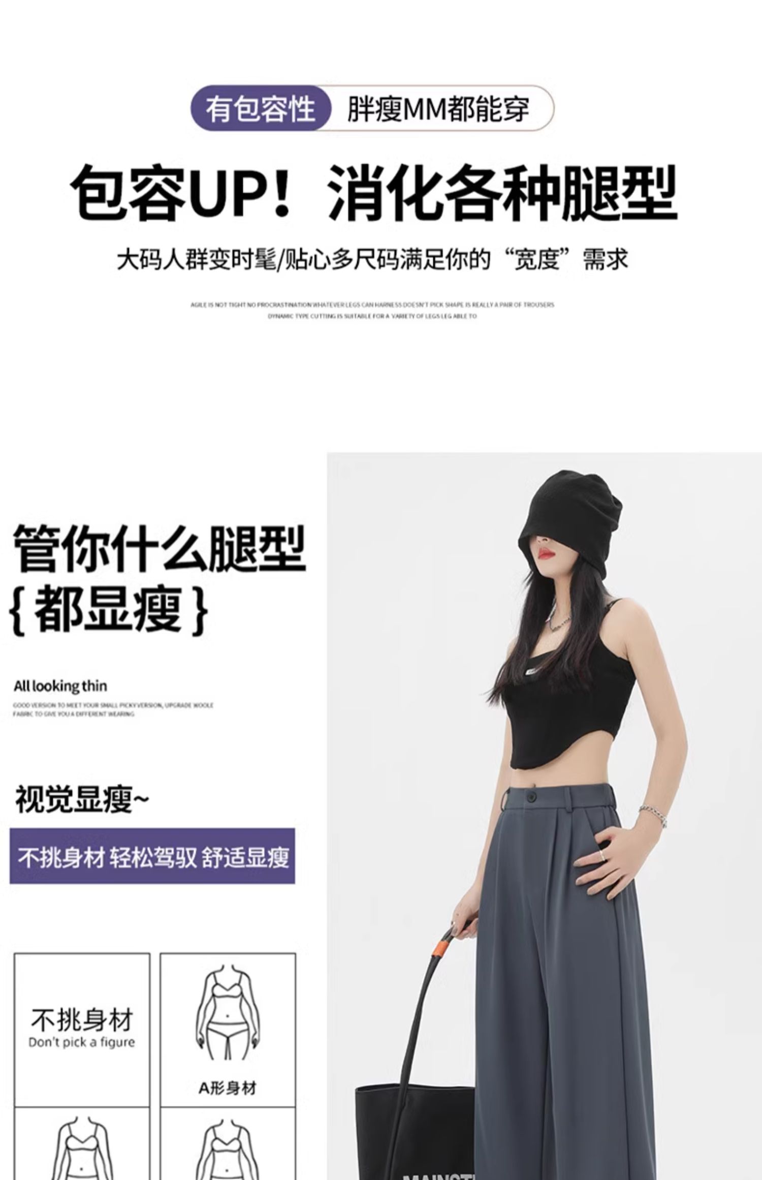 黑色西裝褲子女春秋冬季2025新款高級垂感直筒慵懶休閒窄版濶腿褲