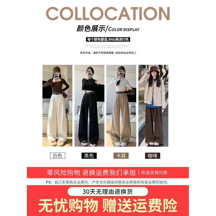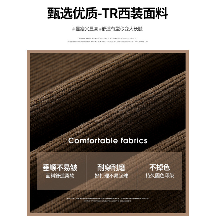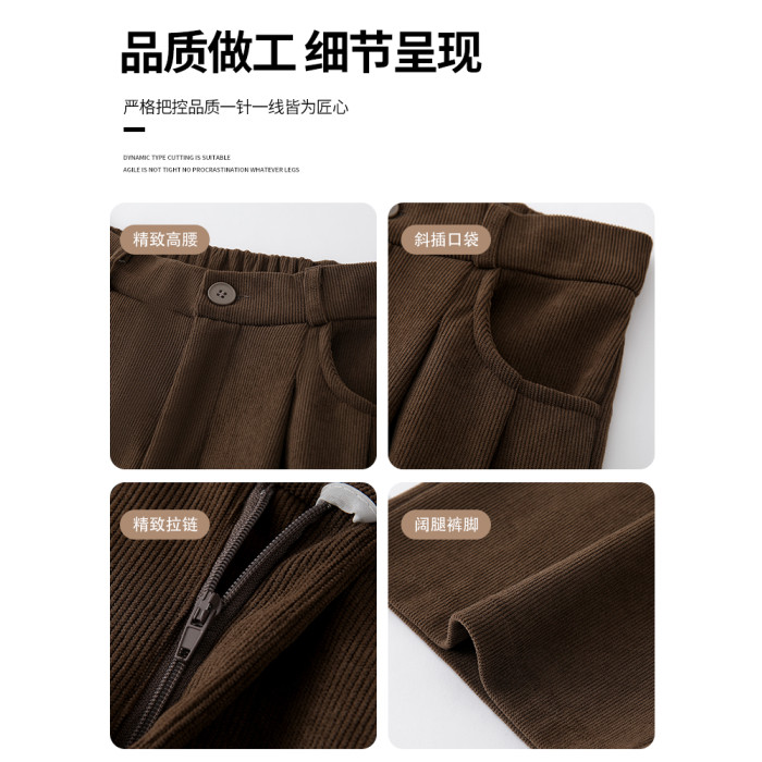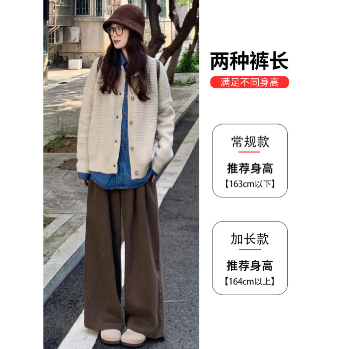 咖色西裝褲女秋冬季2025新款高腰休閒直筒小個子燈芯絨加絨濶腿褲