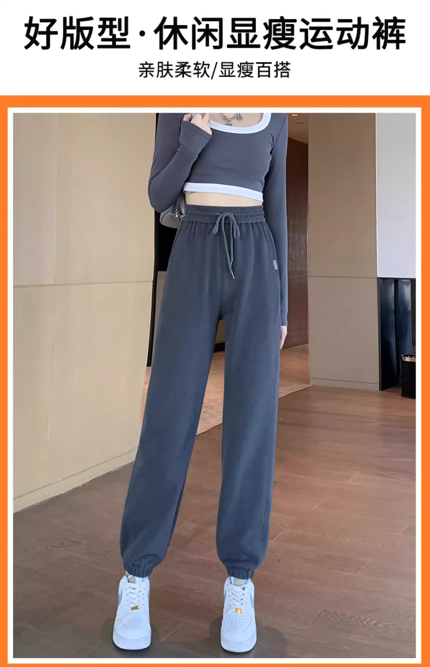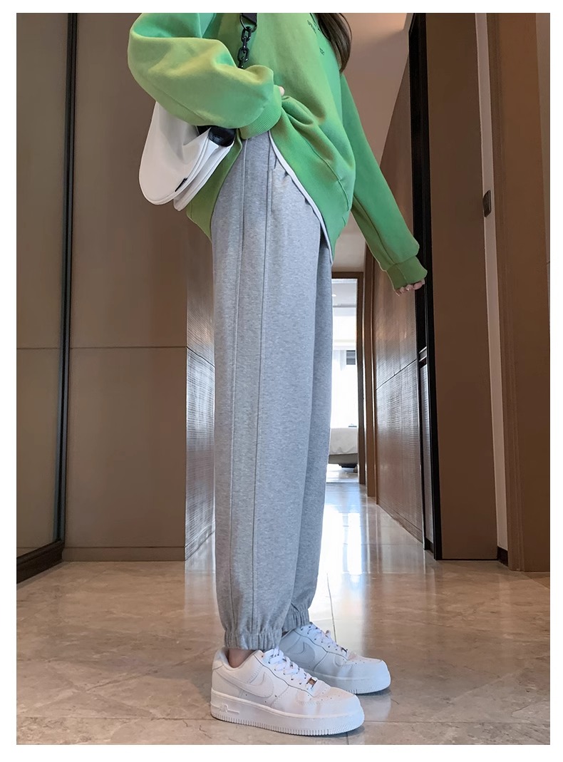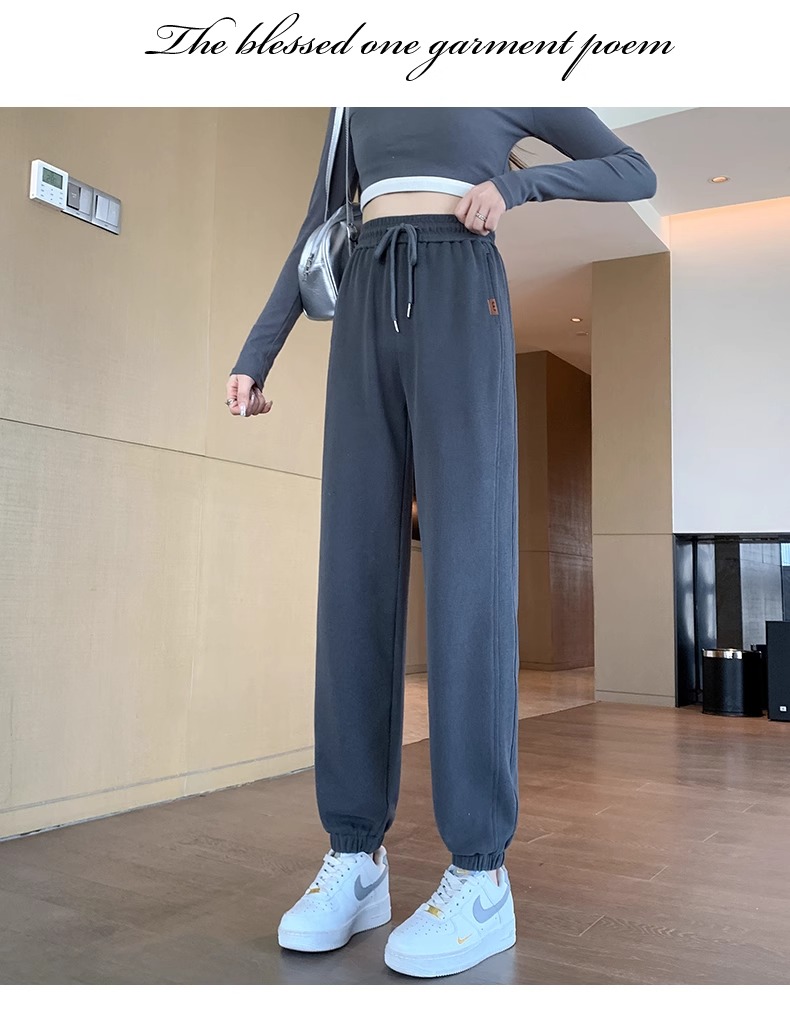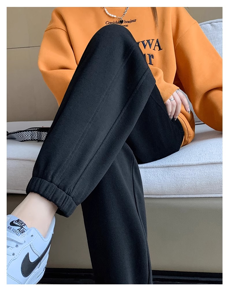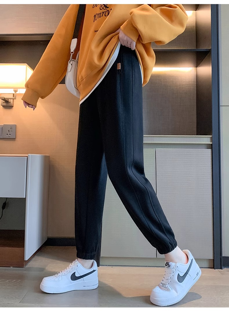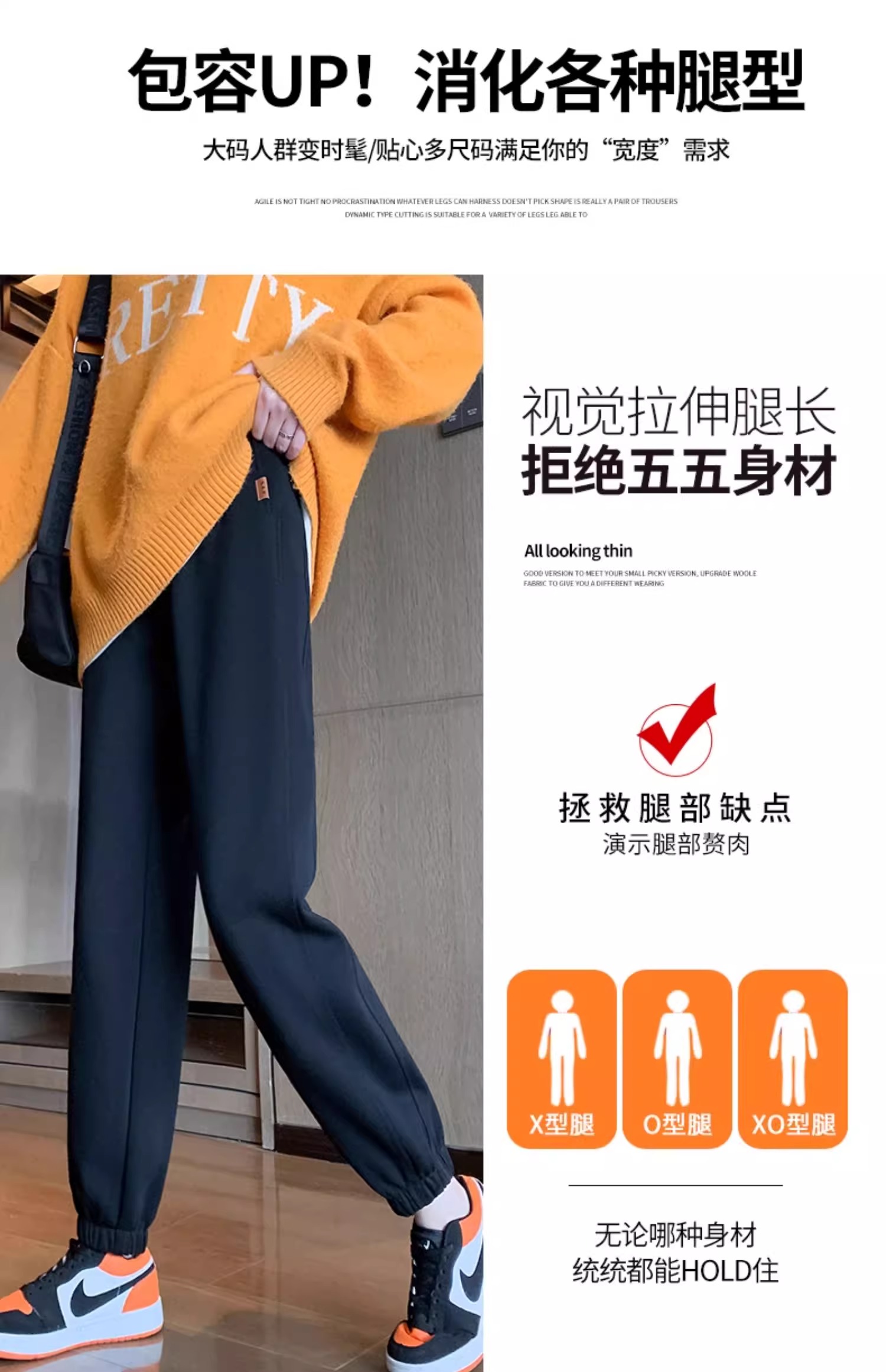 運動褲女秋冬加絨衛褲小個子褲子八分九分學生顯瘦束腳休閒褲春秋