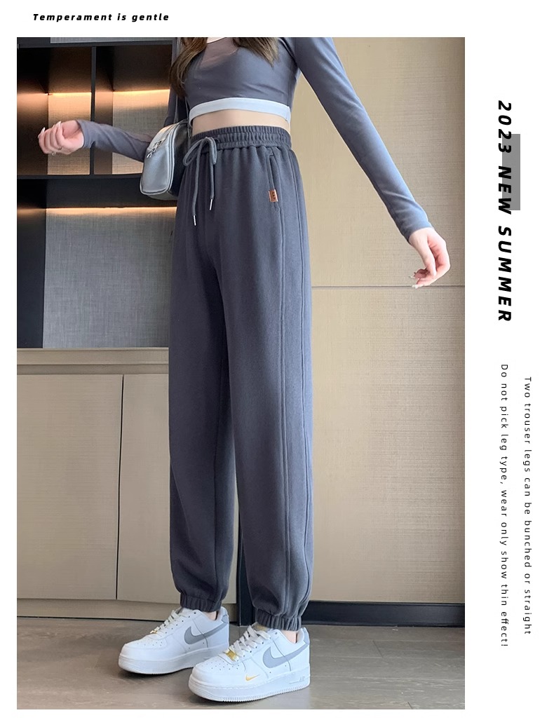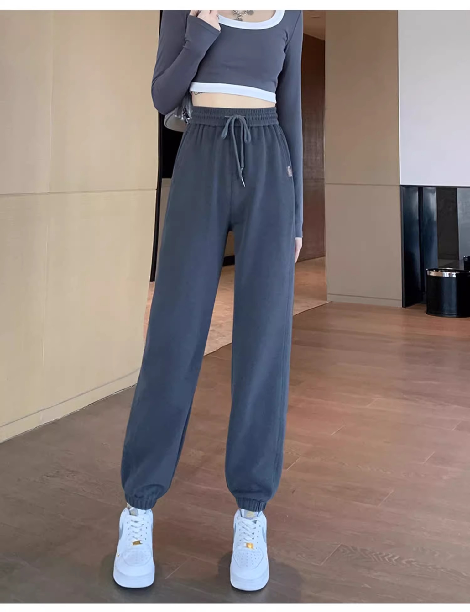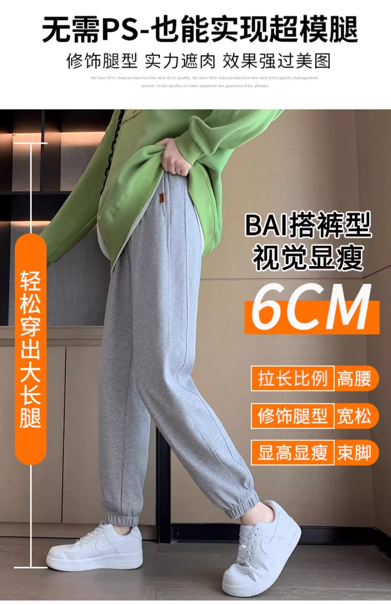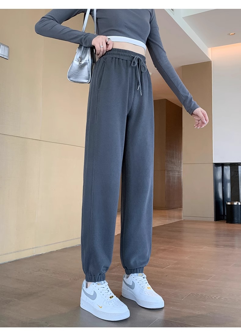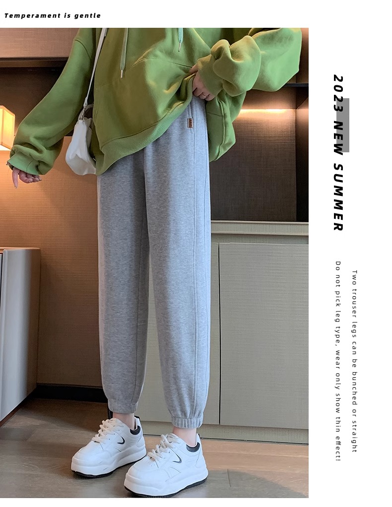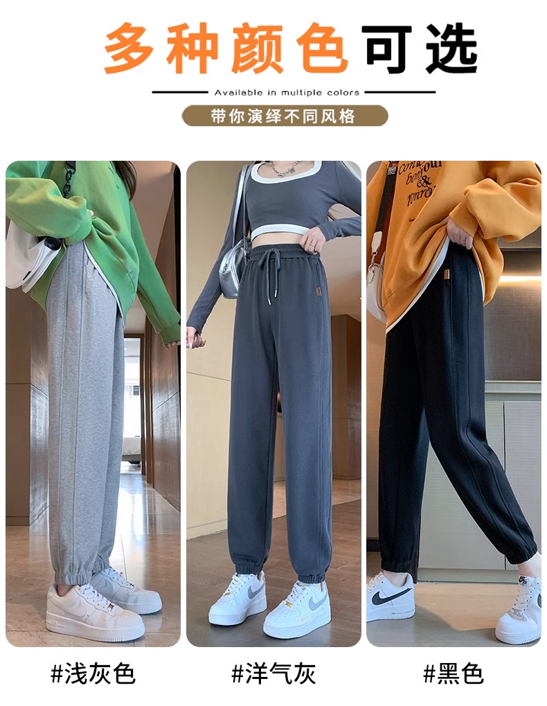 運動褲女秋冬加絨衛褲小個子褲子八分九分學生顯瘦束腳休閒褲春秋