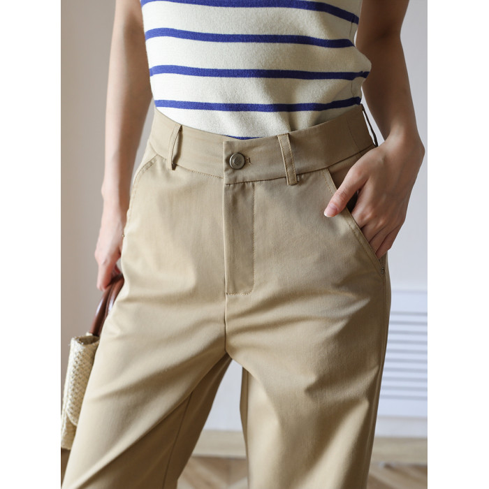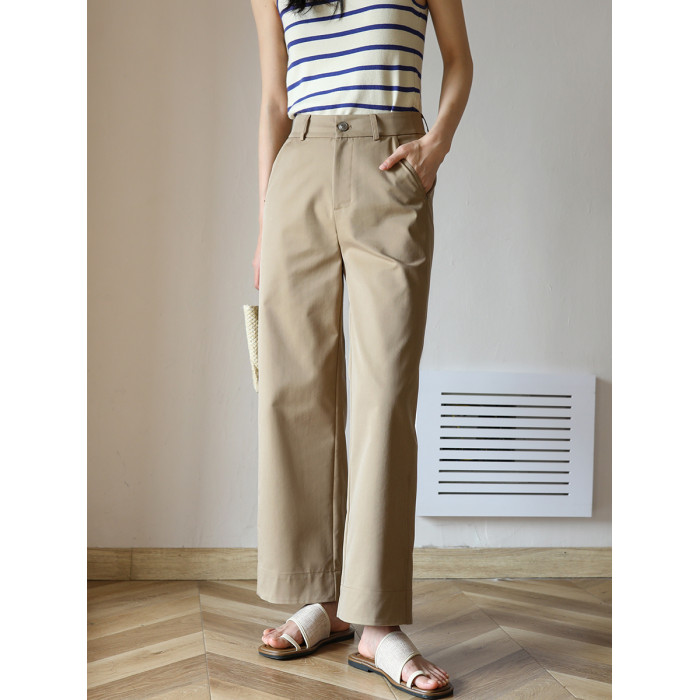 秋季氛圍經典卡其色天絲棉濶腿褲女寬松長褲子休閒直筒褲百搭顯瘦