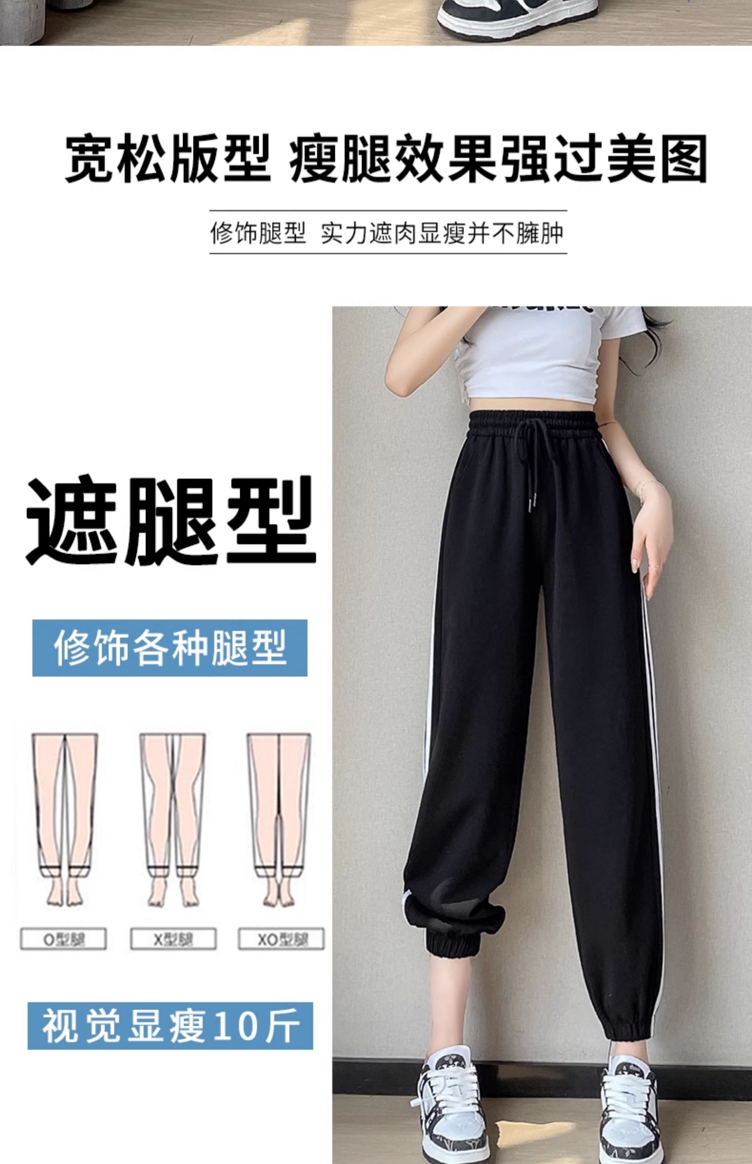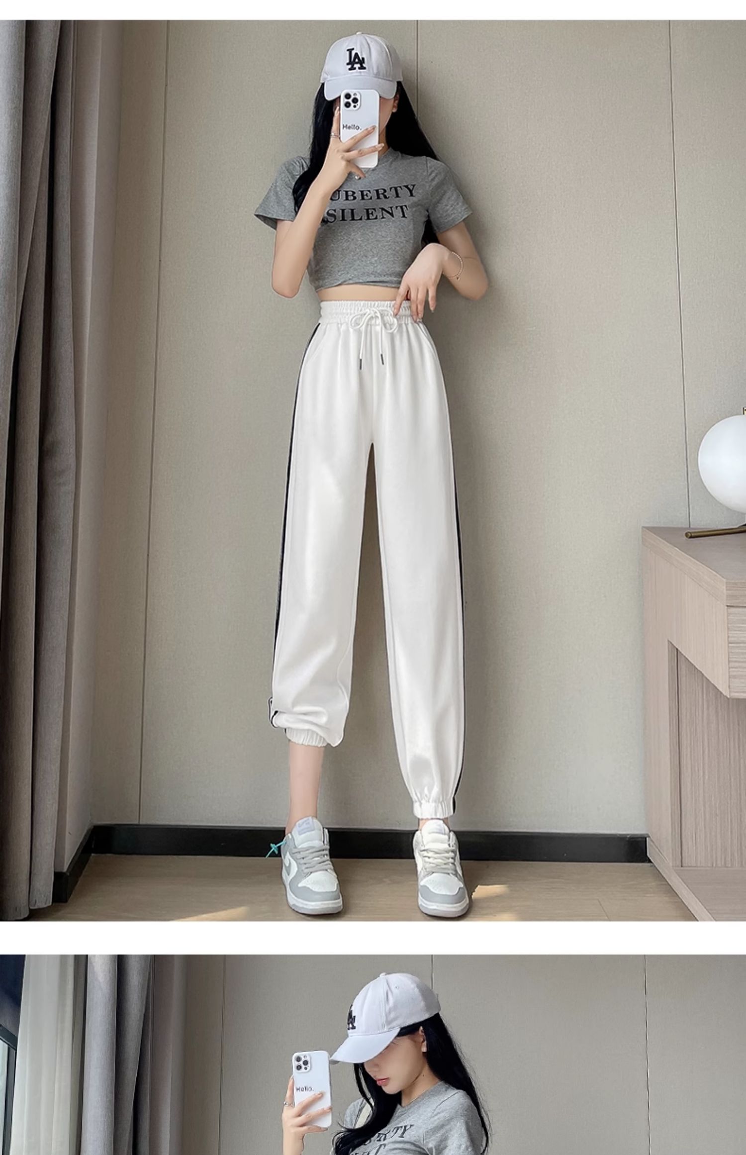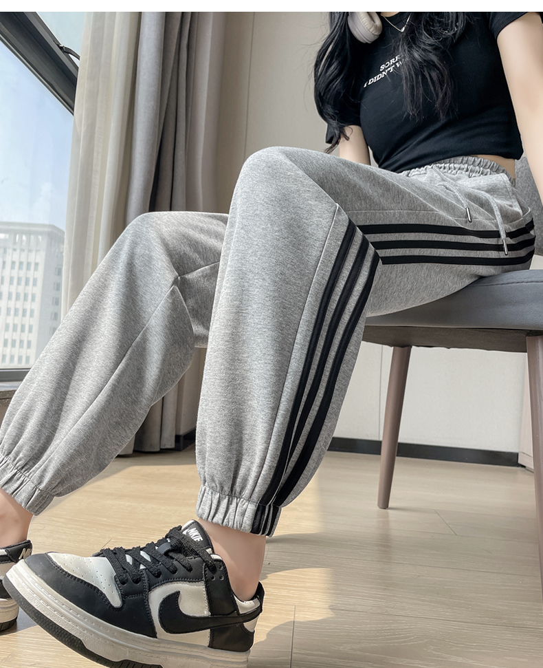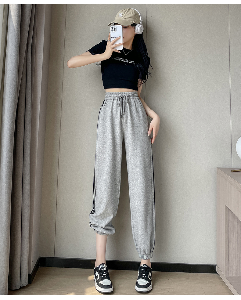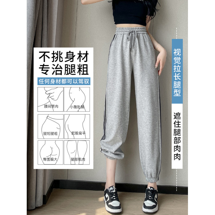 白色高腰運動褲女春秋寬松休閒2025新款舒適美式九分束腳燈籠衛褲