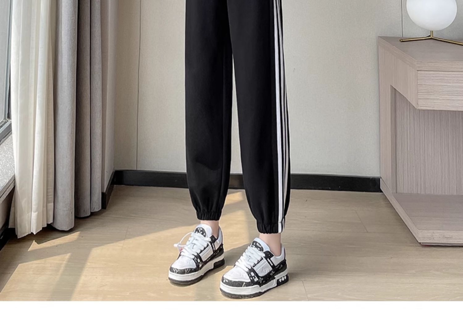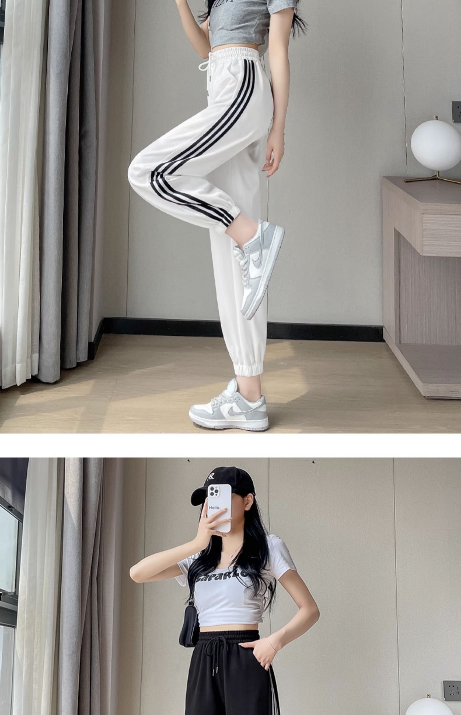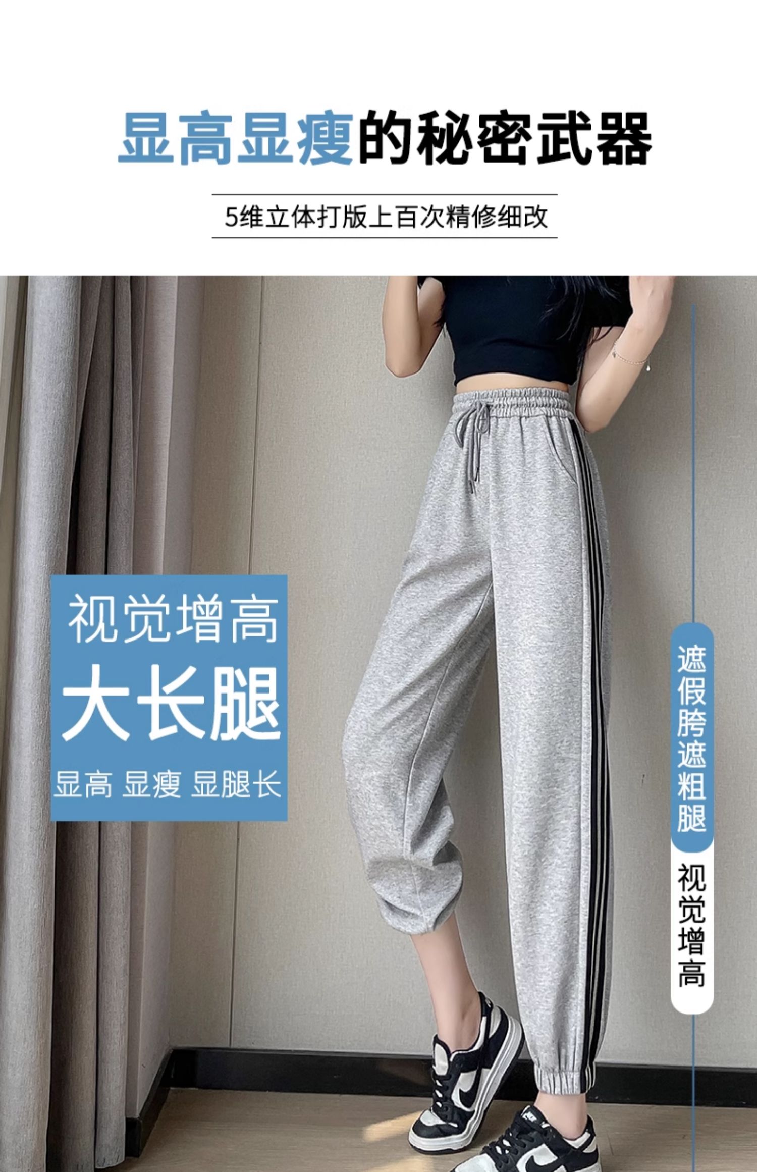 白色高腰運動褲女春秋寬松休閒2025新款舒適美式九分束腳燈籠衛褲