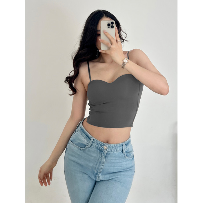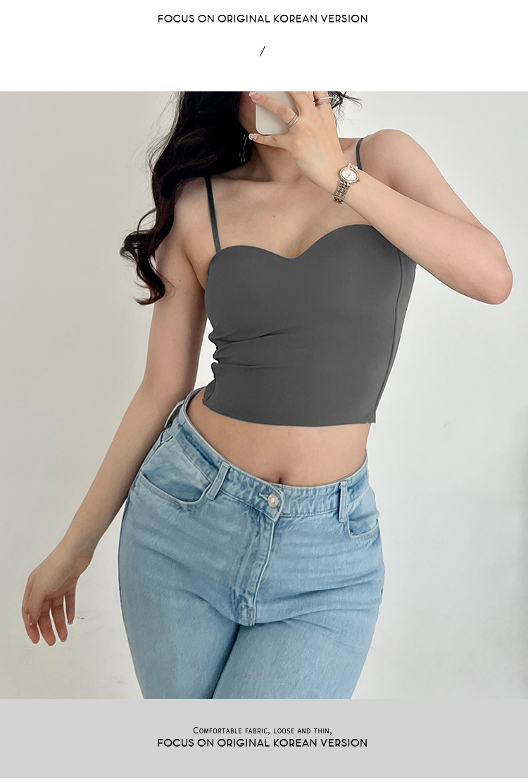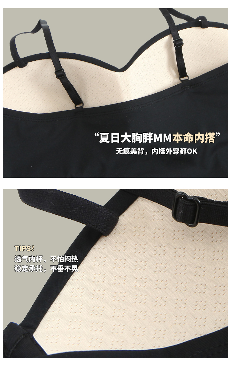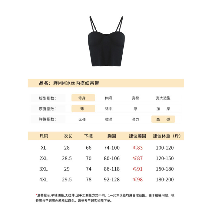 大碼胖mm內搭顯瘦短款純欲風辣妹美背細肩小吊帶背心帶胸墊200斤