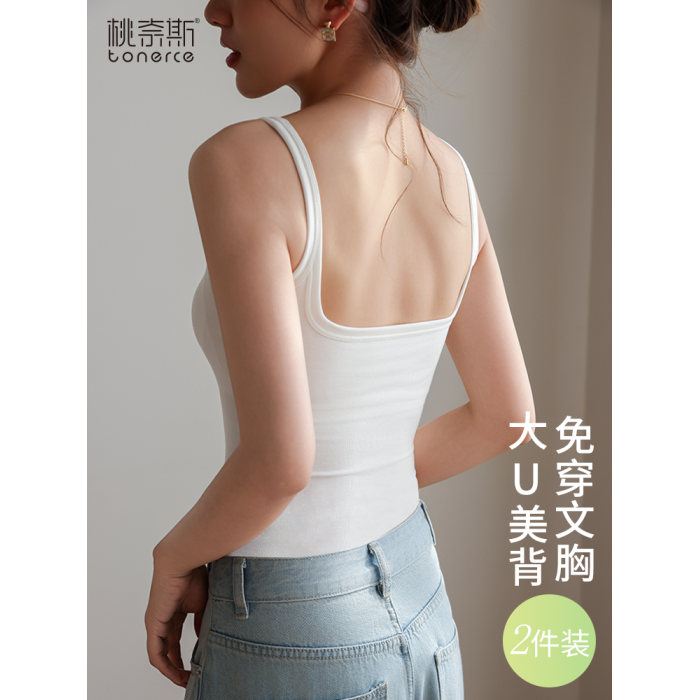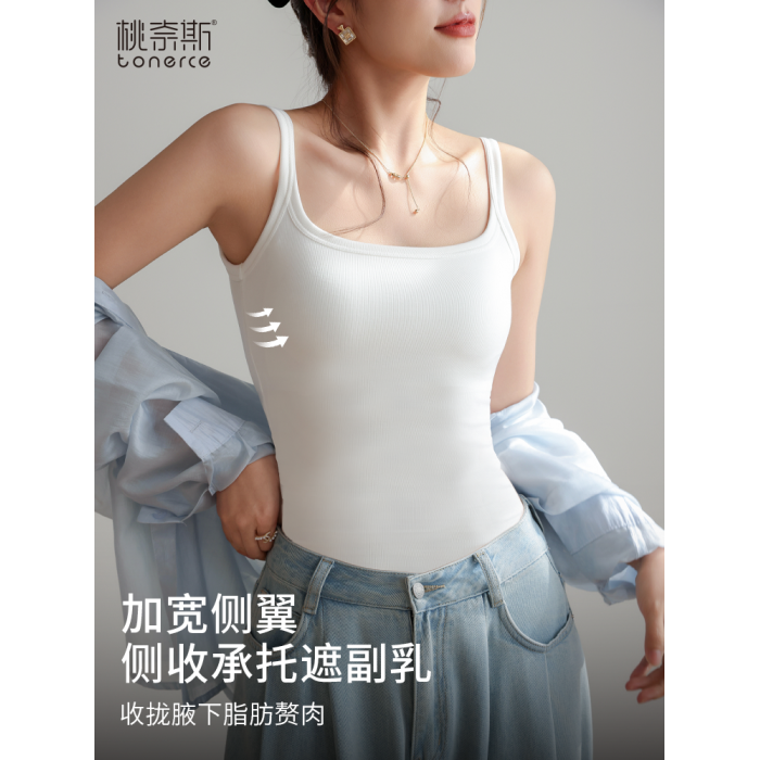 美背文胸一體背心女內搭帶胸墊打底上衣夏季新款外穿方領無痕吊帶