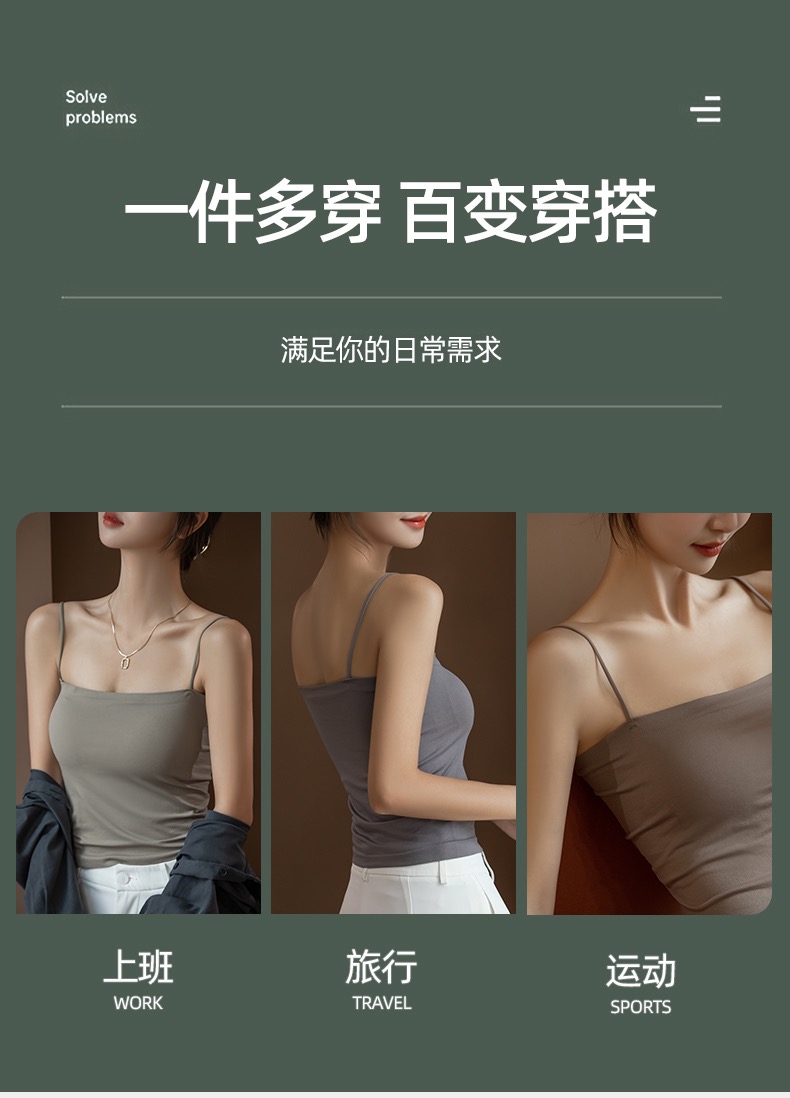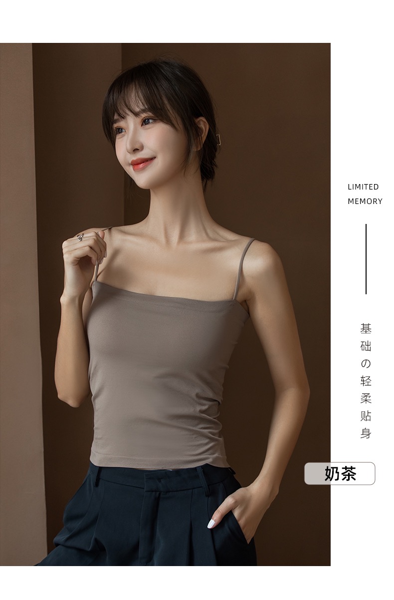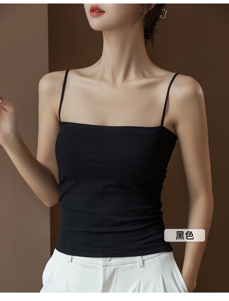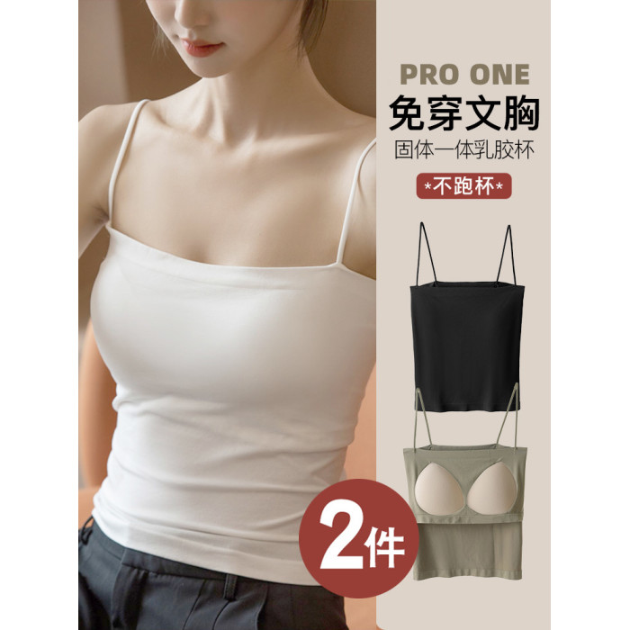 白色吊帶背心女秋季文胸一體美背防走光帶胸墊打底衫西裝內搭上衣