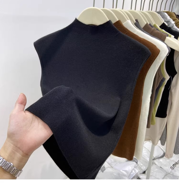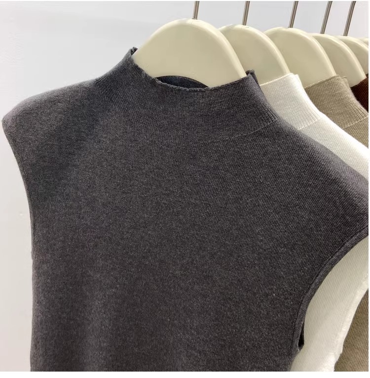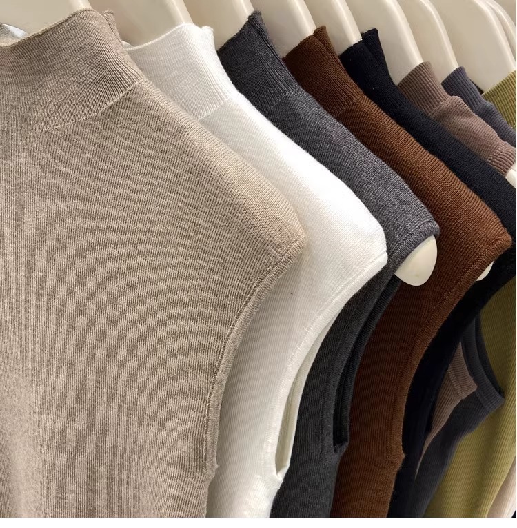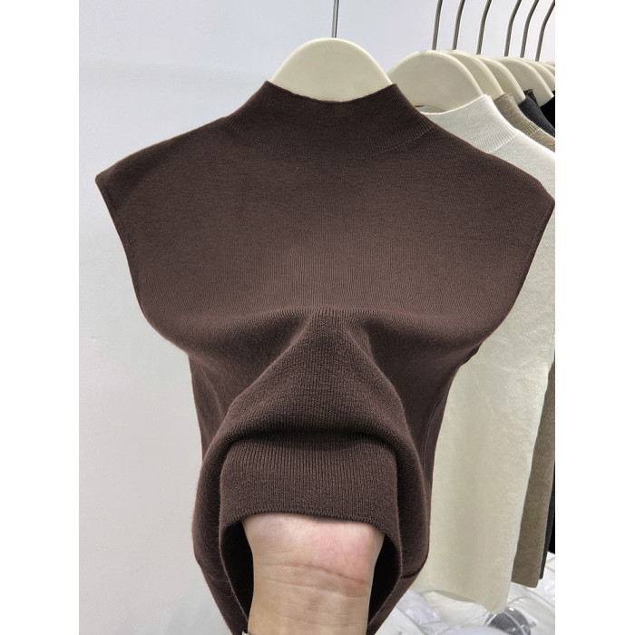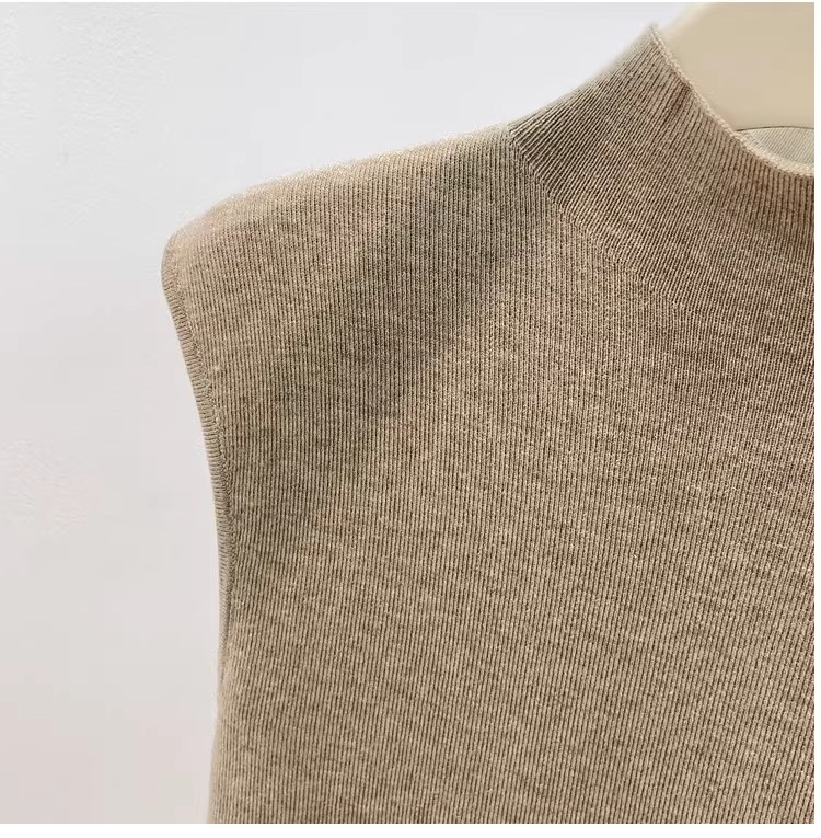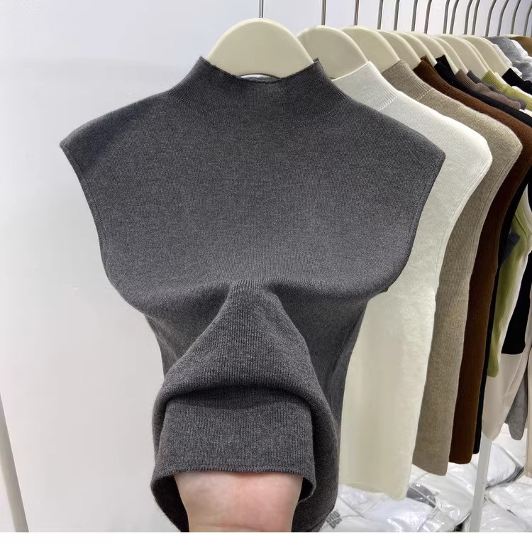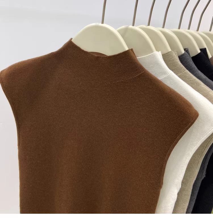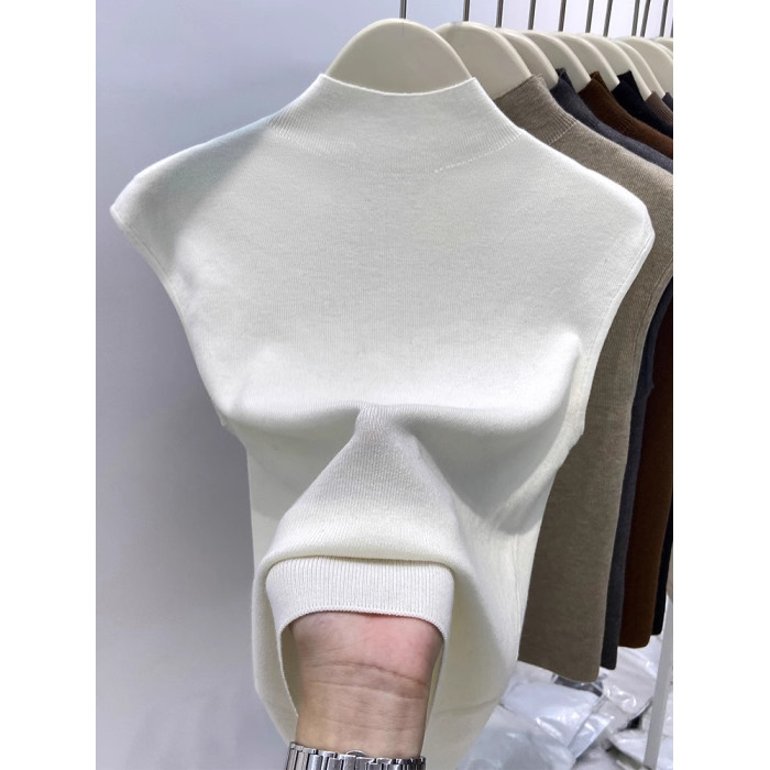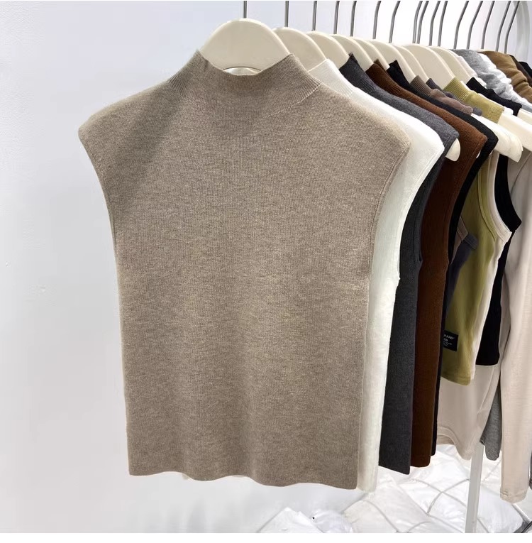 2025夏季半高領無袖針織衫女修身內搭修身打底衫背心氣質百搭上衣
