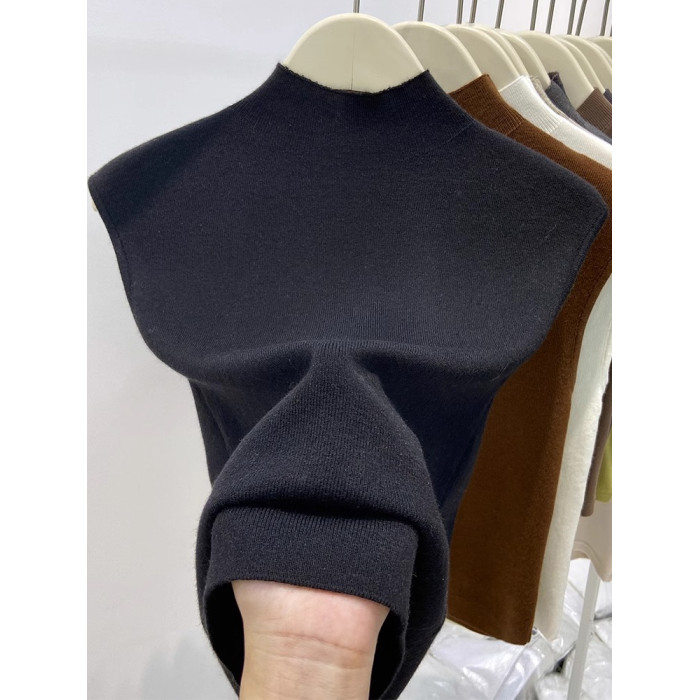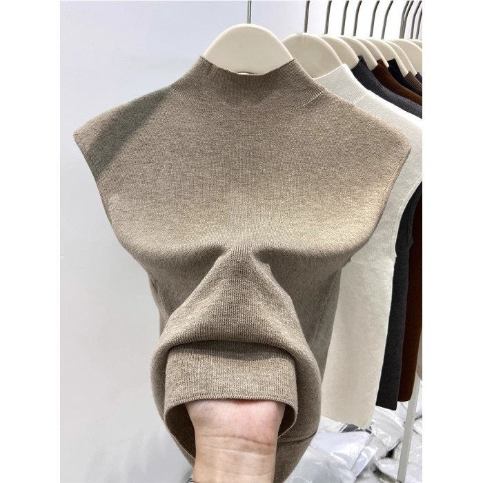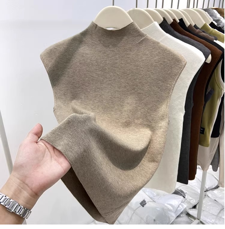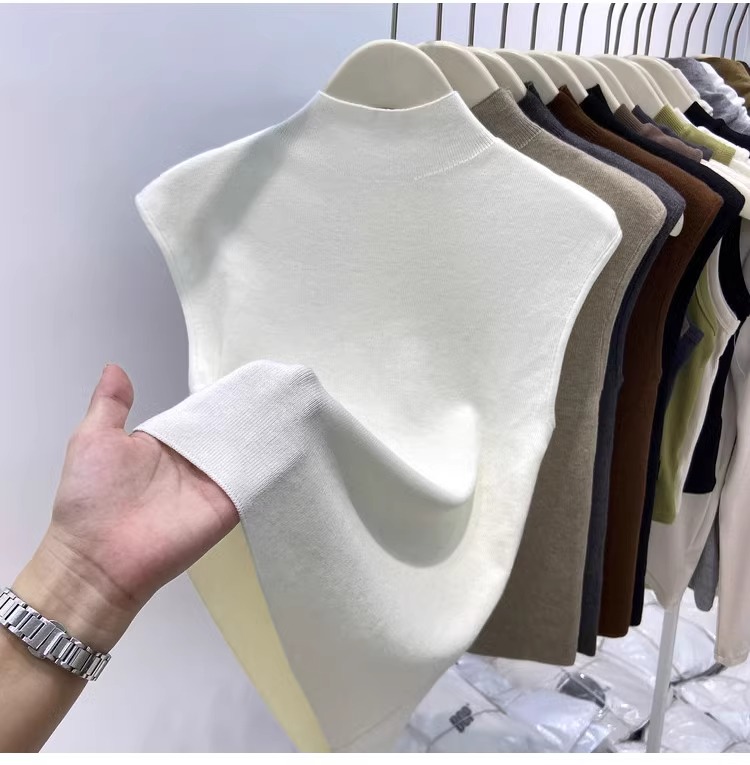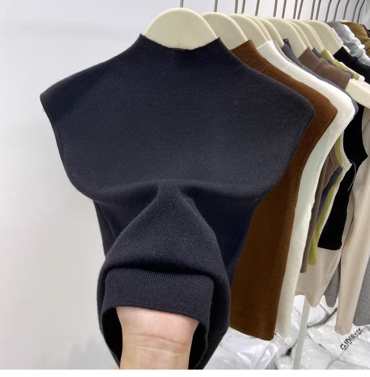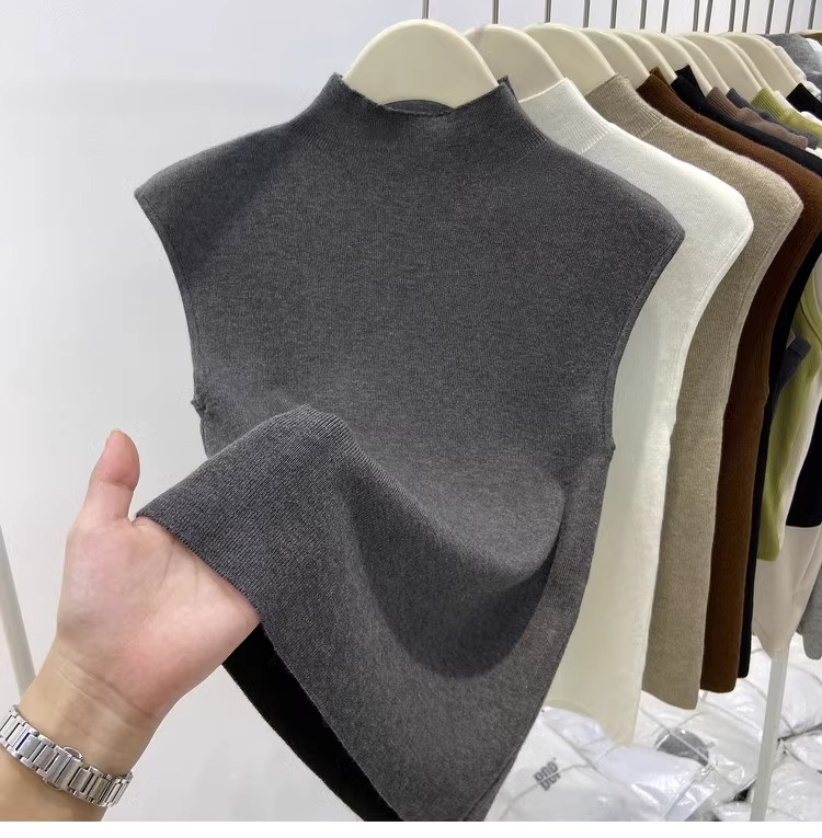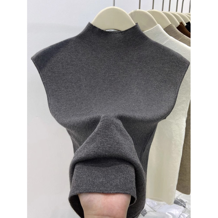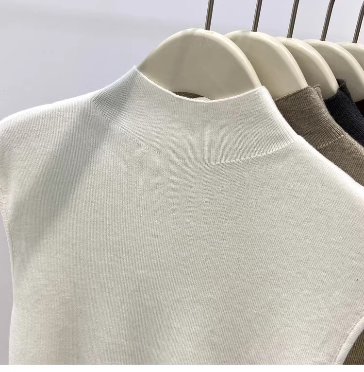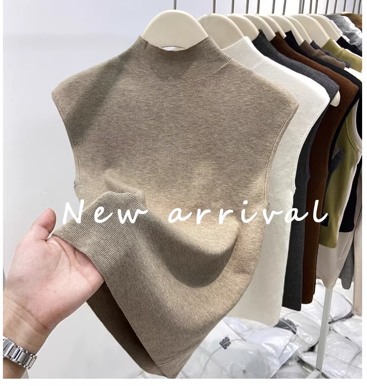 2025夏季半高領無袖針織衫女修身內搭修身打底衫背心氣質百搭上衣