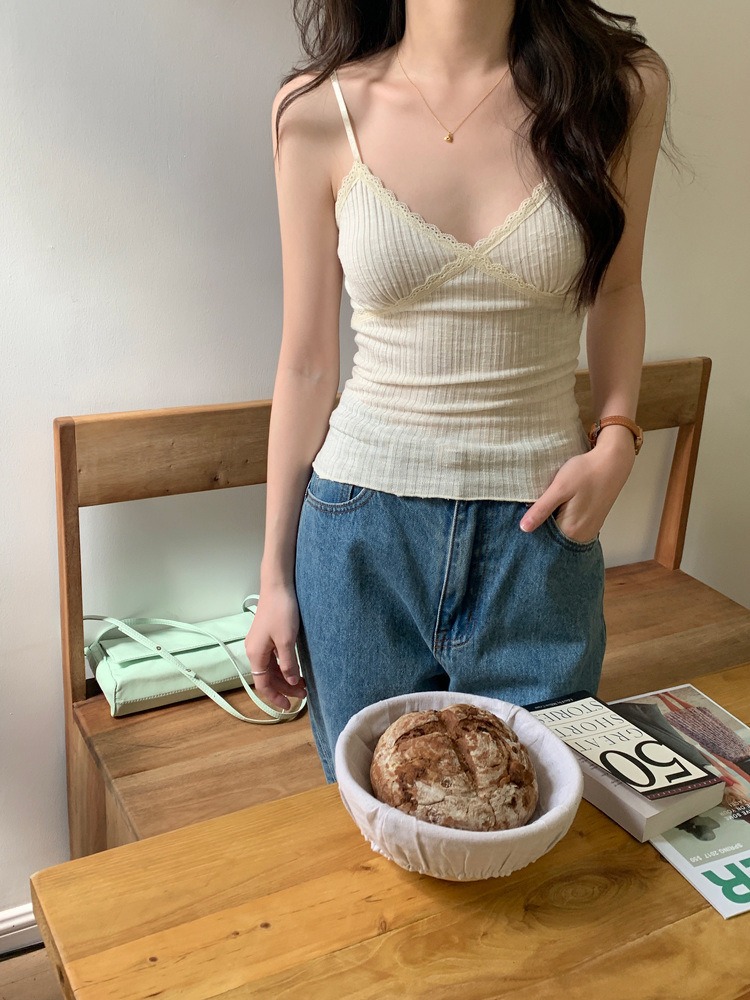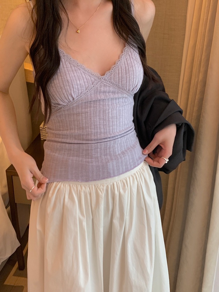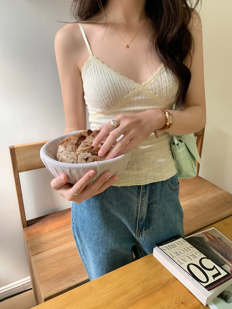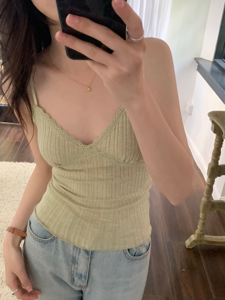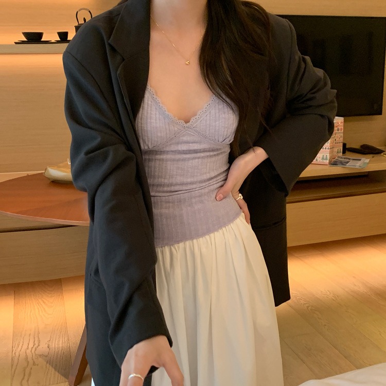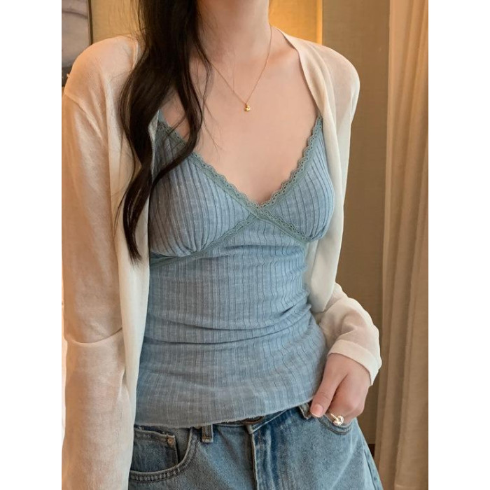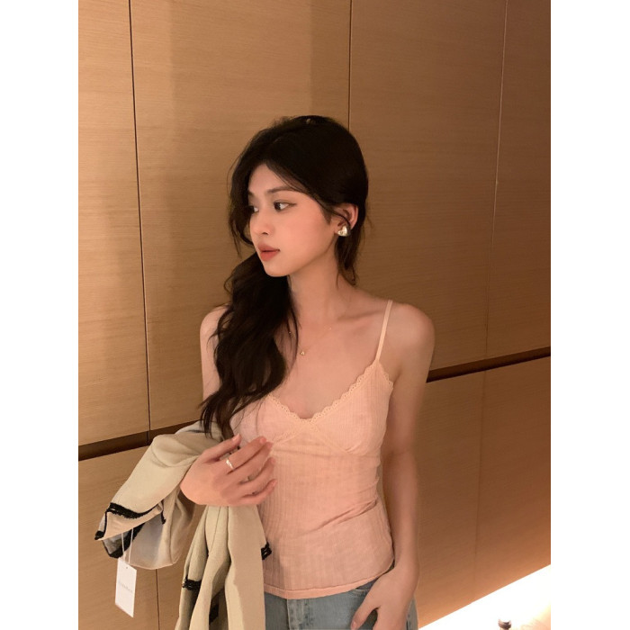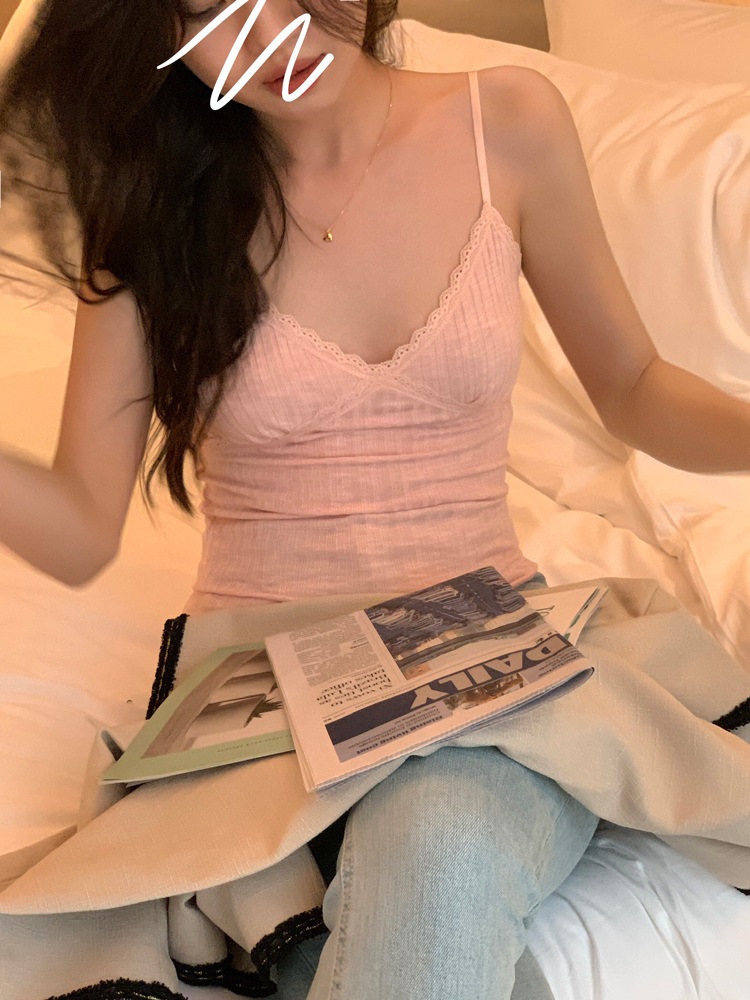 新款蕾絲純欲吊帶背心女白色顯瘦百搭辣妹帶胸墊外穿內搭打底上衣