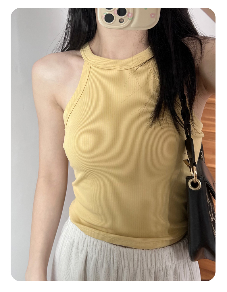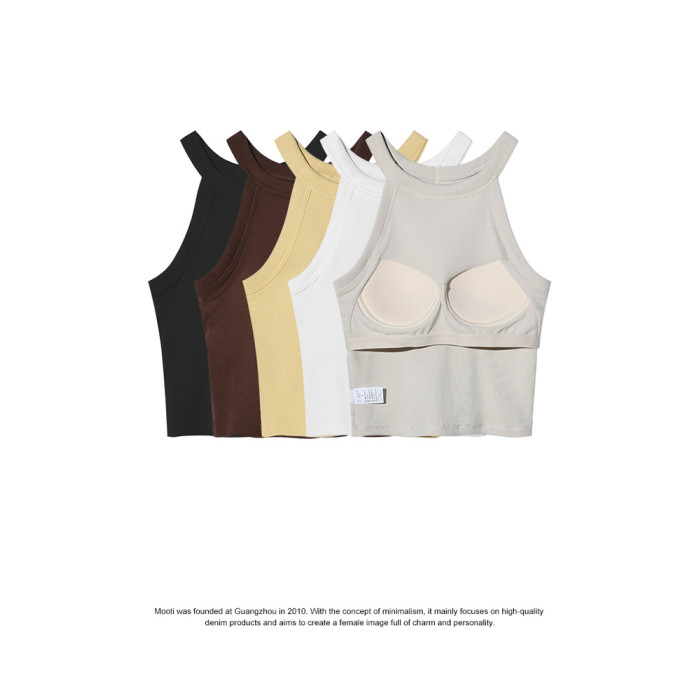 小吊帶背心女外穿夏美背內衣文胸一體內搭帶胸墊運動瑜珈掛脖上衣