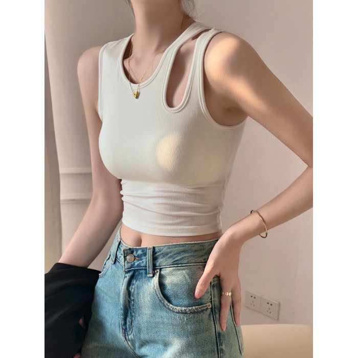 美背小吊帶背心女內搭帶胸墊工字2025新款外穿夏黑白無袖打底上衣