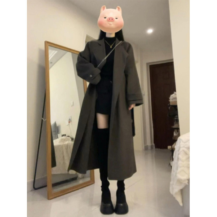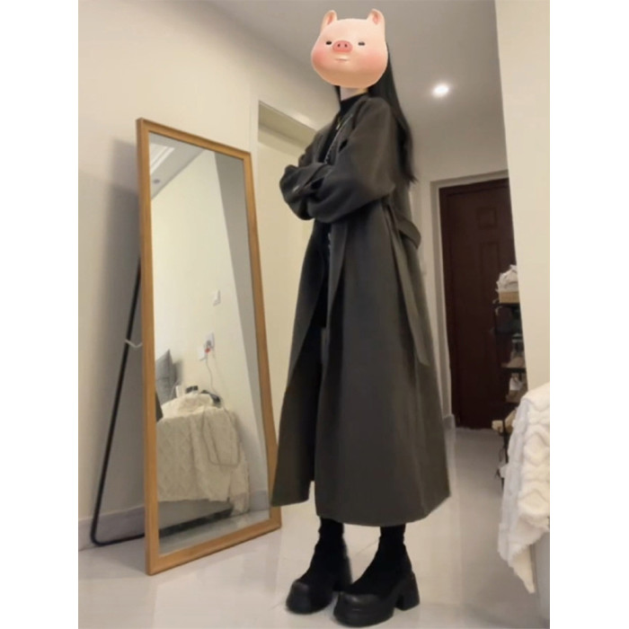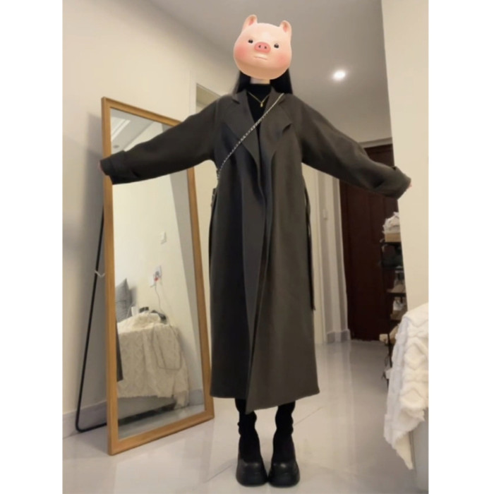 韓系雙面呢子風衣外套女款2025新款春春高個子毛呢大衣英倫風外套