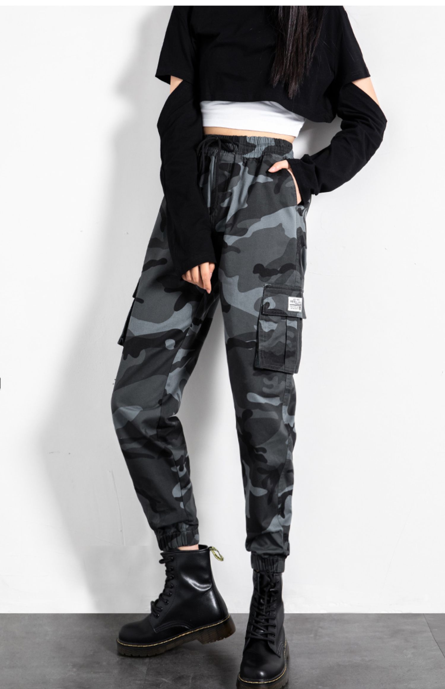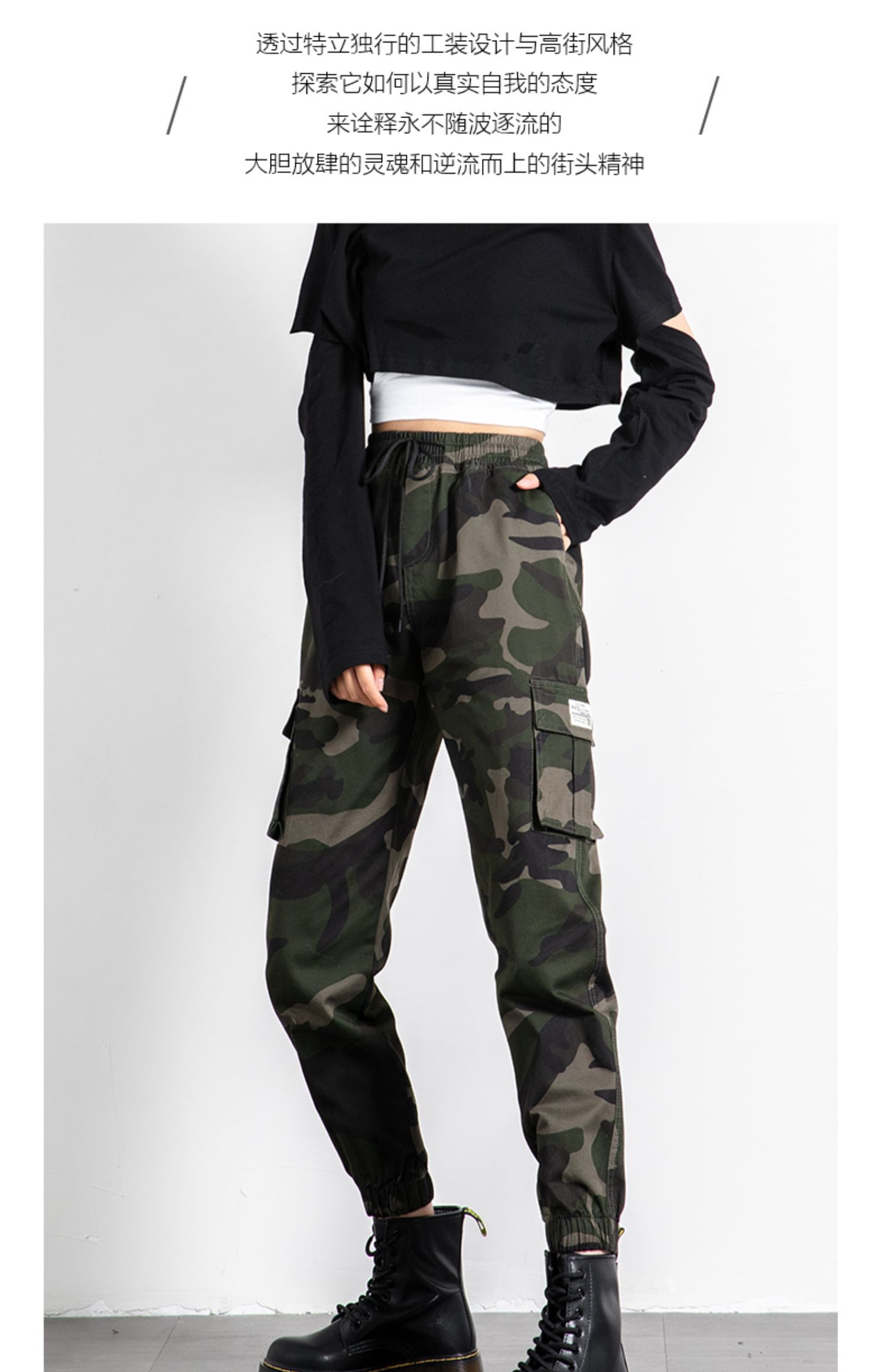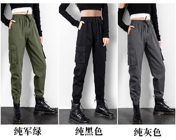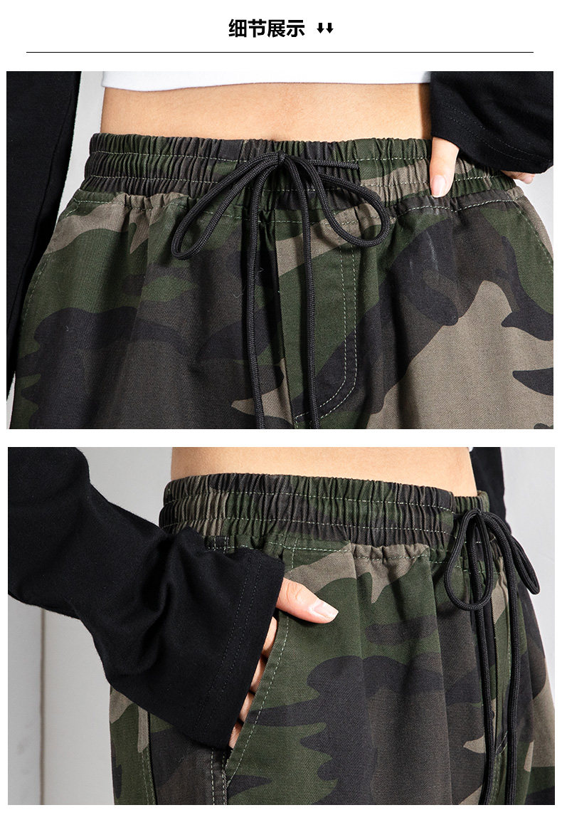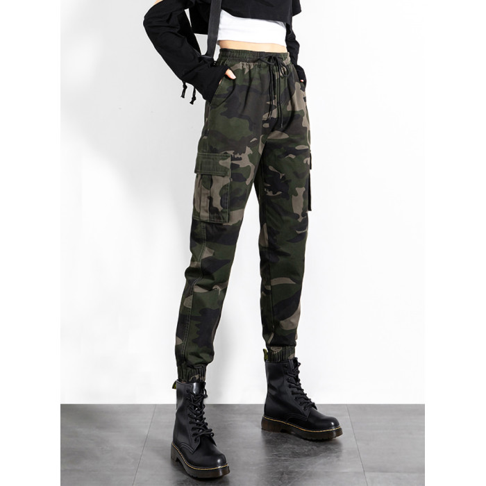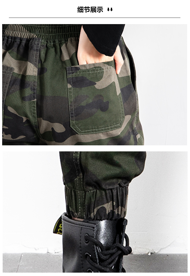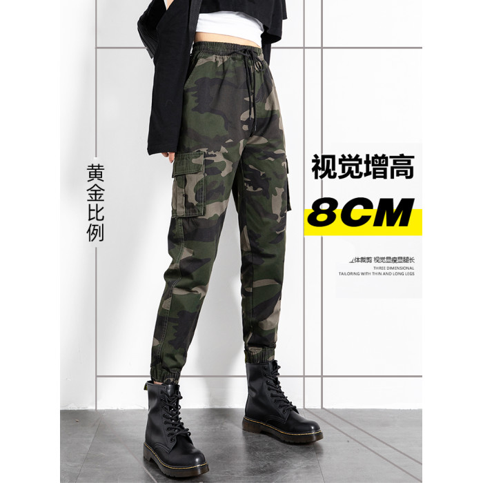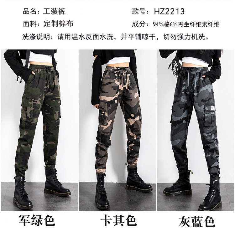 迷彩工裝褲女春秋新款軍旅戶外高腰顯瘦寬松情侶休閒運動束腳褲子