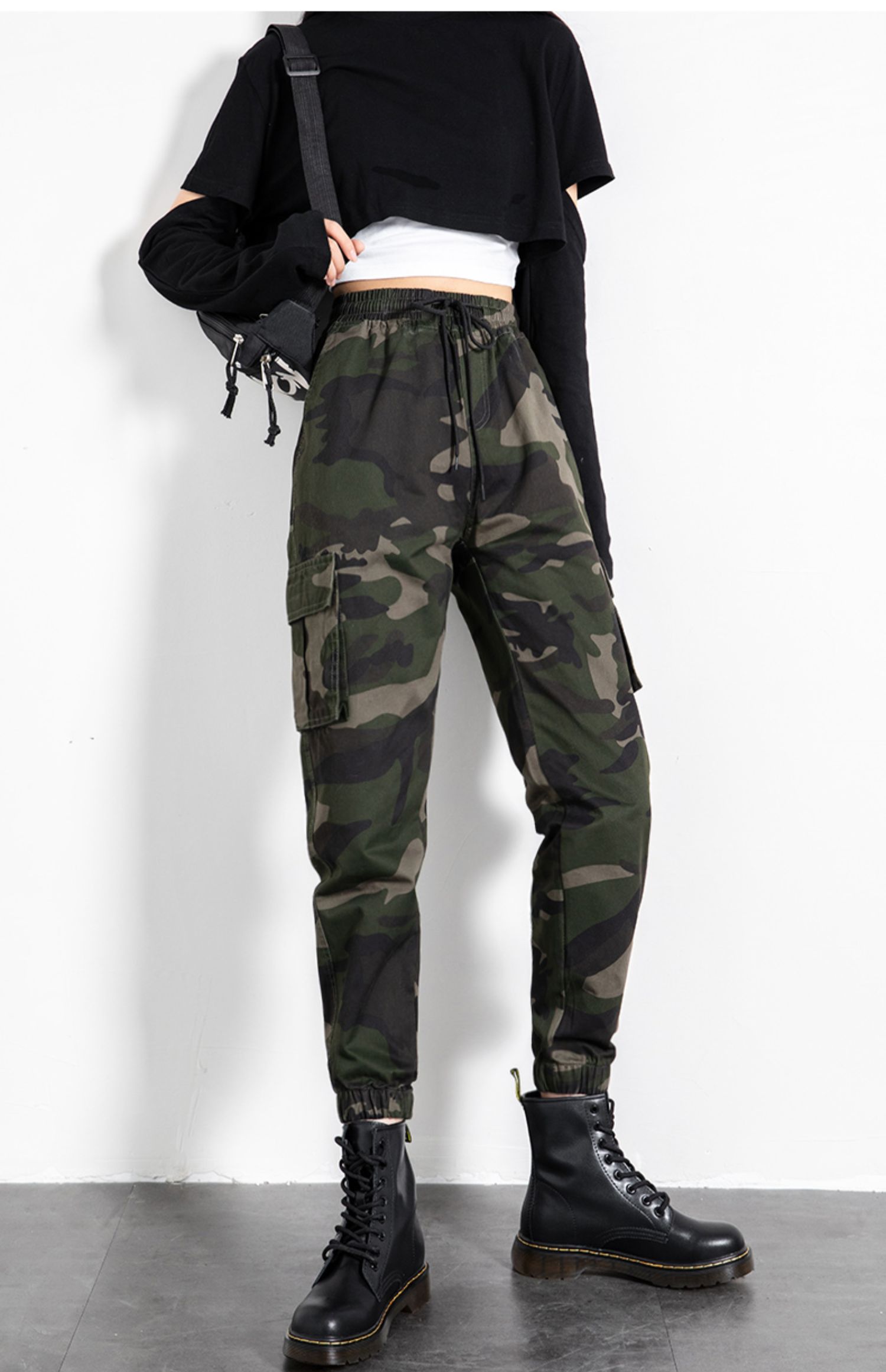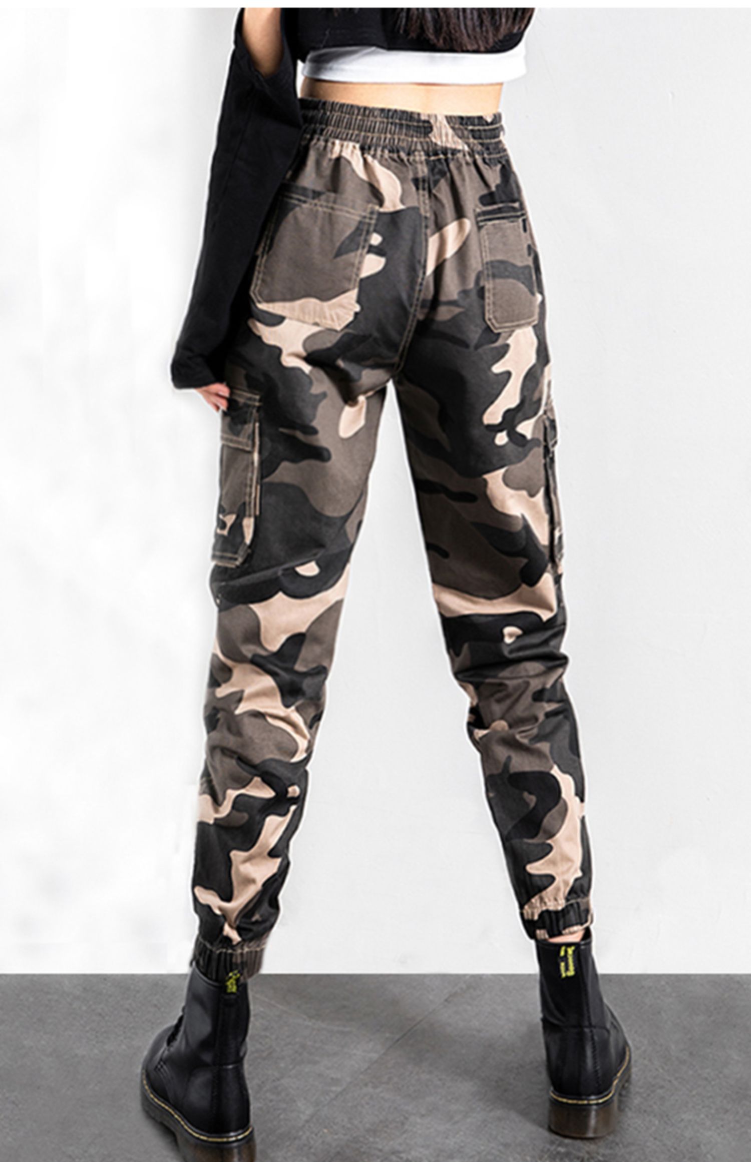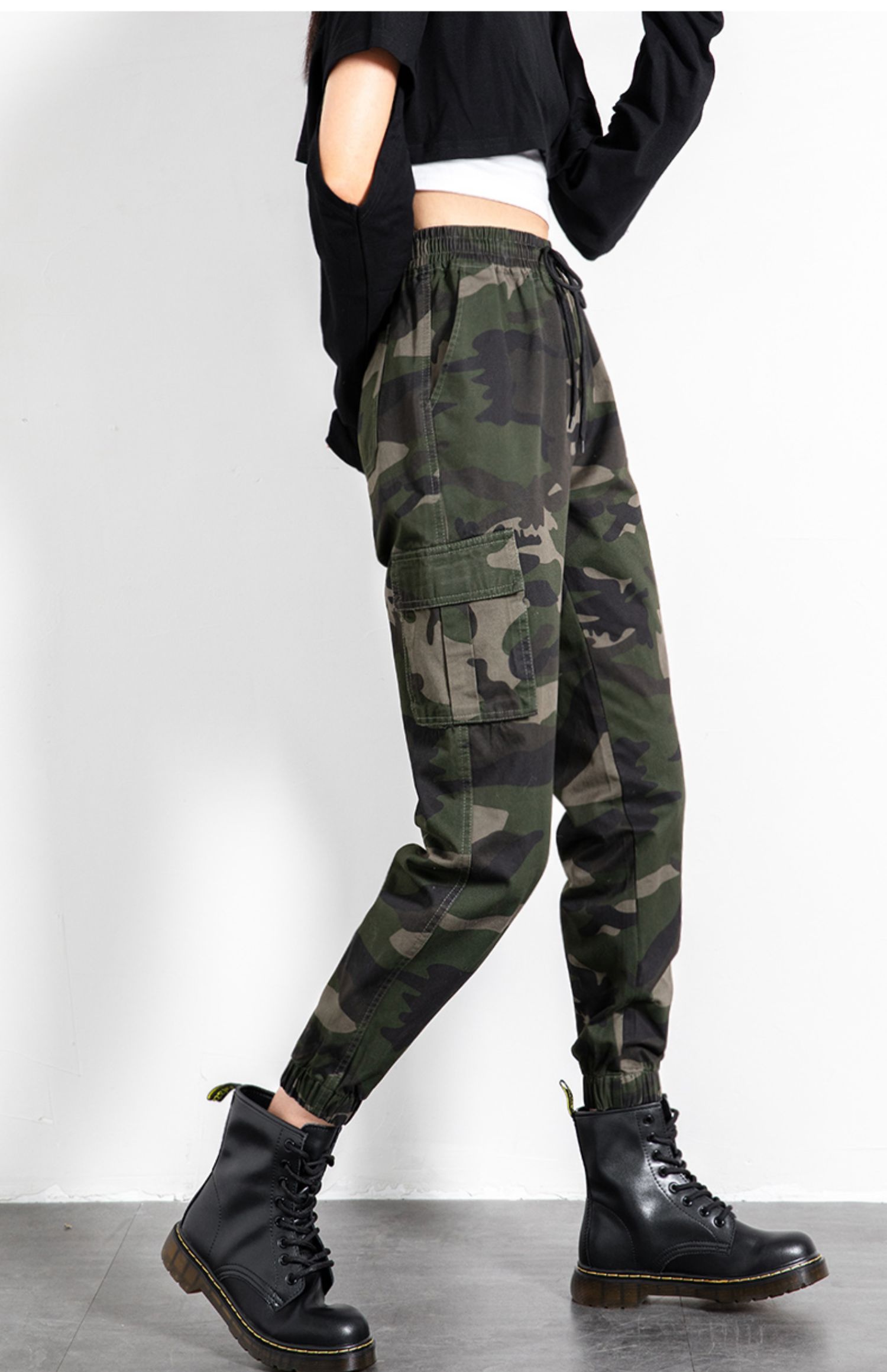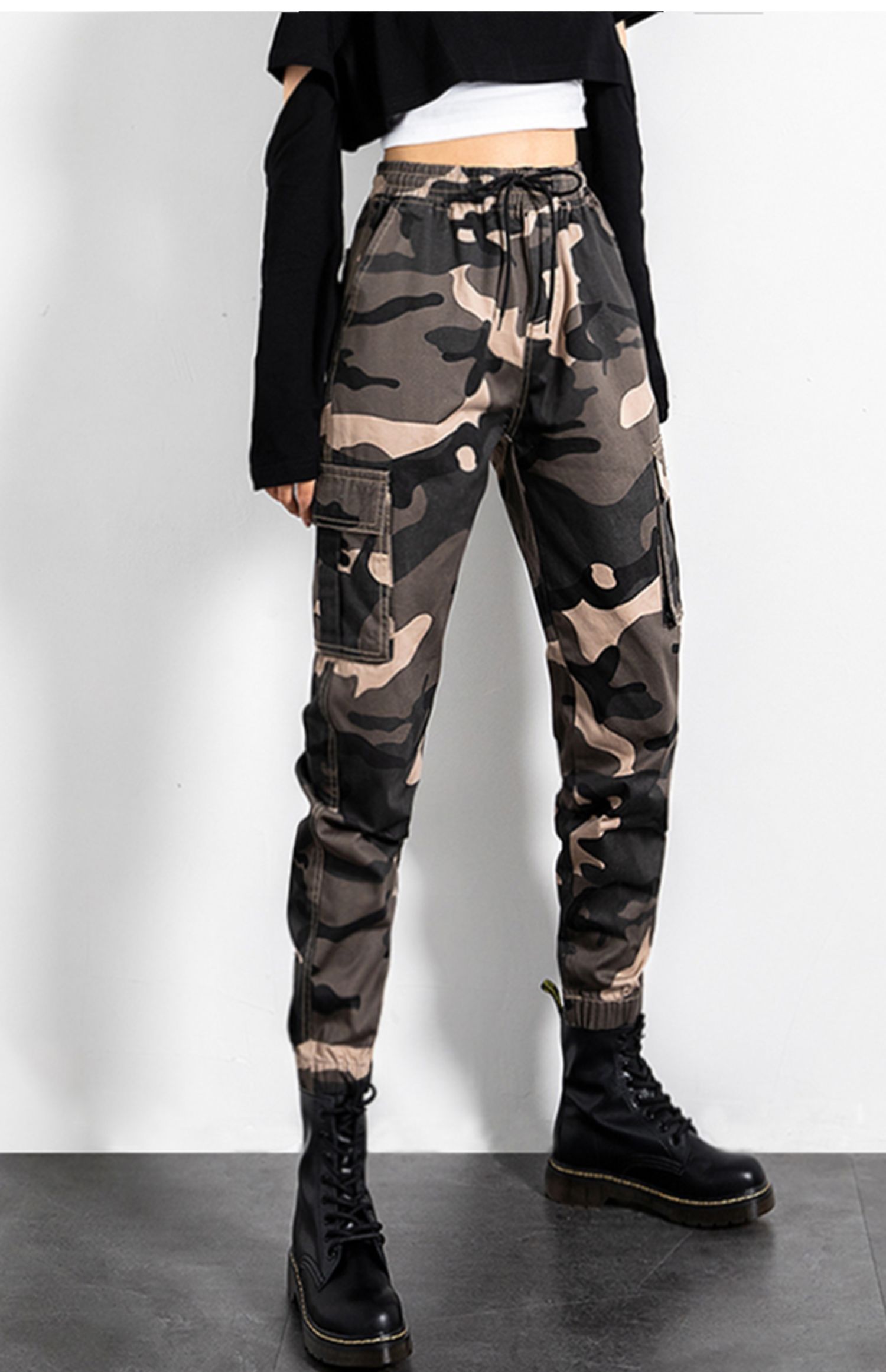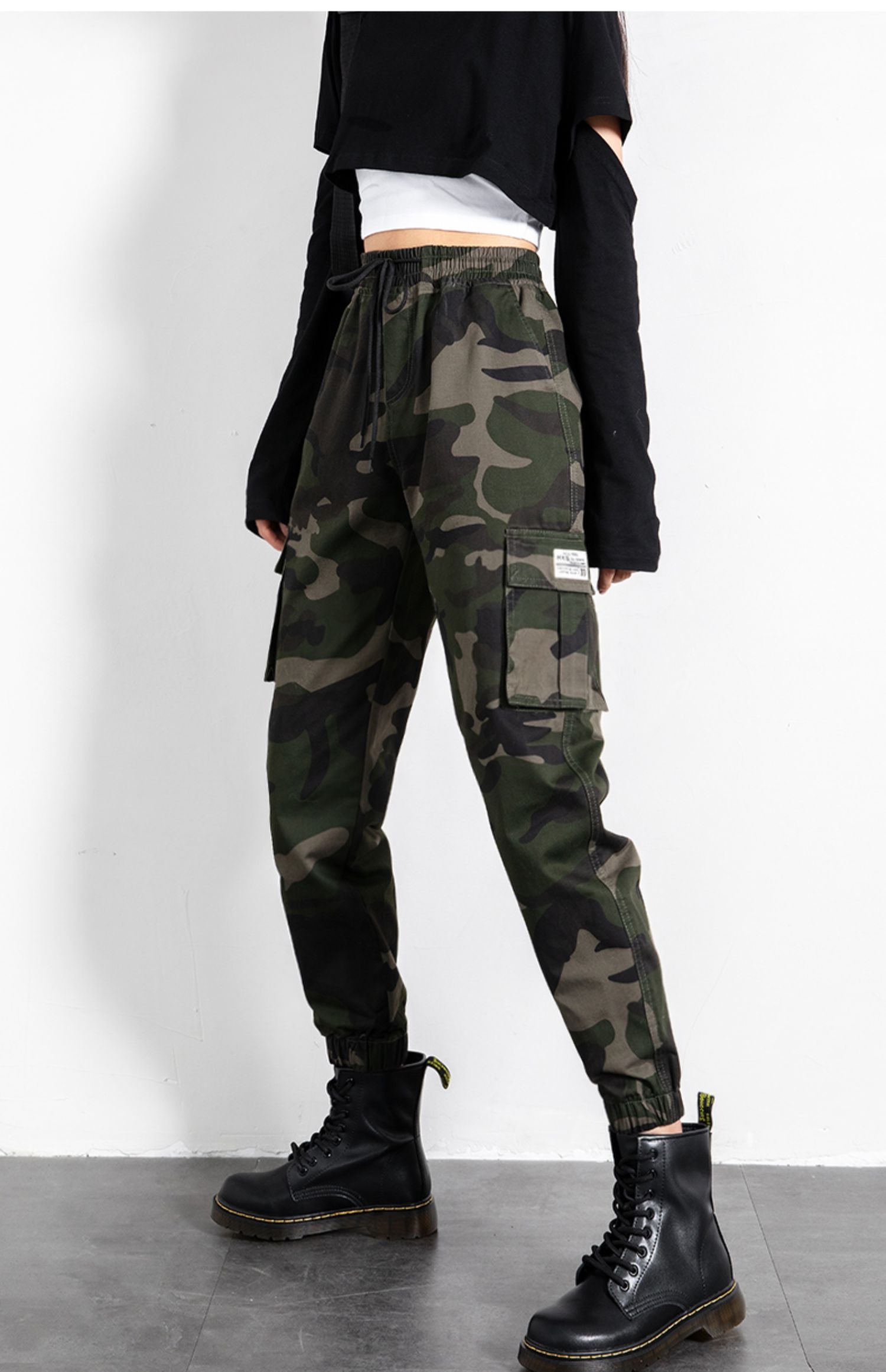 迷彩工裝褲女春秋新款軍旅戶外高腰顯瘦寬松情侶休閒運動束腳褲子