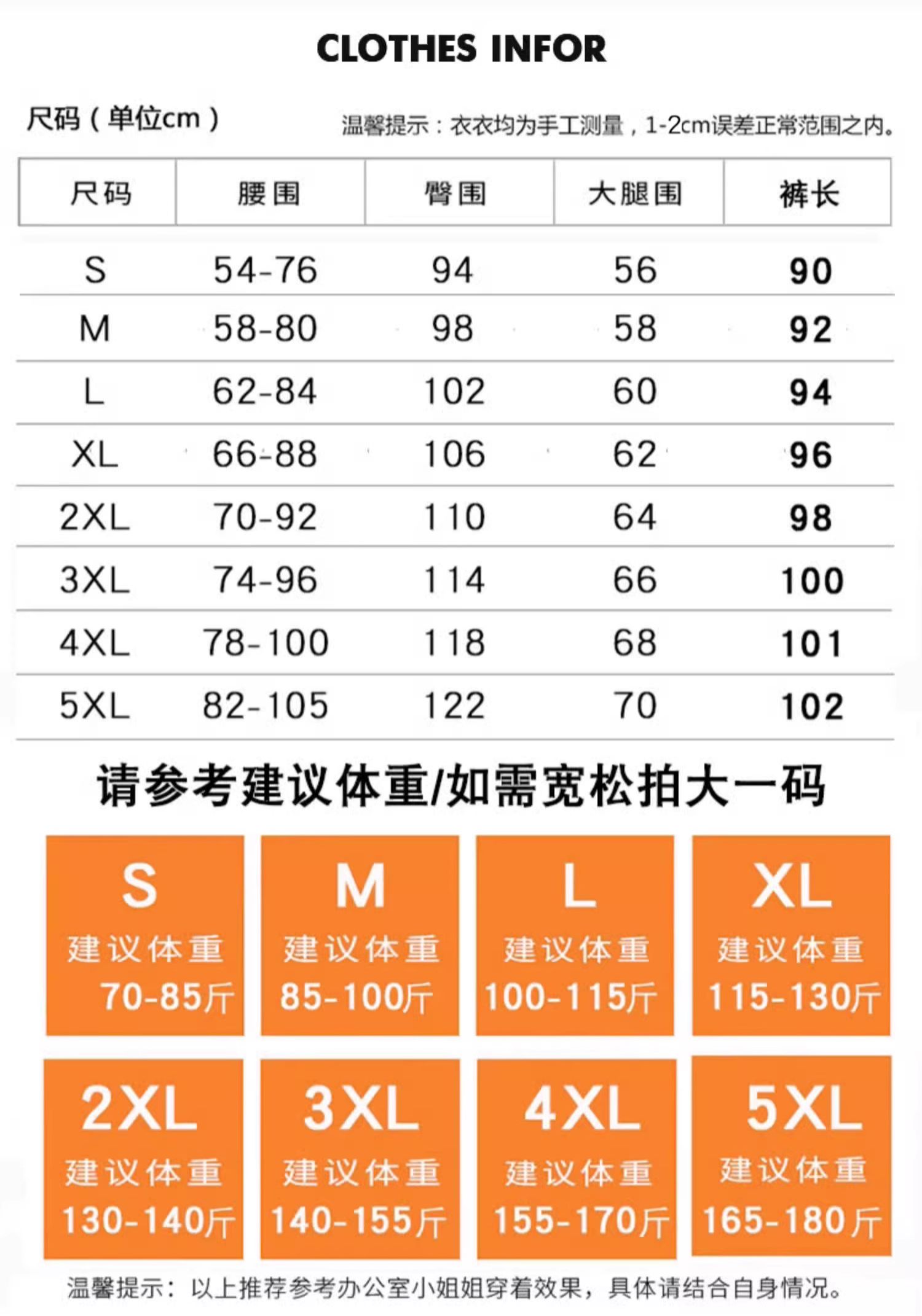 | 褲長 | 長褲 |