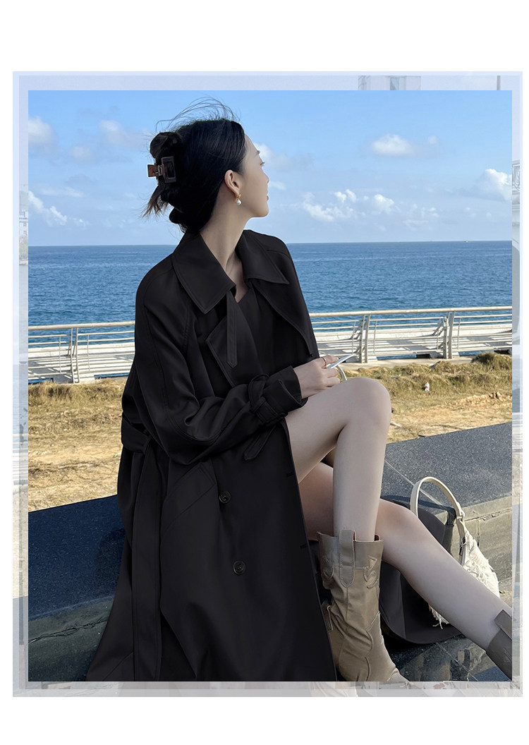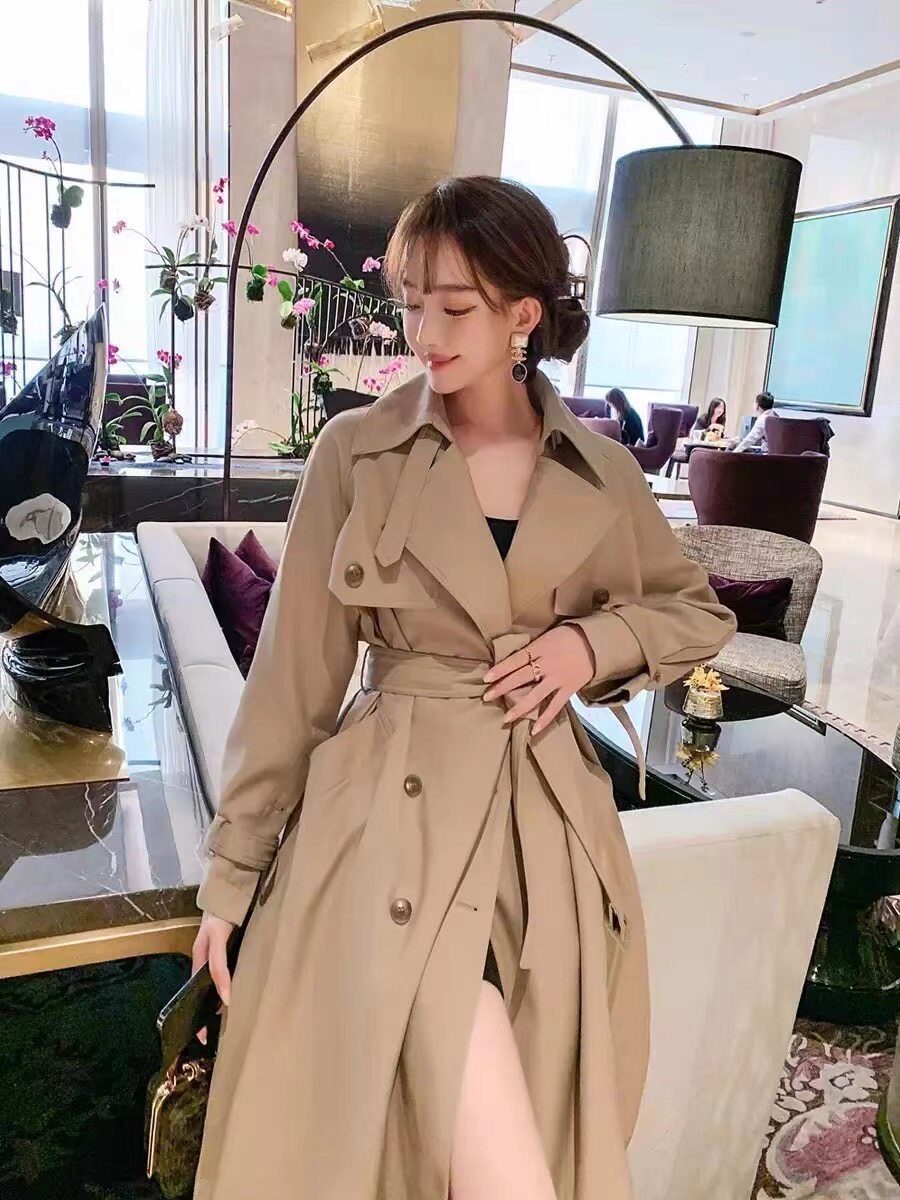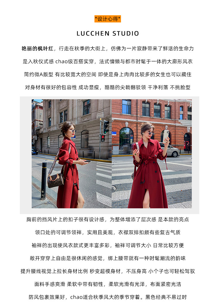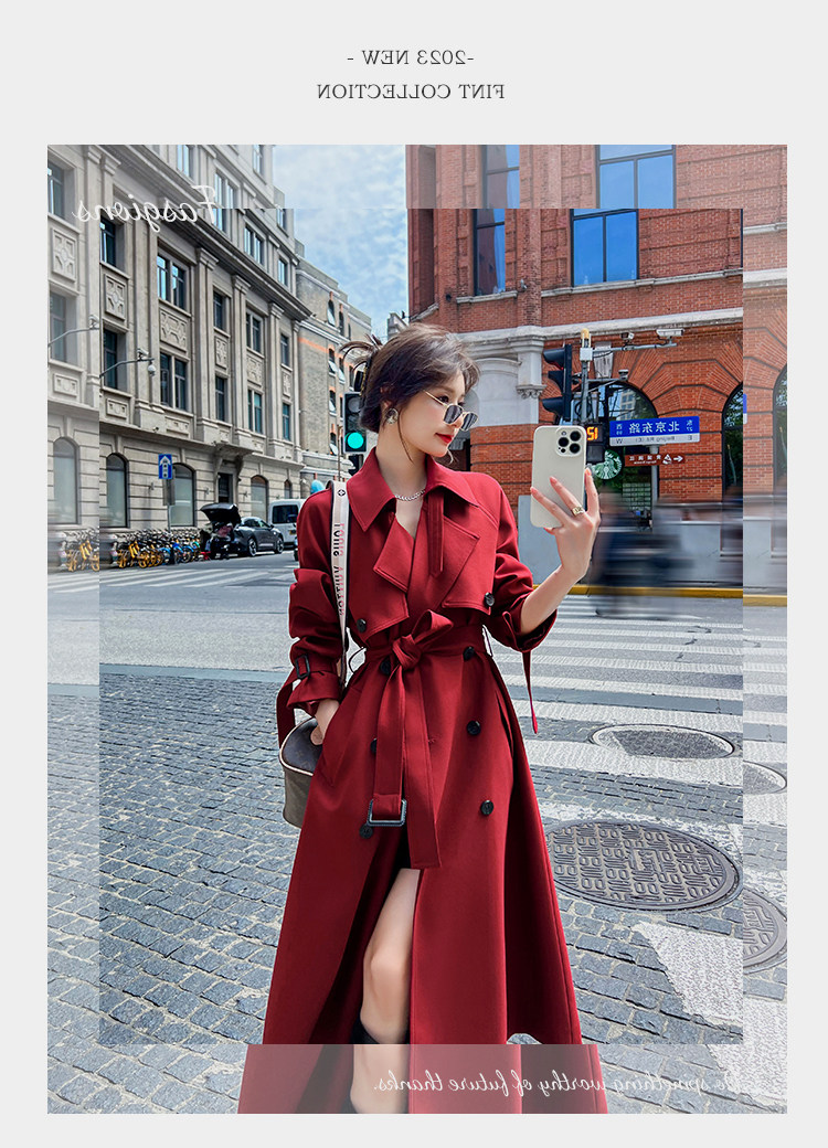 紅色風衣外套女中長款2025春秋新款韓系英倫風垂感小個子氣質大衣