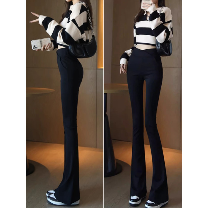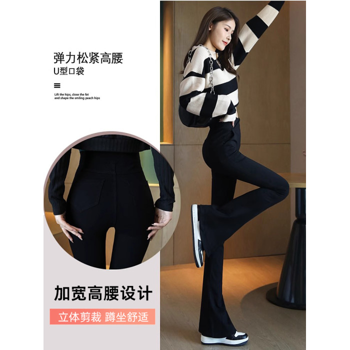 黑色微喇叭褲女秋冬加絨2025新爆款高腰修身顯瘦垂感小個子馬蹄褲