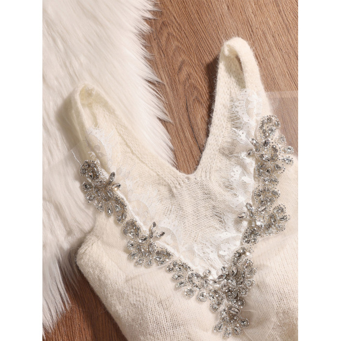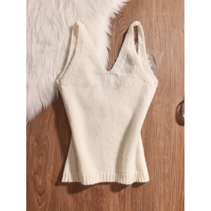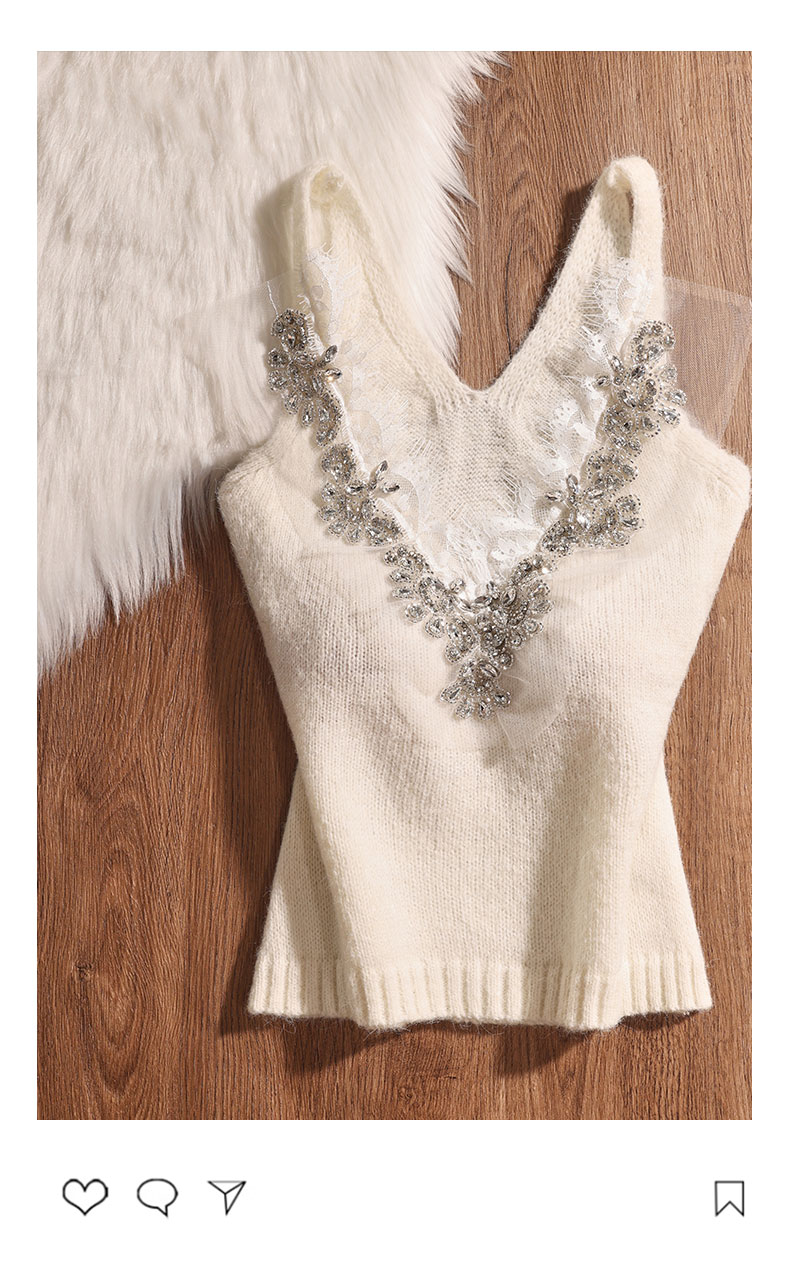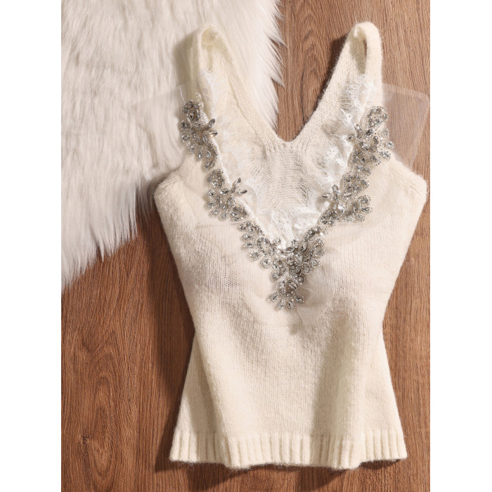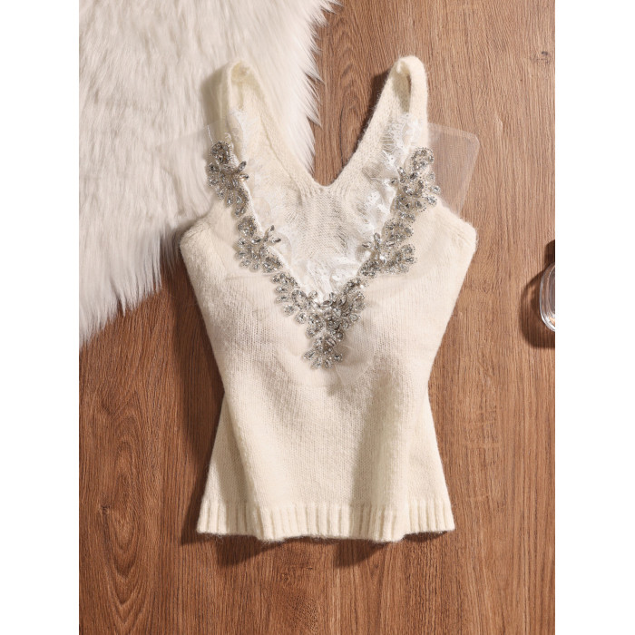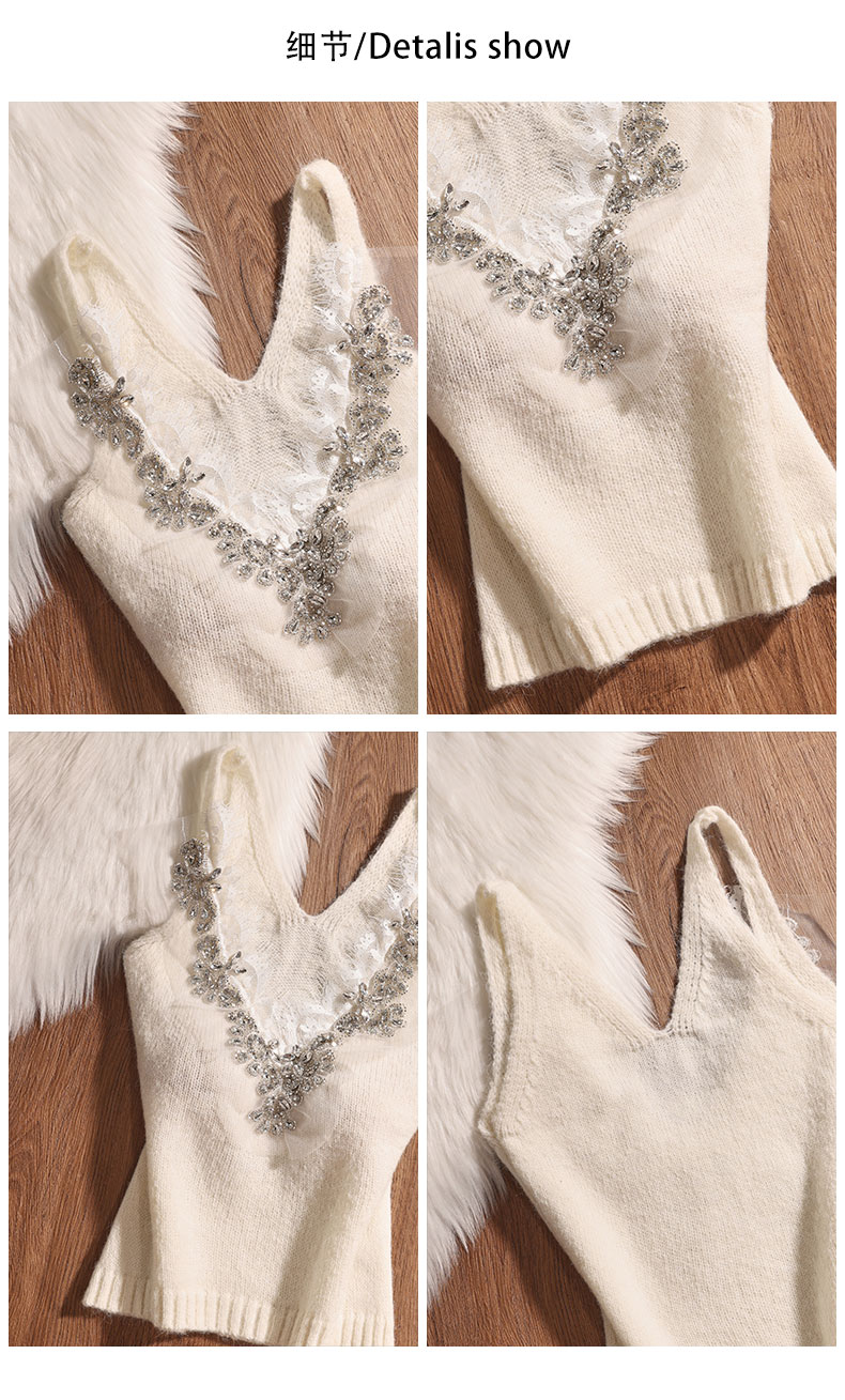 法式純欲釘鑽v領吊帶背心女夏2025西裝內搭蕾絲針織無袖辣妹上衣