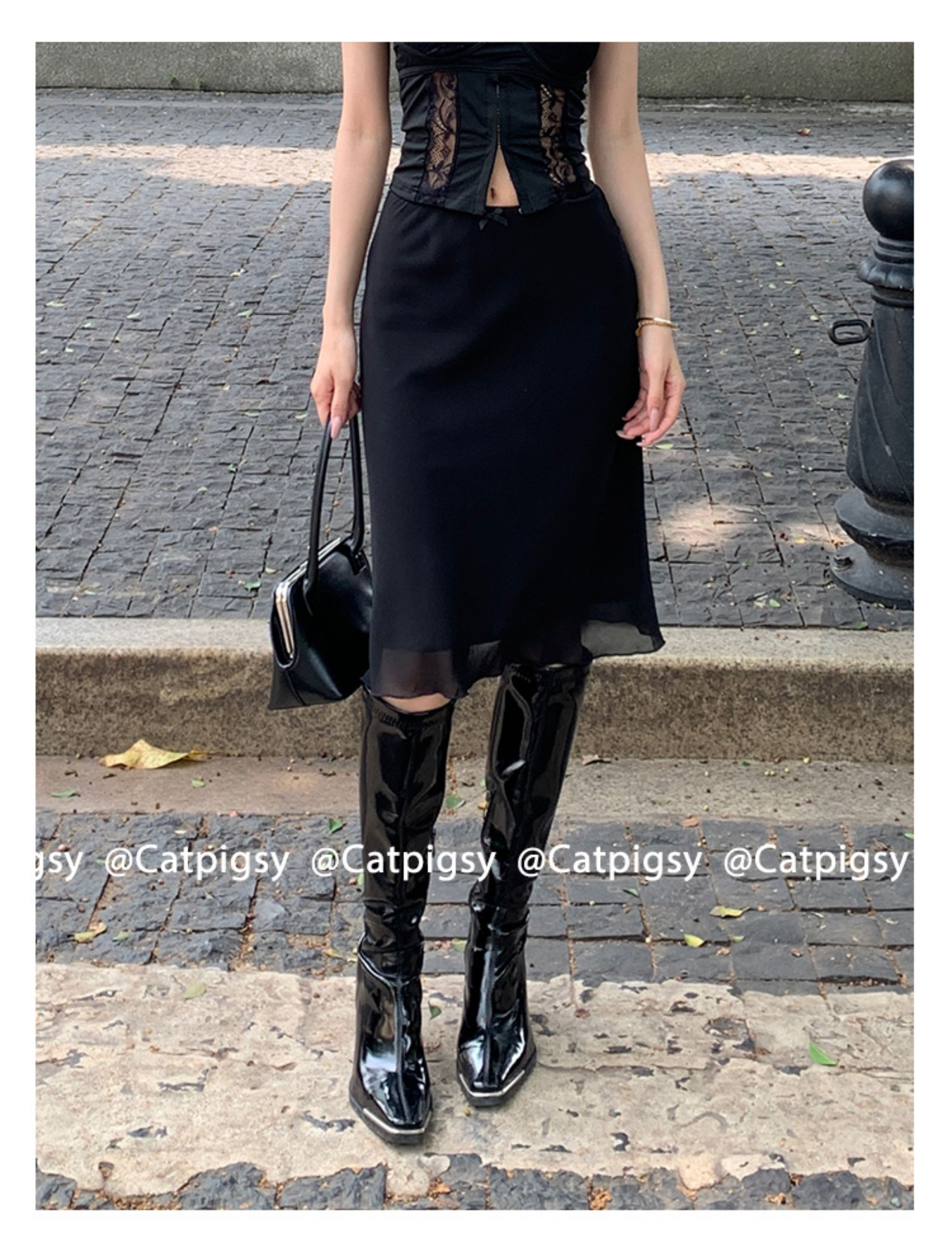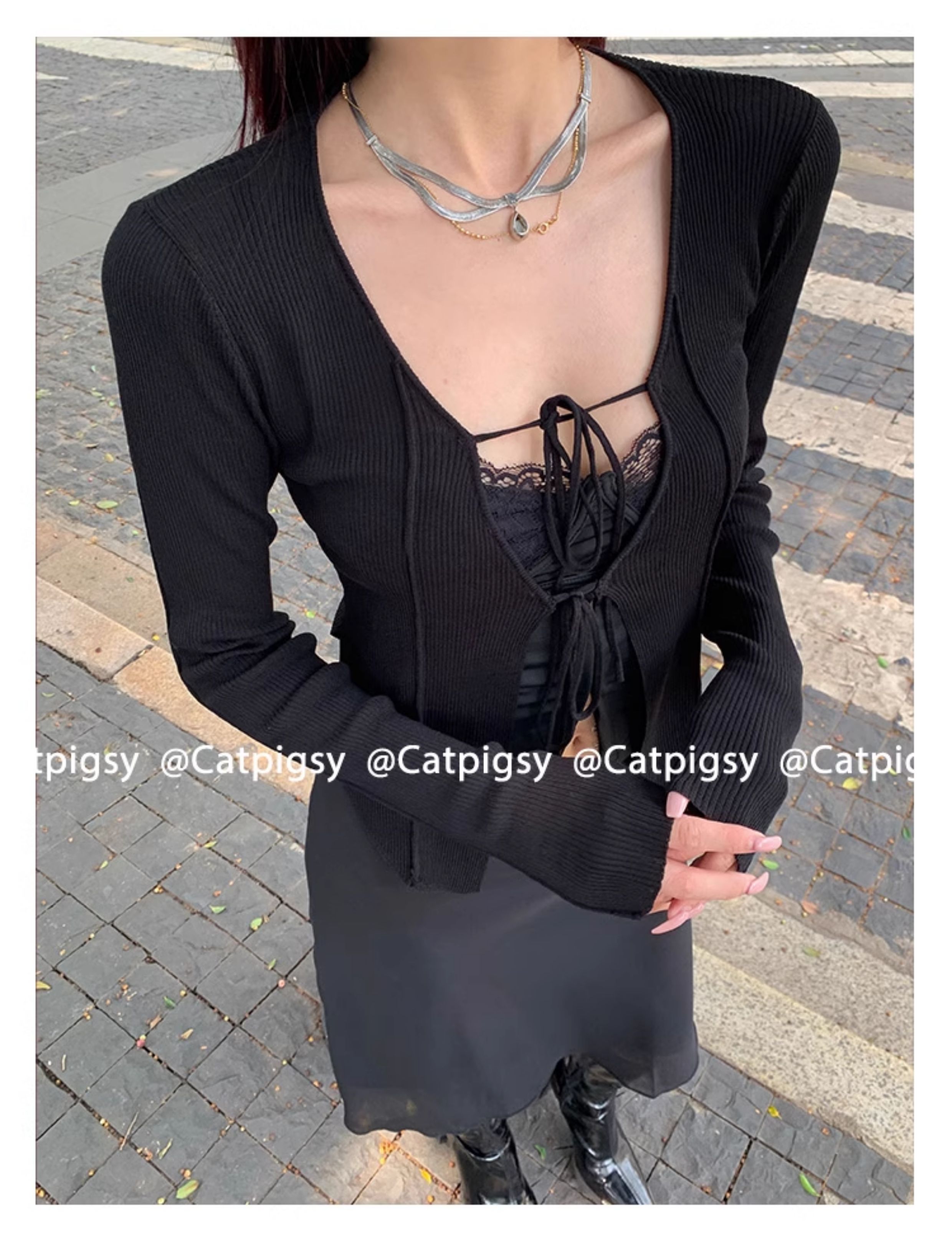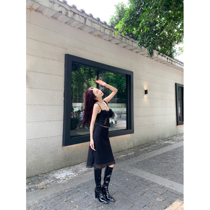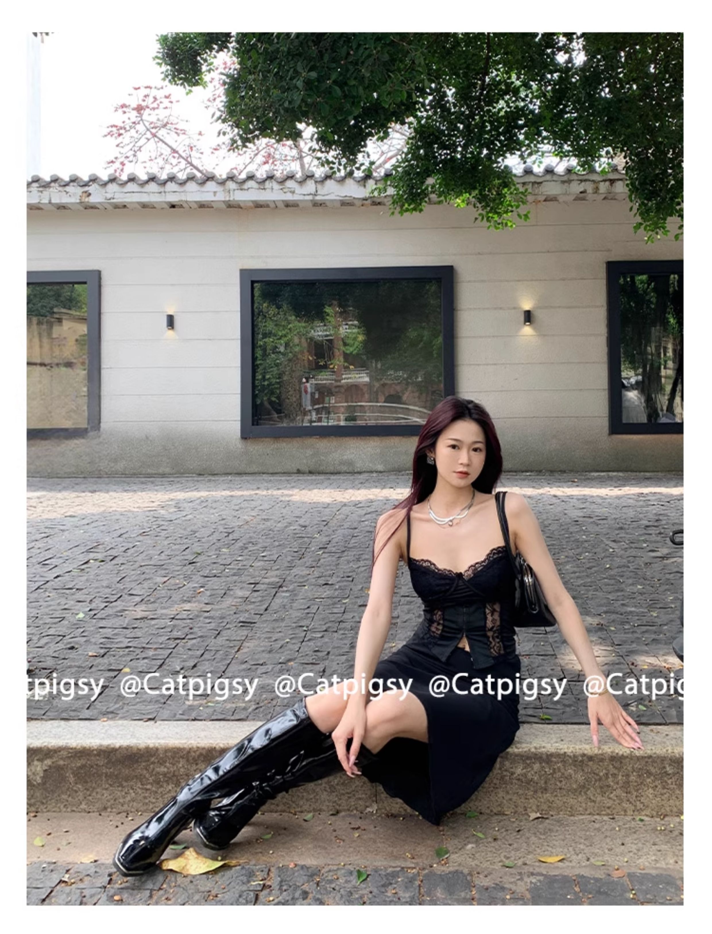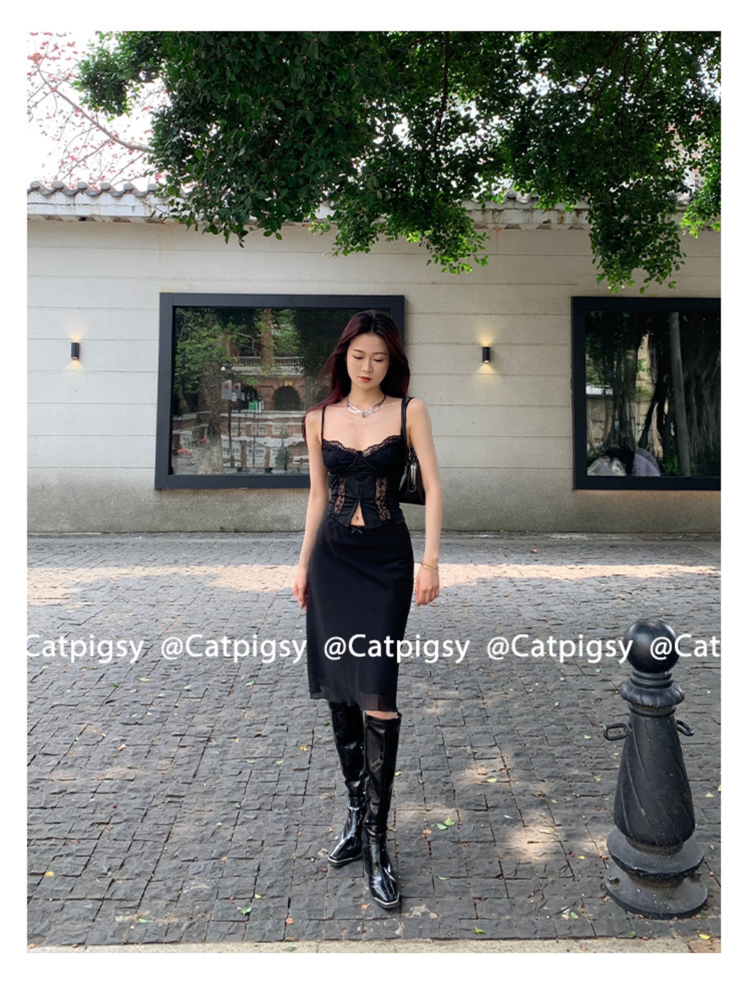 Wild Kiwi 黑色蕾絲吊帶背心女新款辣妹修身顯瘦內搭外穿短款上衣