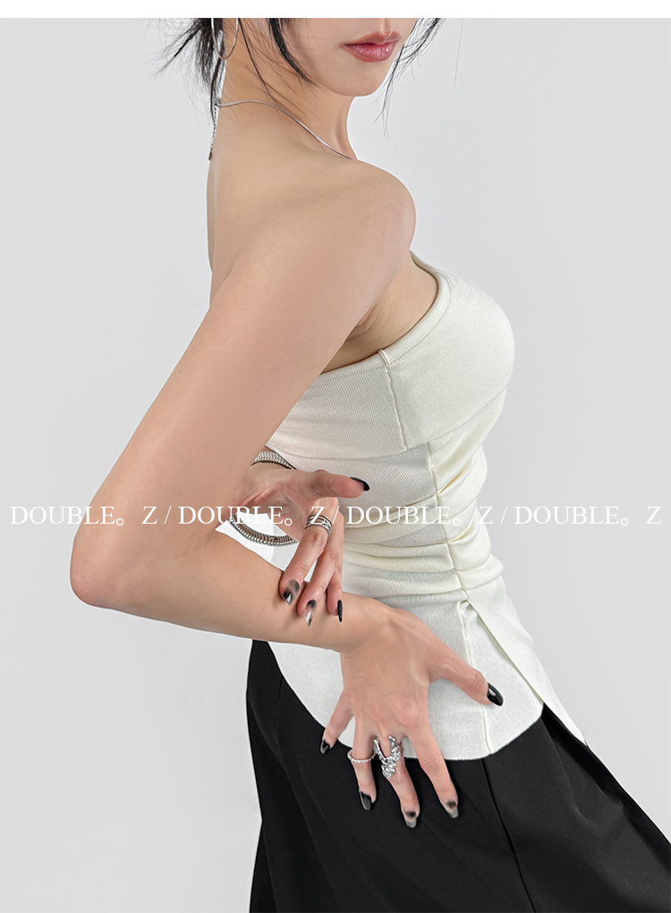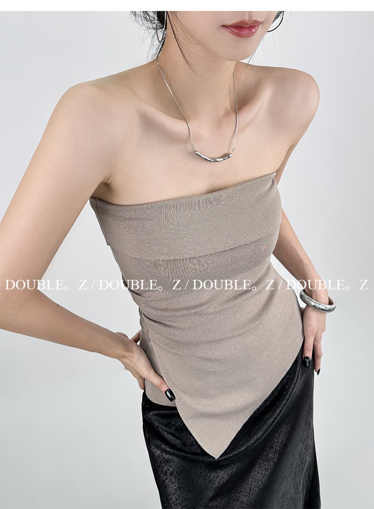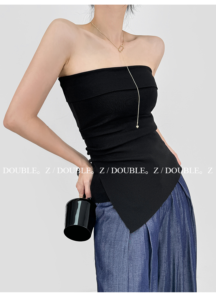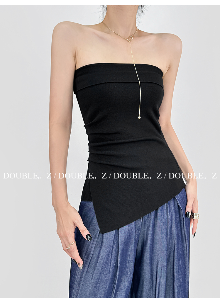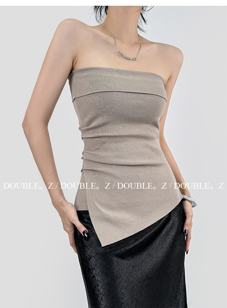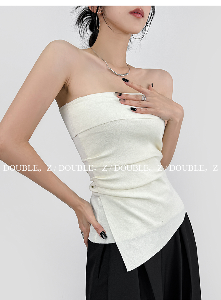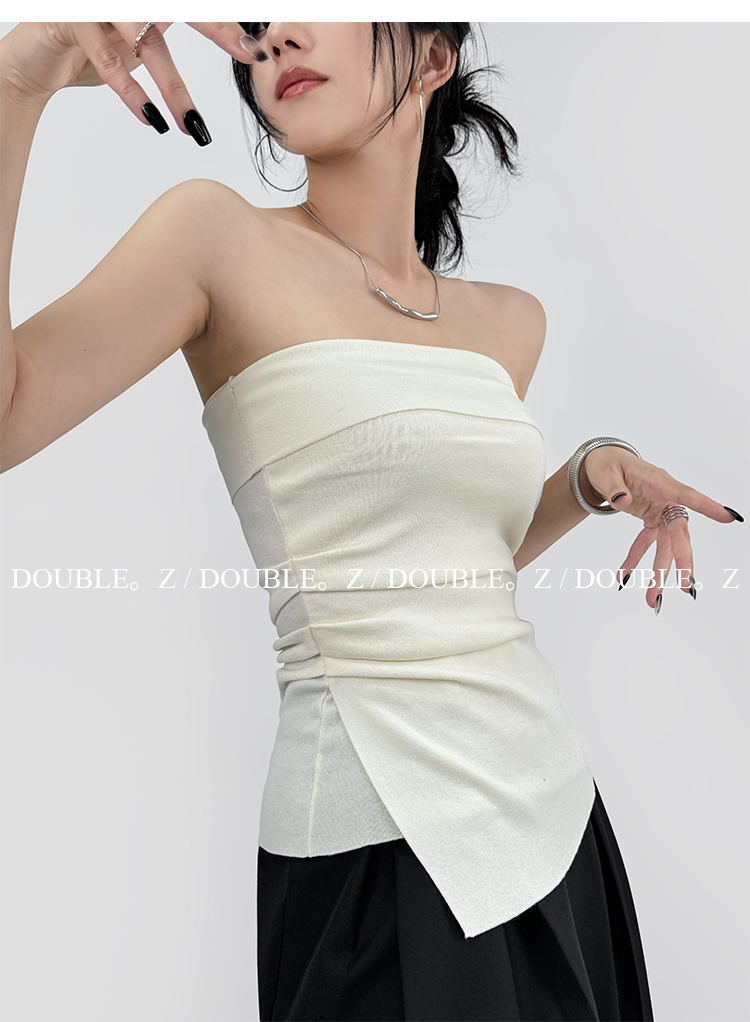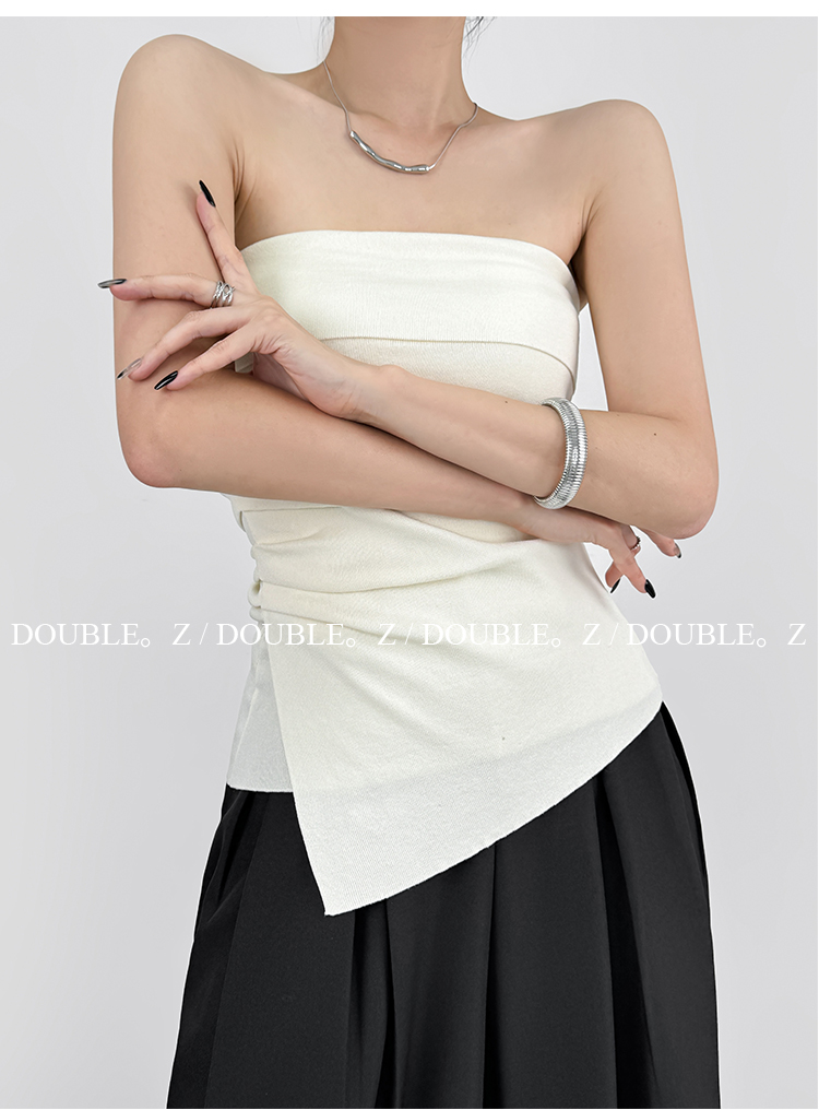 DOUBLE Z 一字肩針織抹胸女秋高級感不規則褶皺收腰上衣外穿打底
