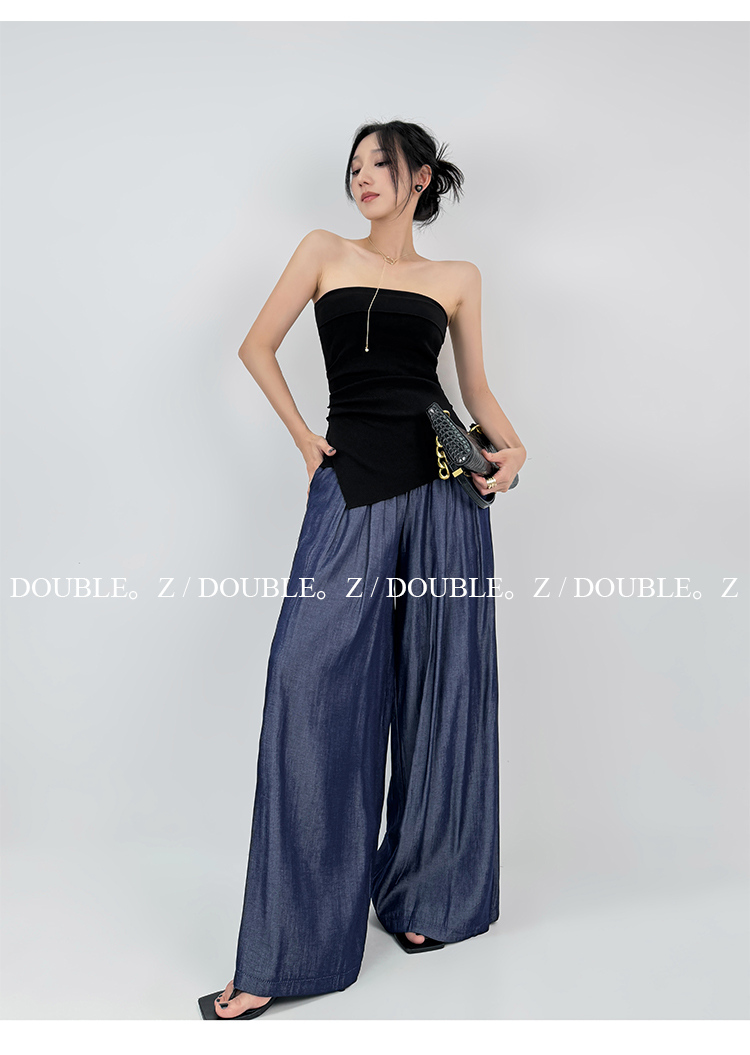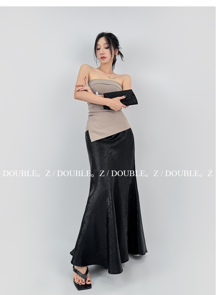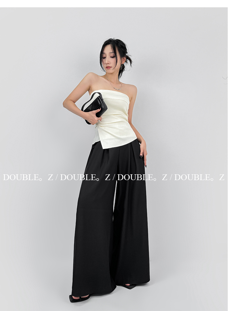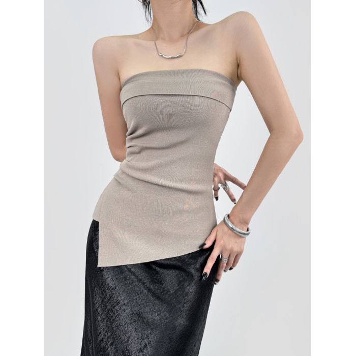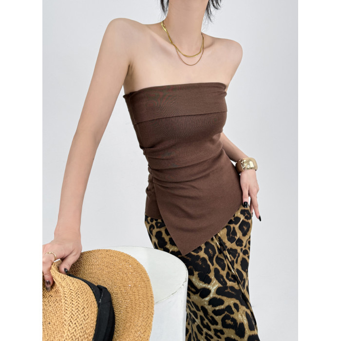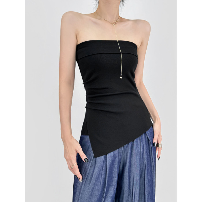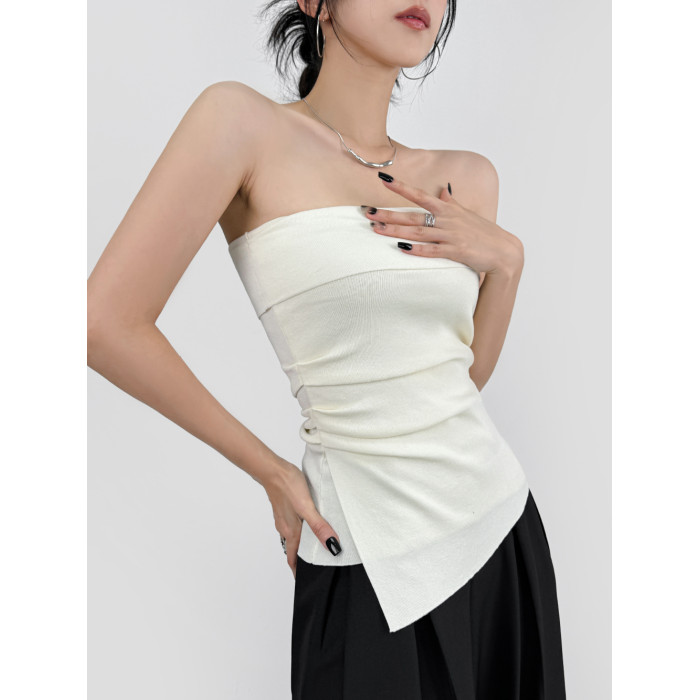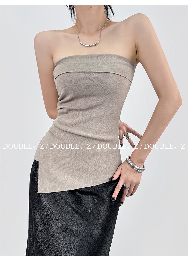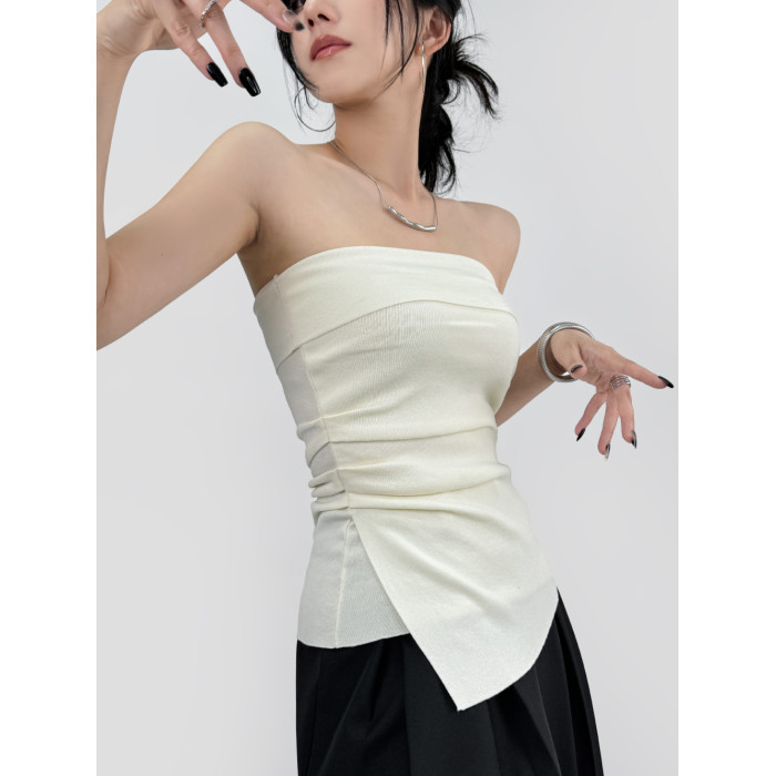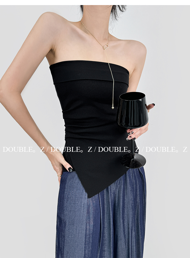 DOUBLE Z 一字肩針織抹胸女秋高級感不規則褶皺收腰上衣外穿打底