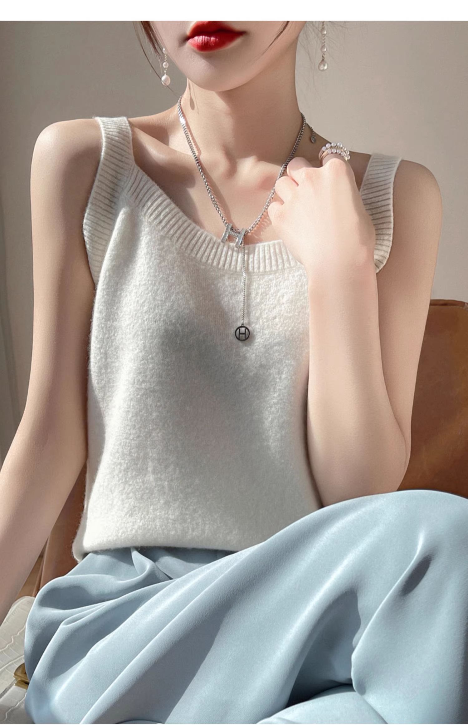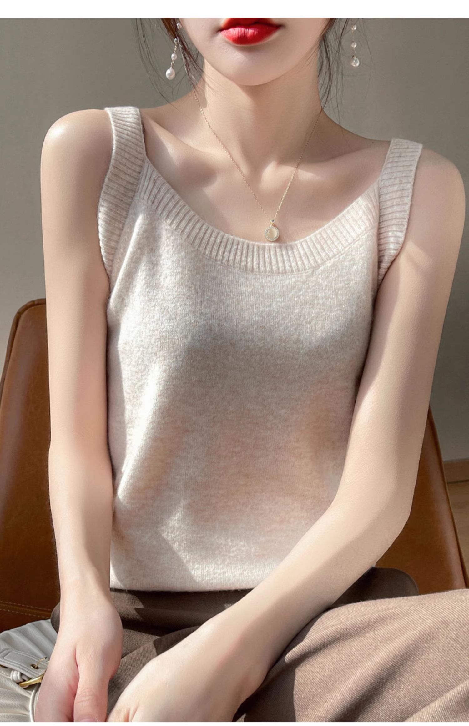 修身羊毛吊帶背心女2025春秋冬季新款內搭毛衣針織打底衫上衣無袖