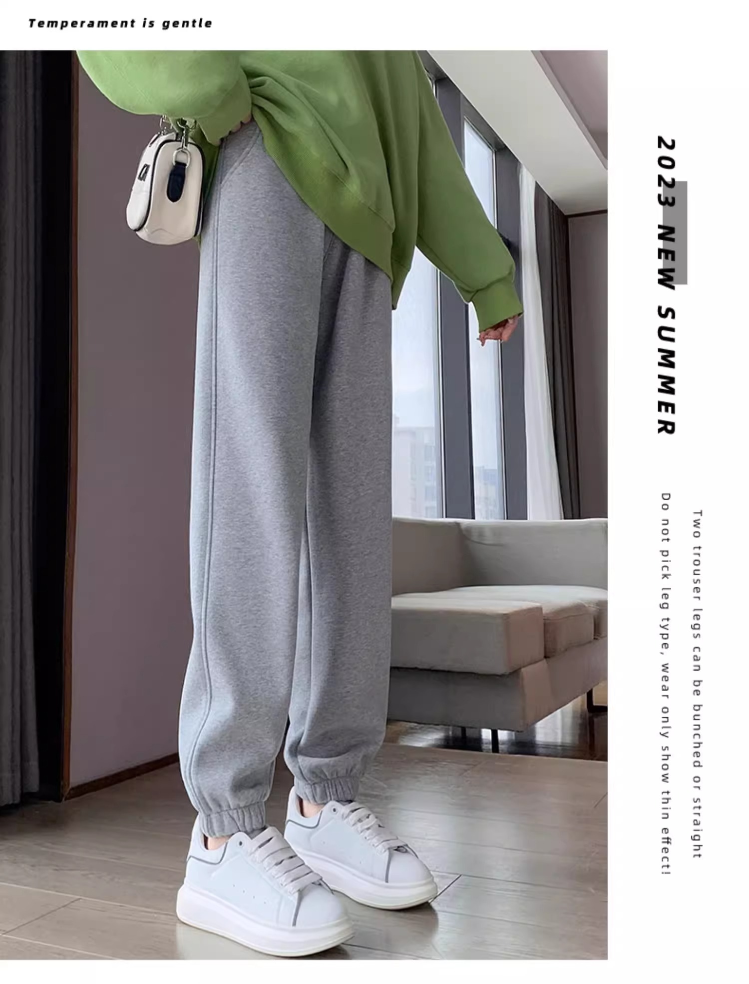 灰色運動褲女秋冬2025新款150小個子休閒褲子女春秋九分加絨衛褲