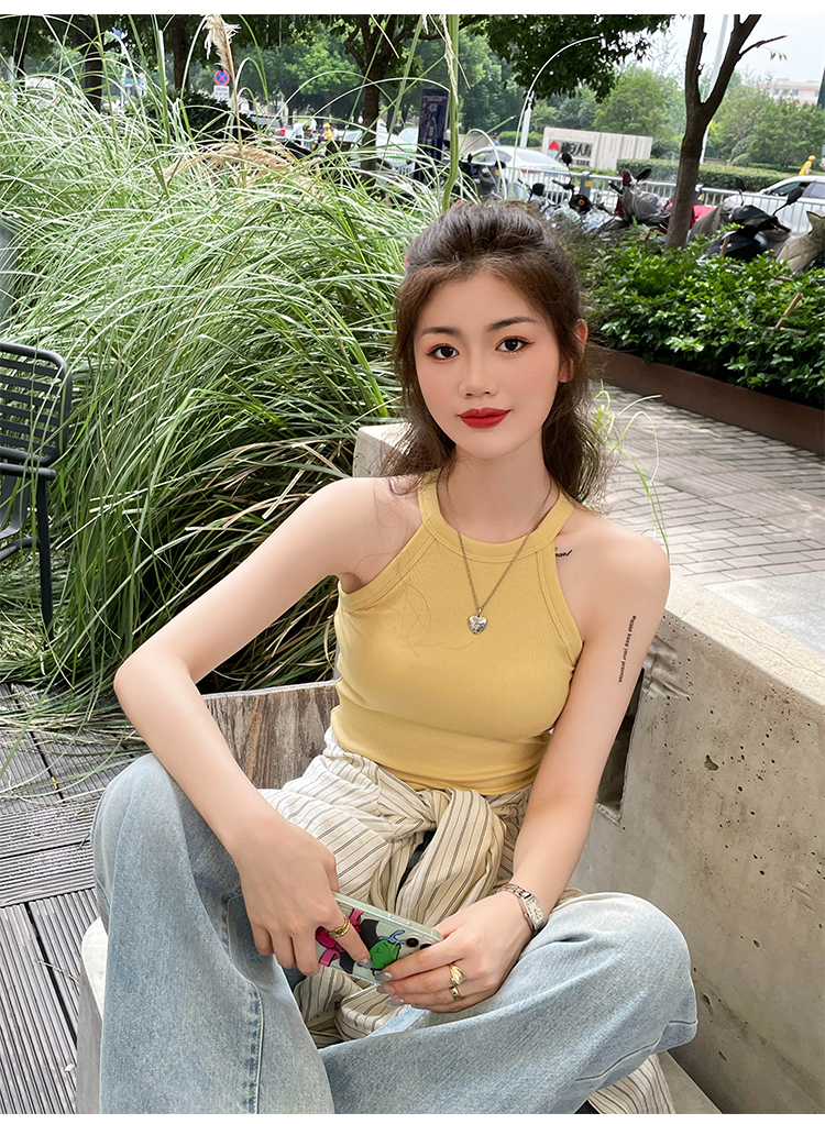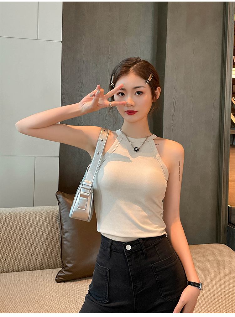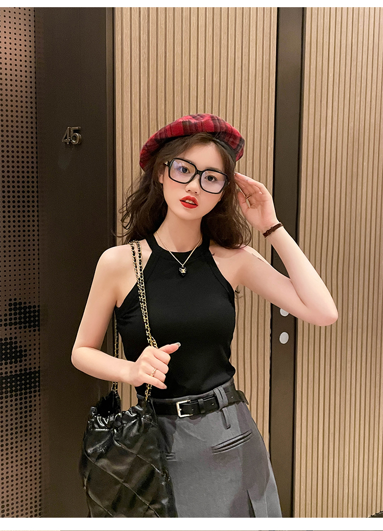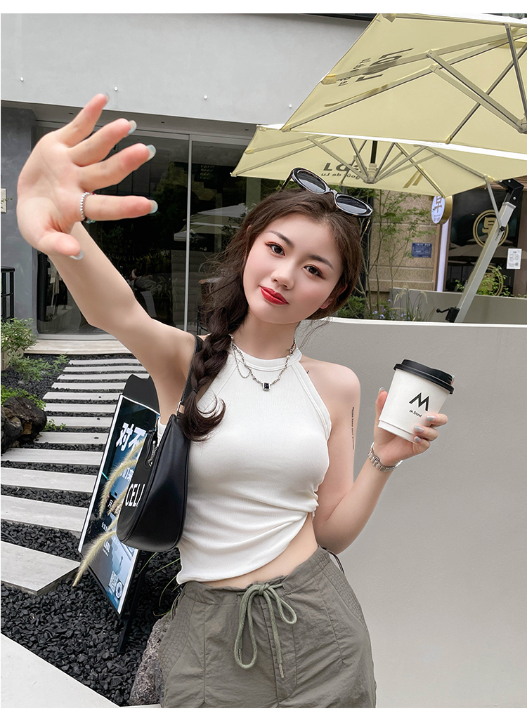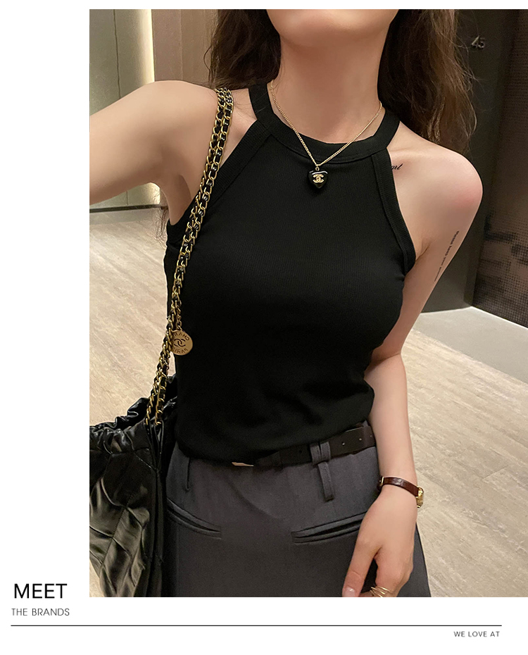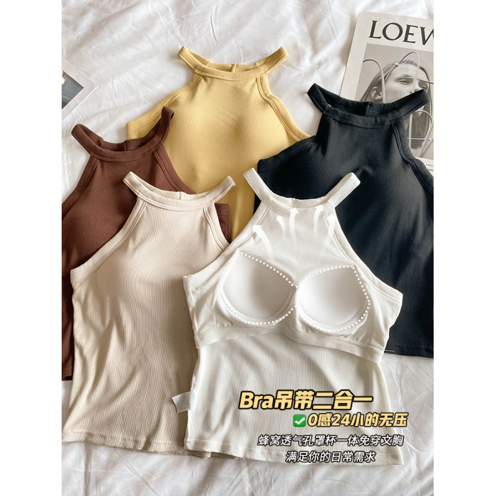 咖色掛脖吊帶背心女士內搭夏2025新款帶胸墊一體外穿無袖打底上衣