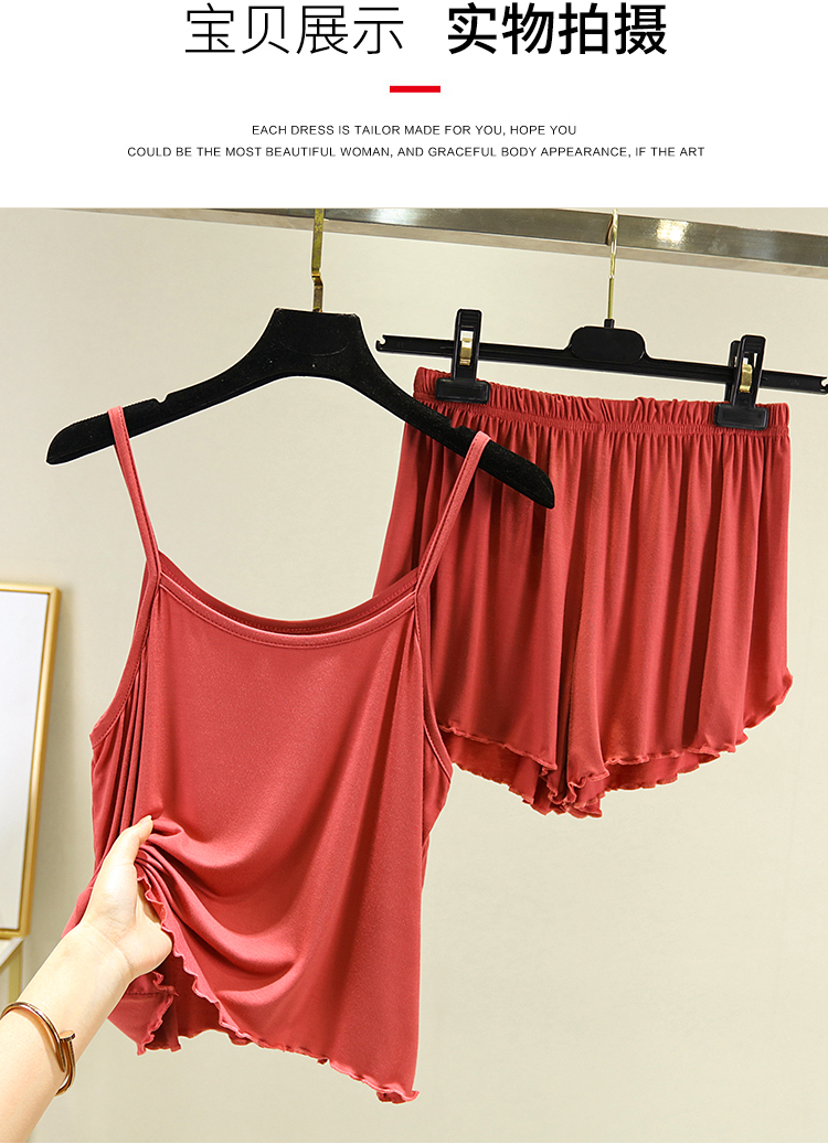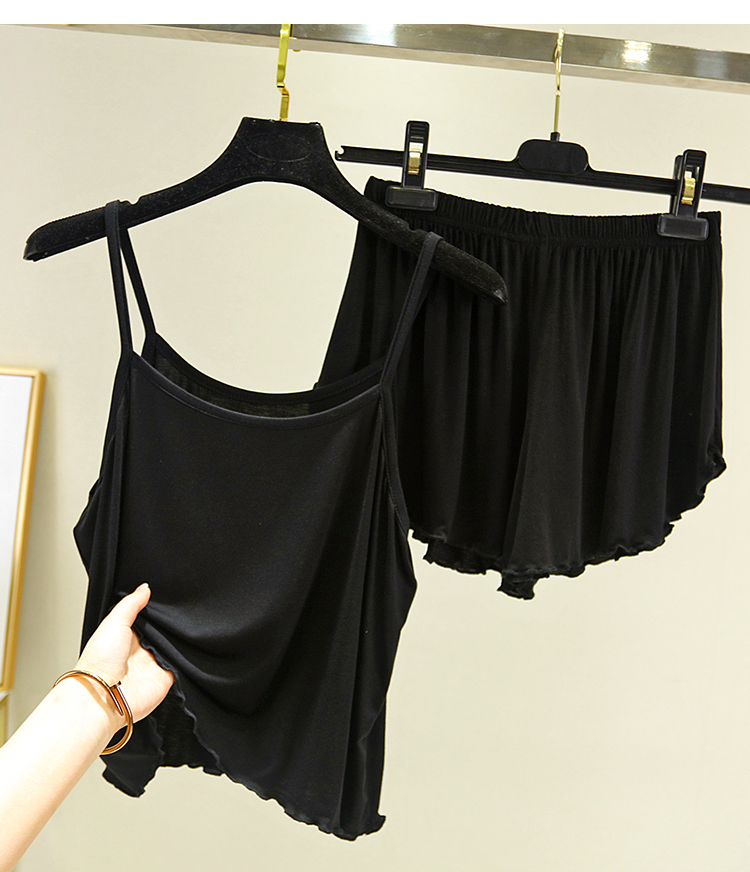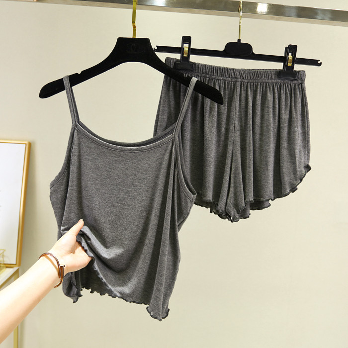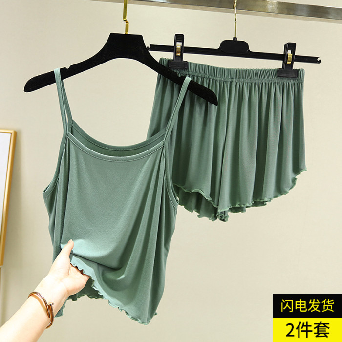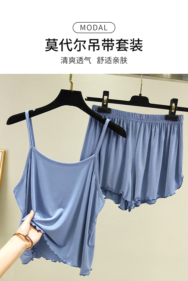 2025春夏莫代爾吊帶睡衣女寬松打底背心大碼上衣睡褲居家兩件套