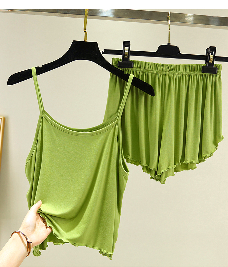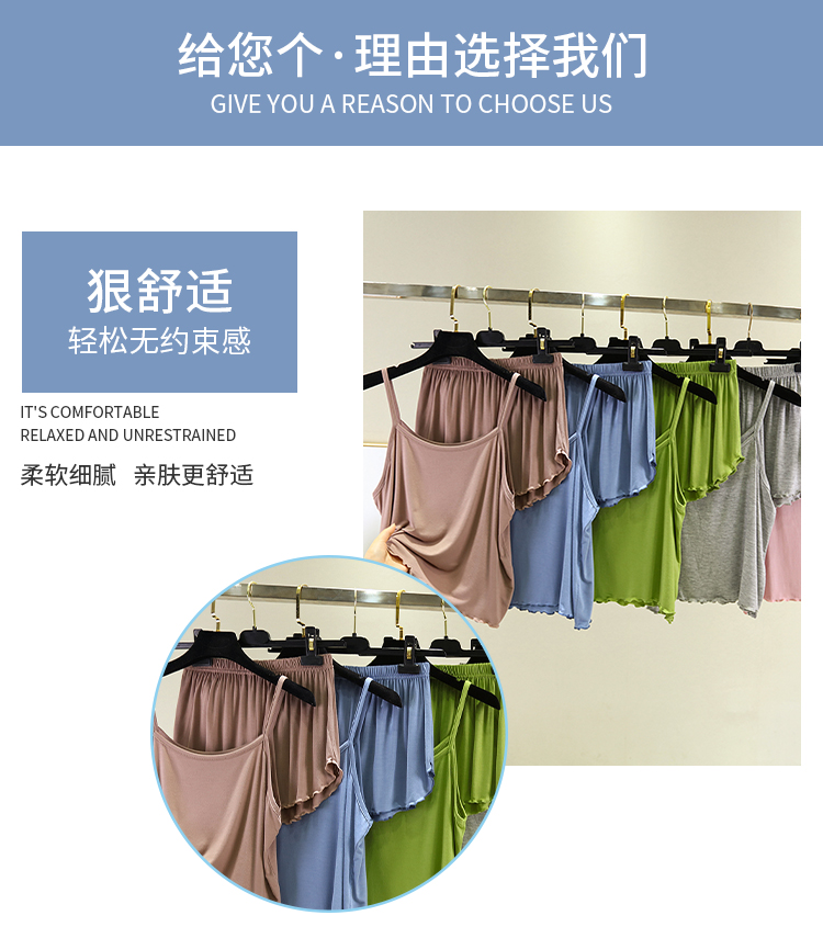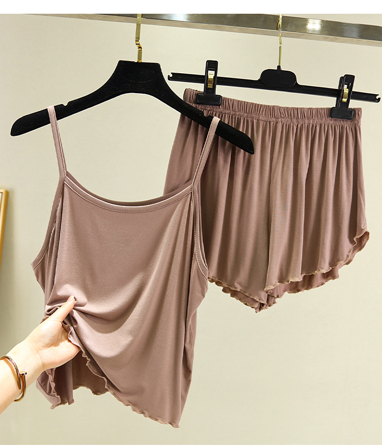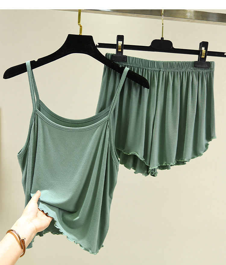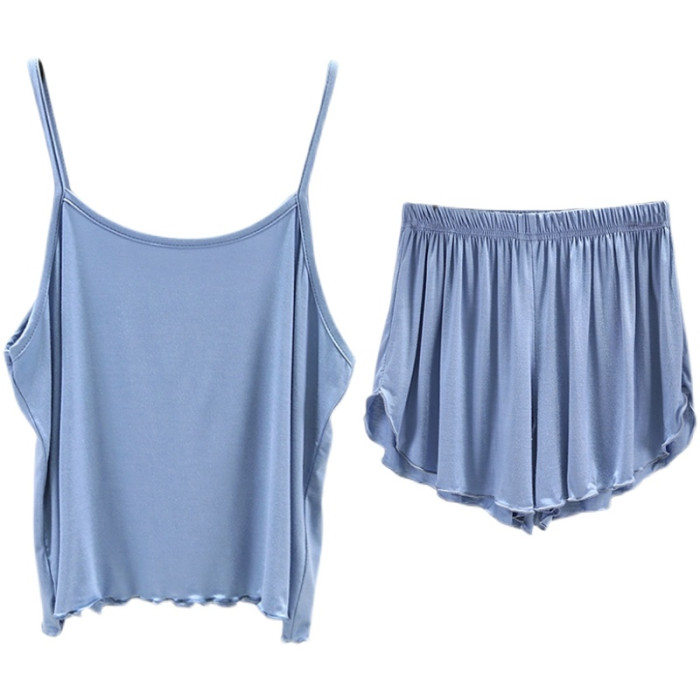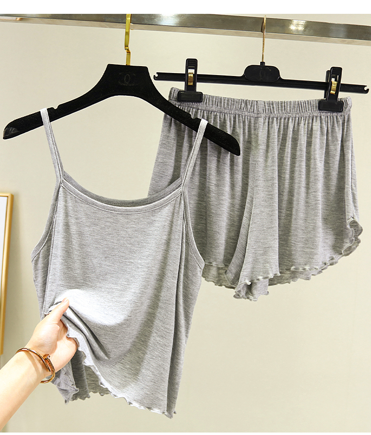 2025春夏莫代爾吊帶睡衣女寬松打底背心大碼上衣睡褲居家兩件套