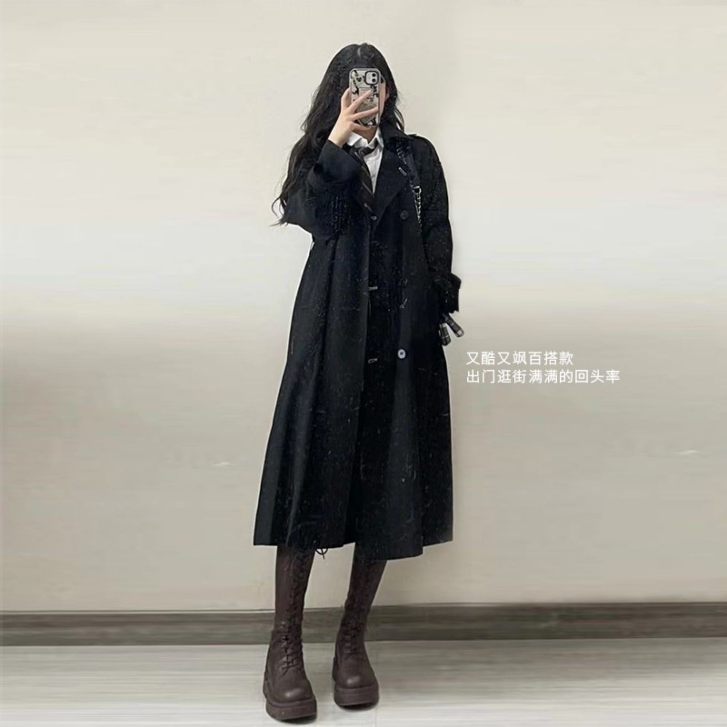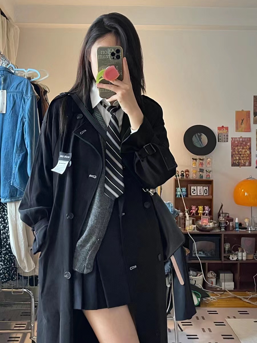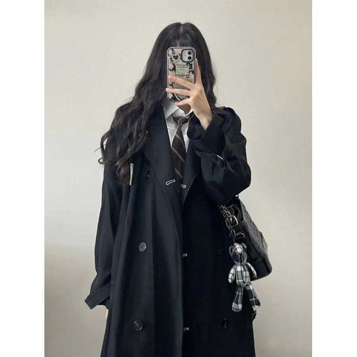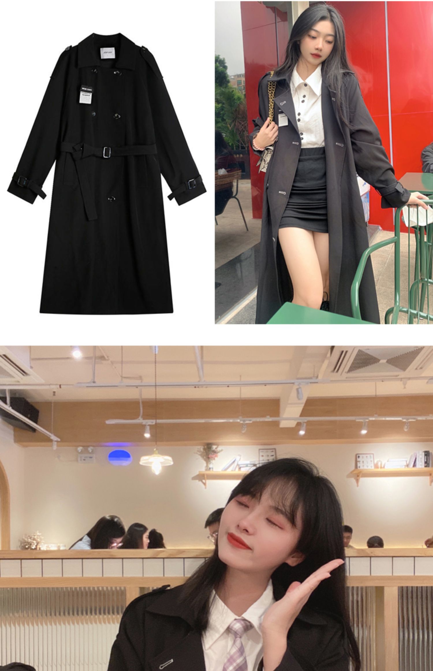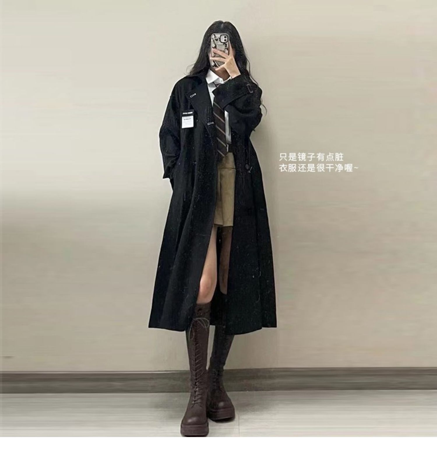 黑色風衣外套女中長款2025秋新款韓系學院風巨好看穿搭大衣小個子