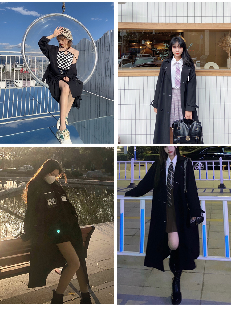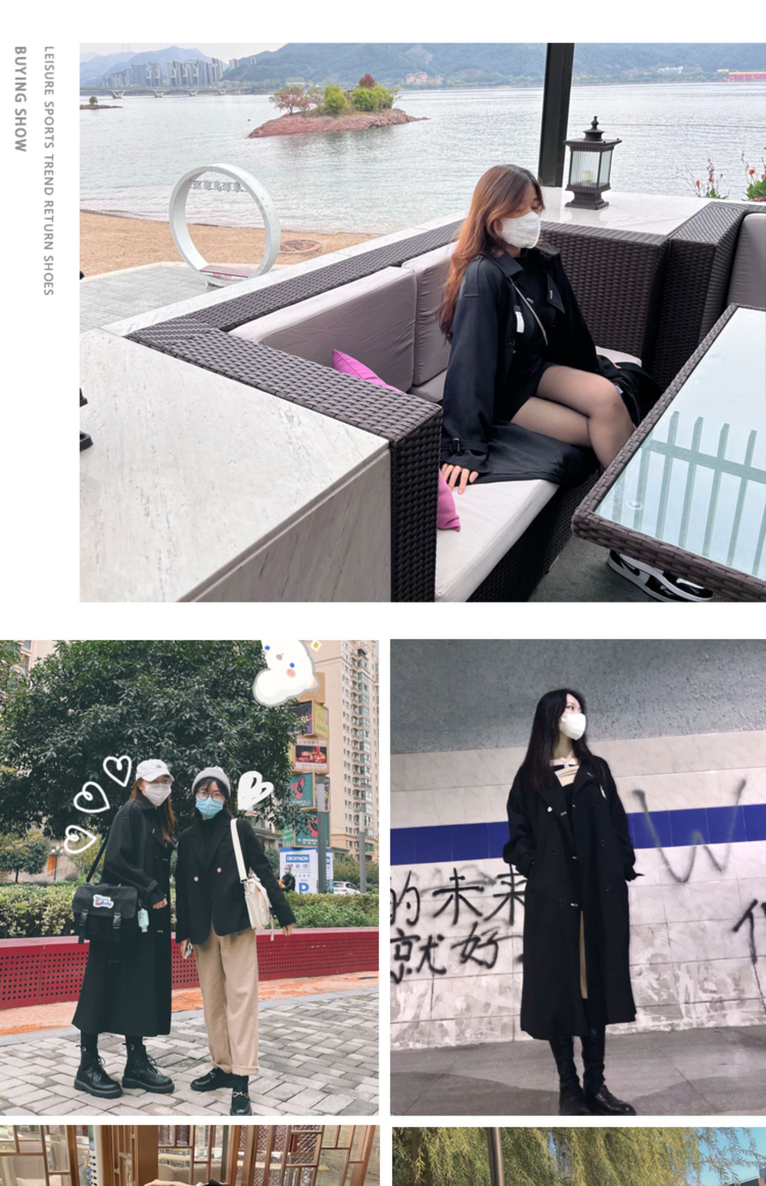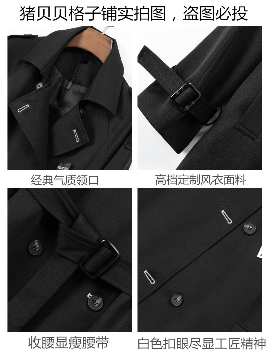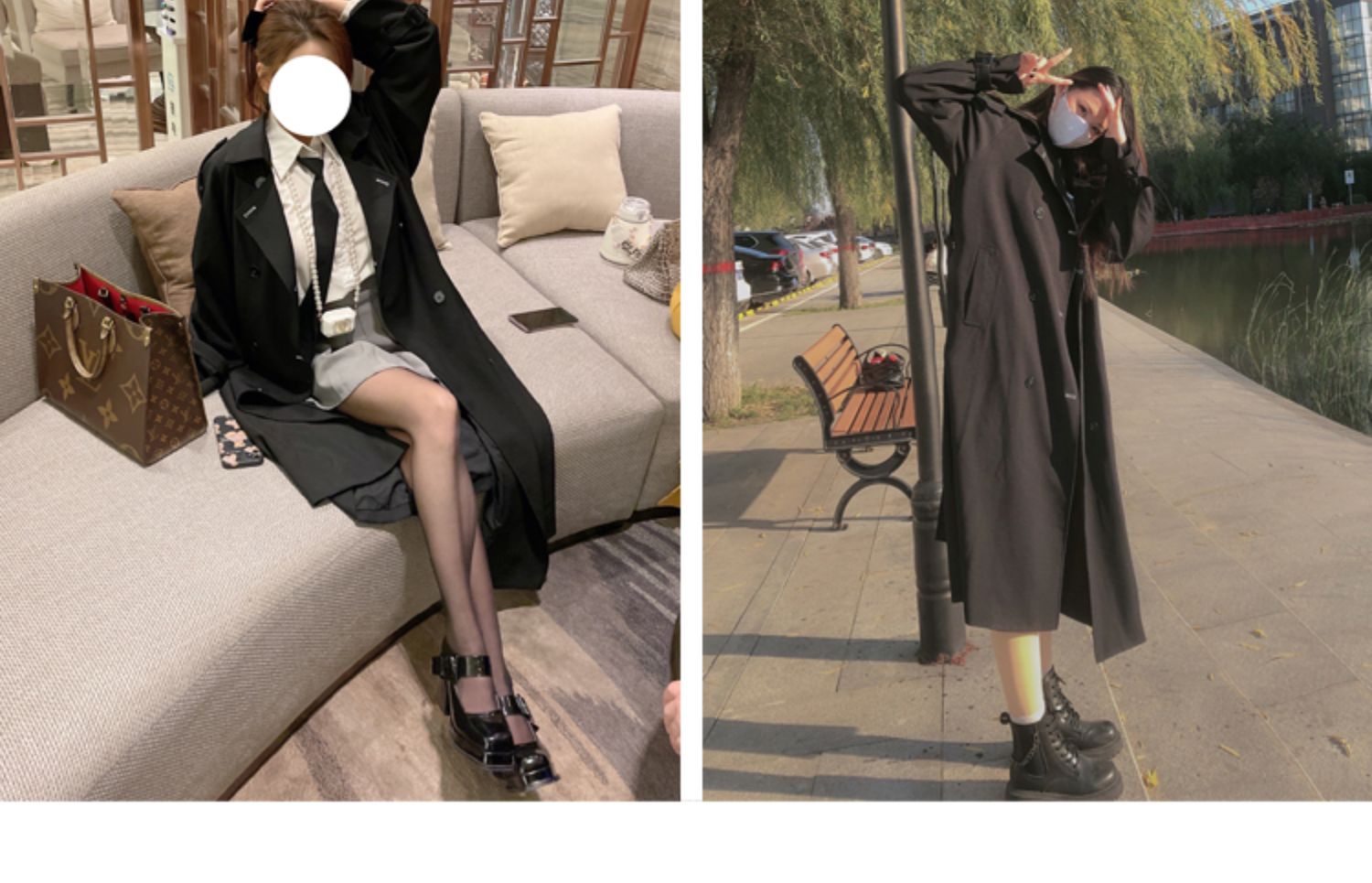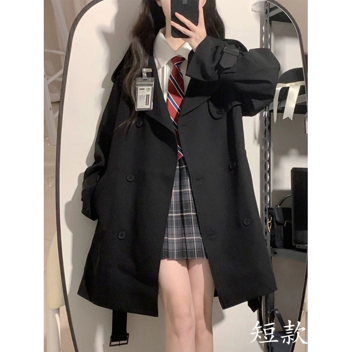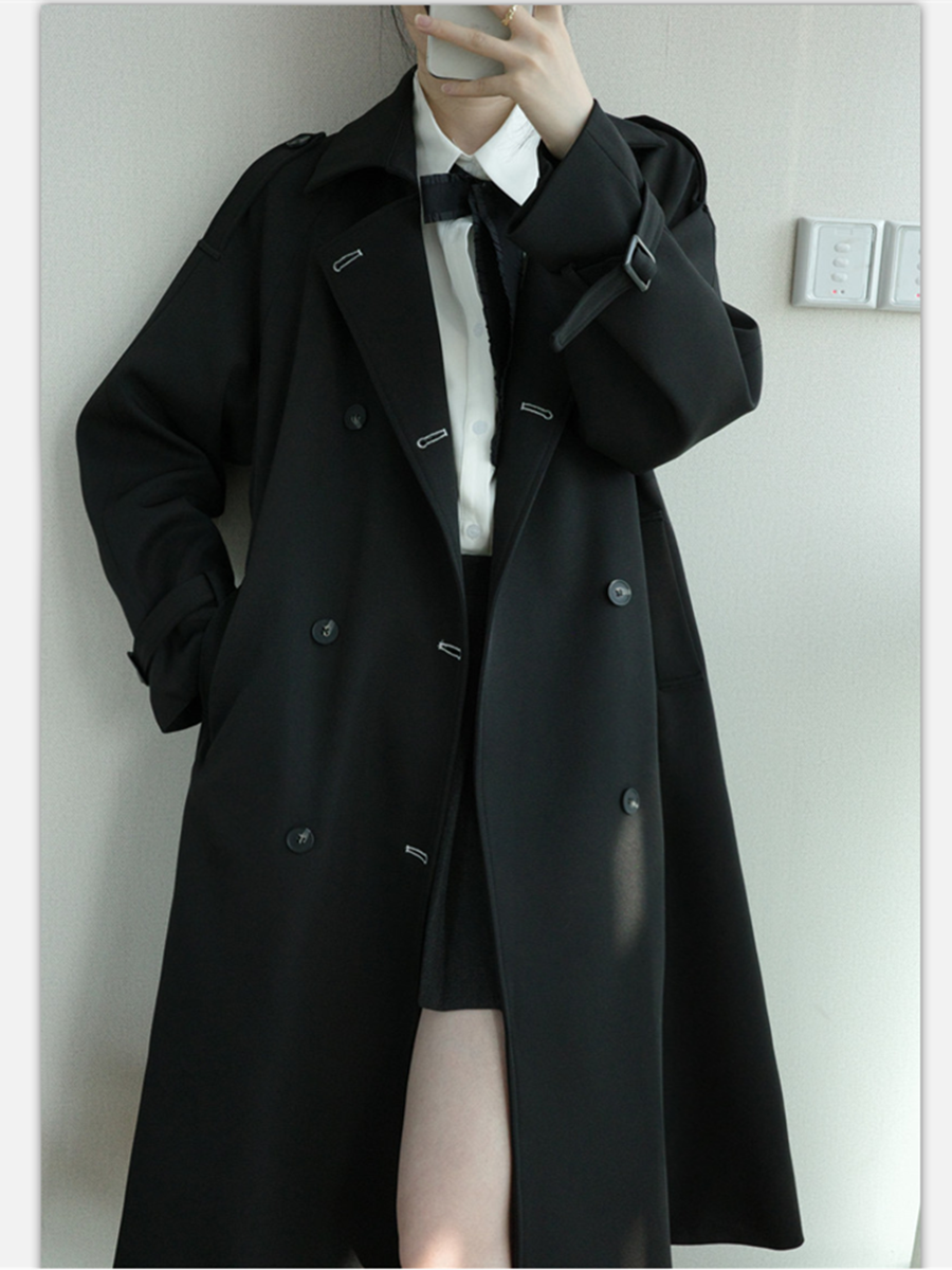 黑色風衣外套女中長款2025秋新款韓系學院風巨好看穿搭大衣小個子