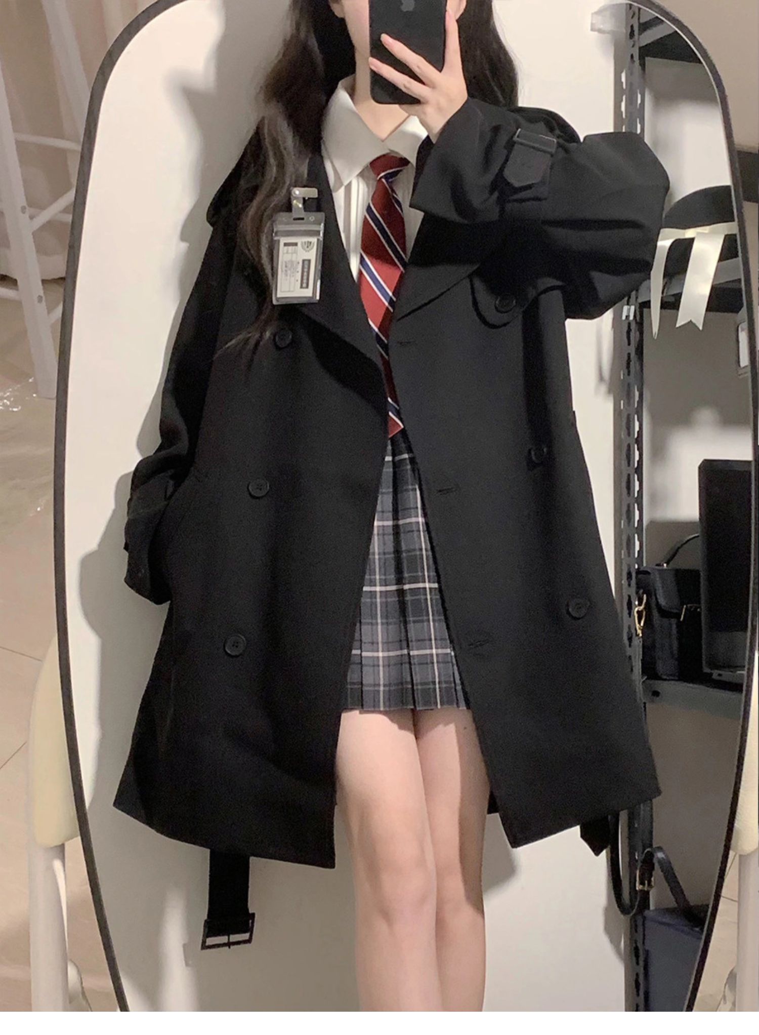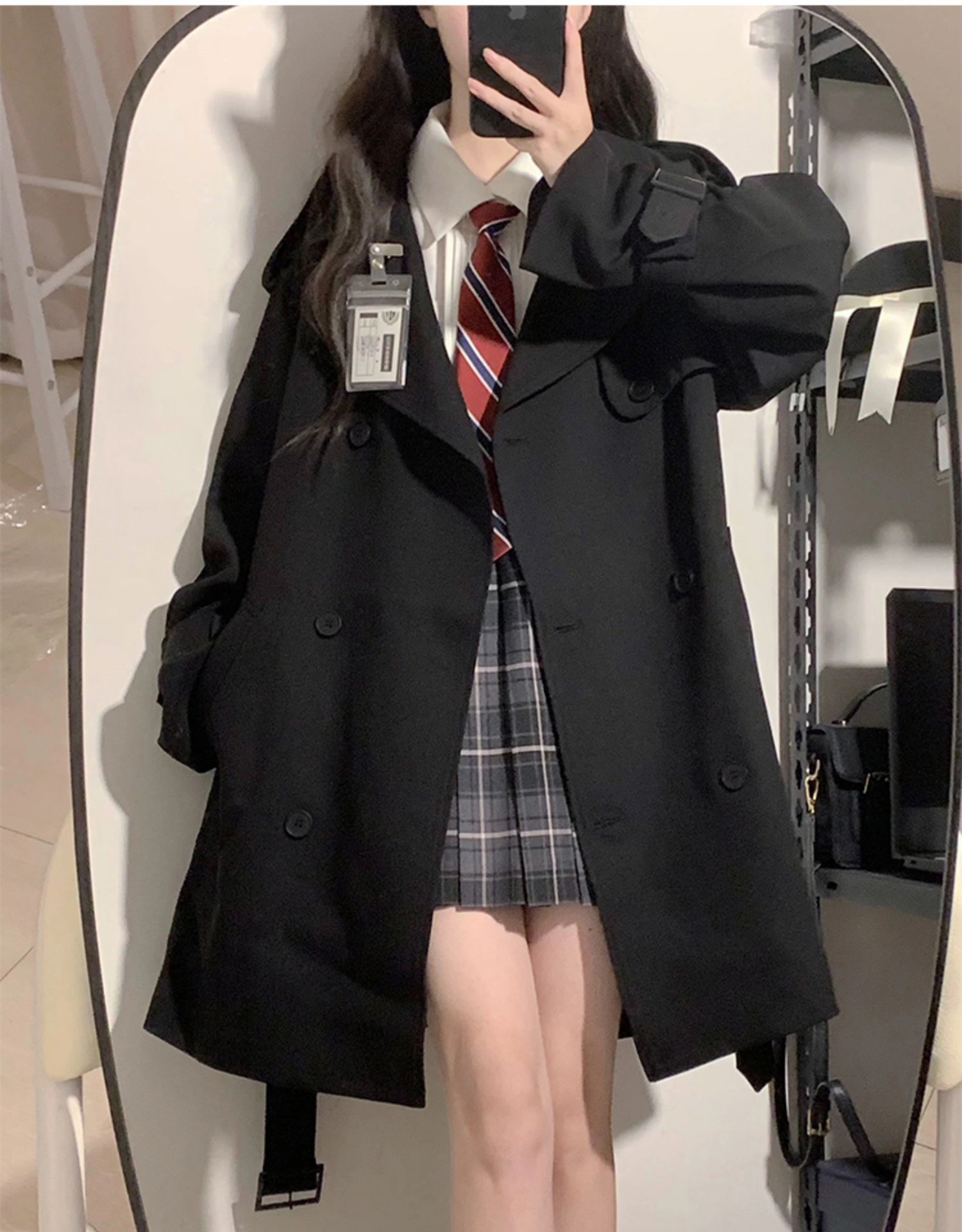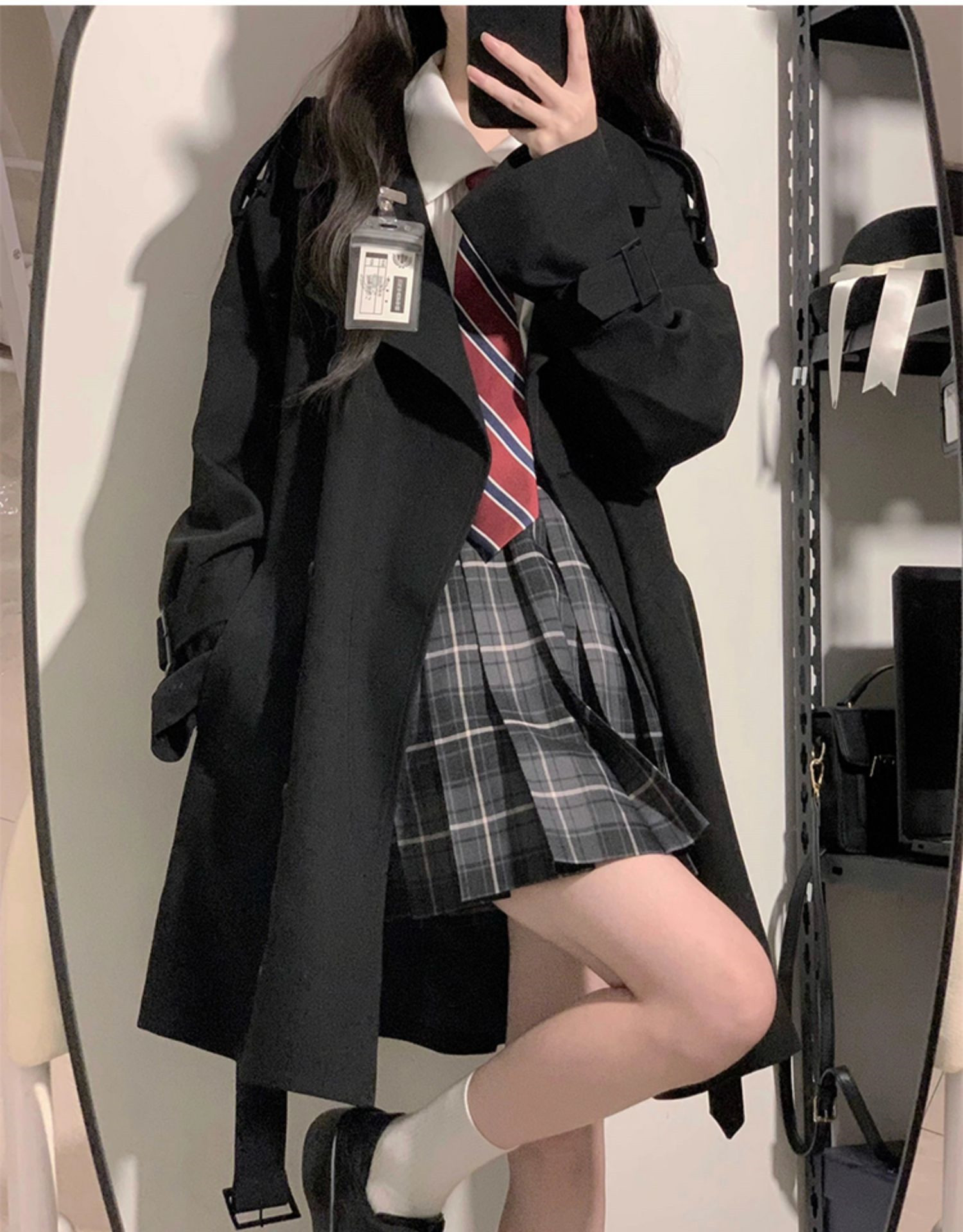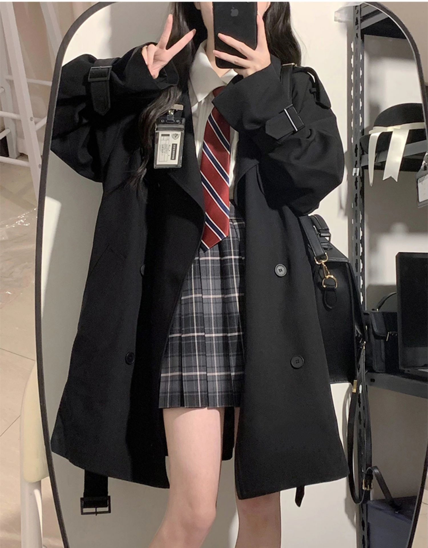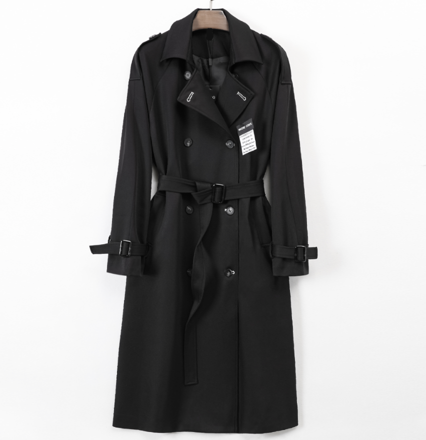 黑色風衣外套女中長款2025秋新款韓系學院風巨好看穿搭大衣小個子