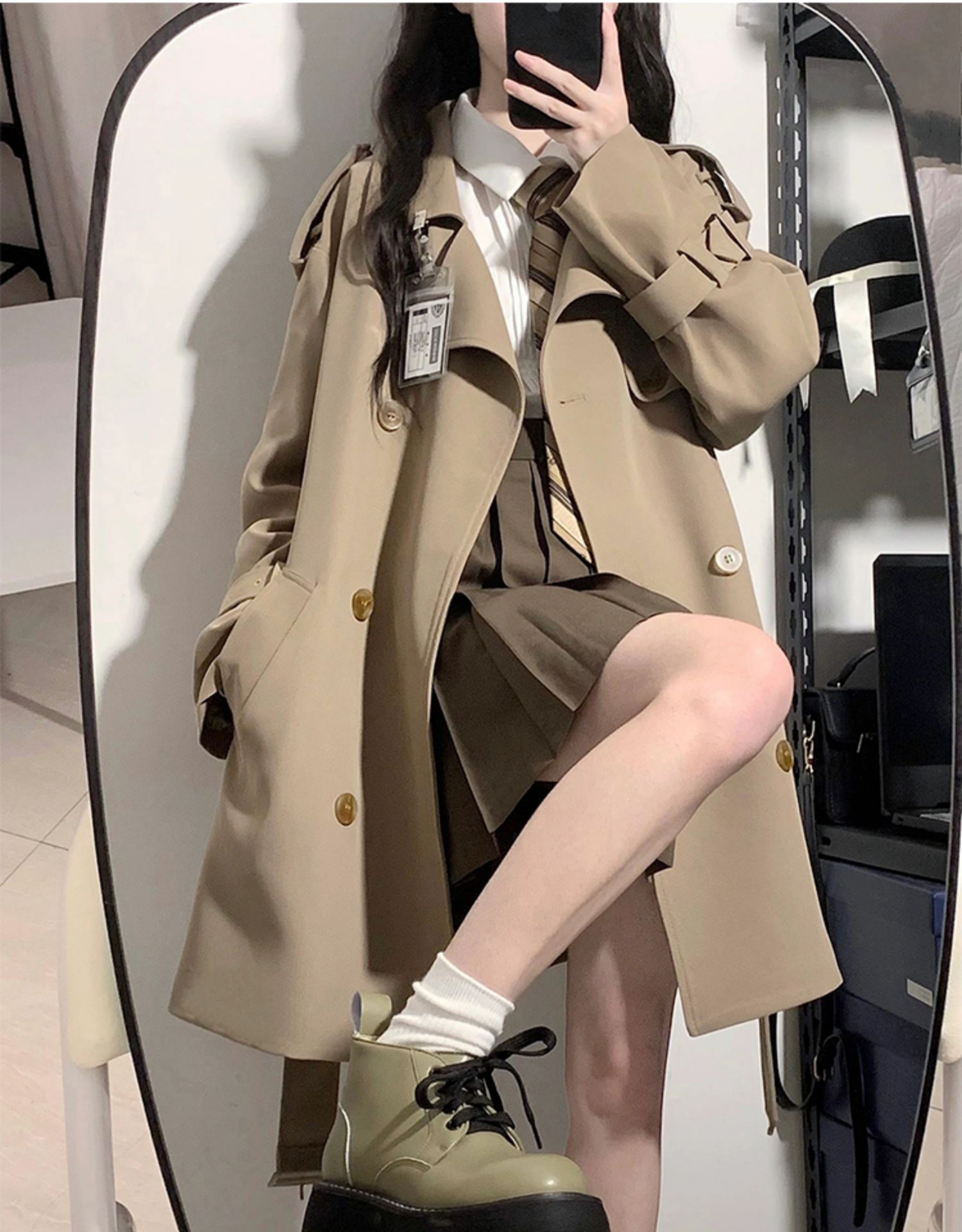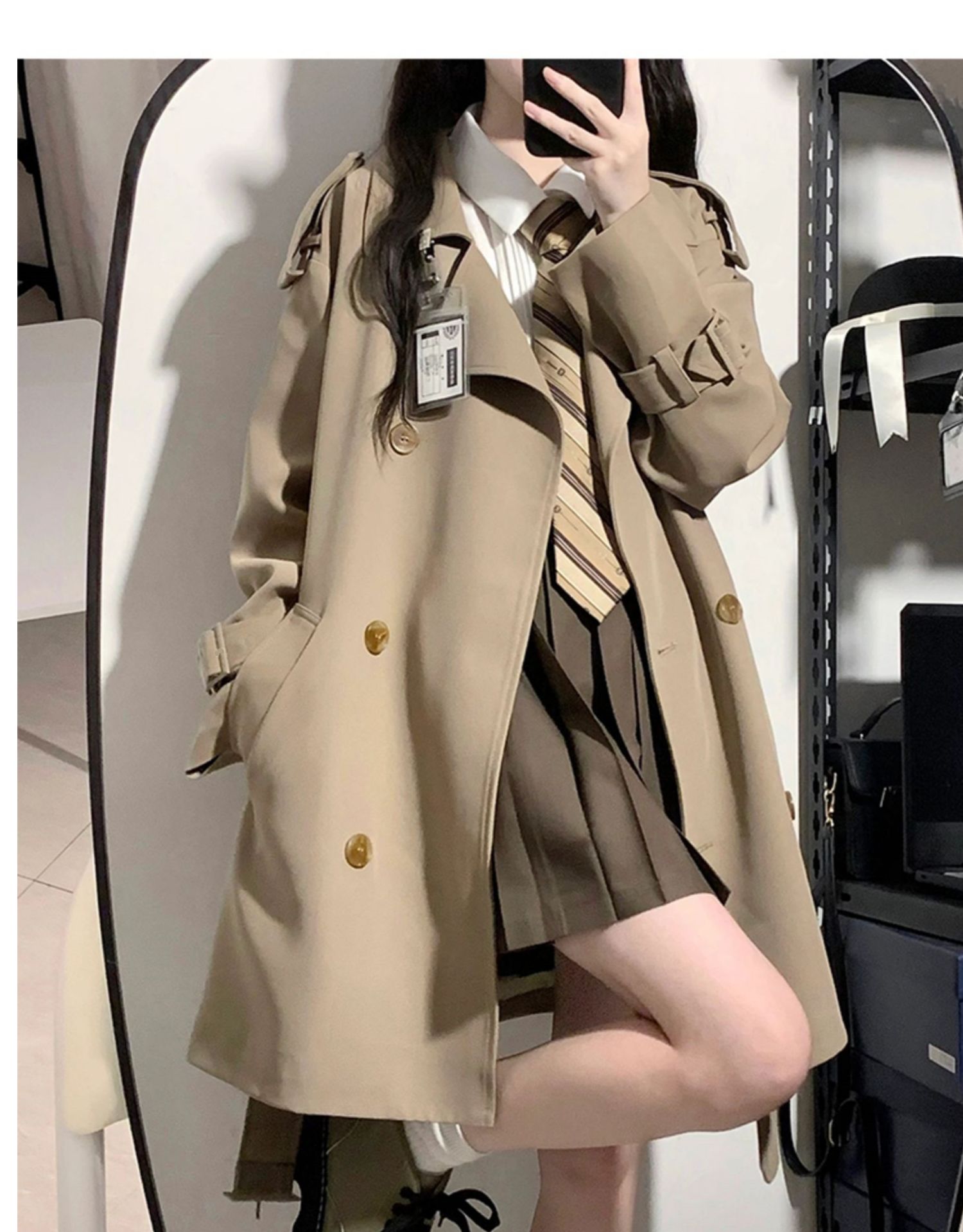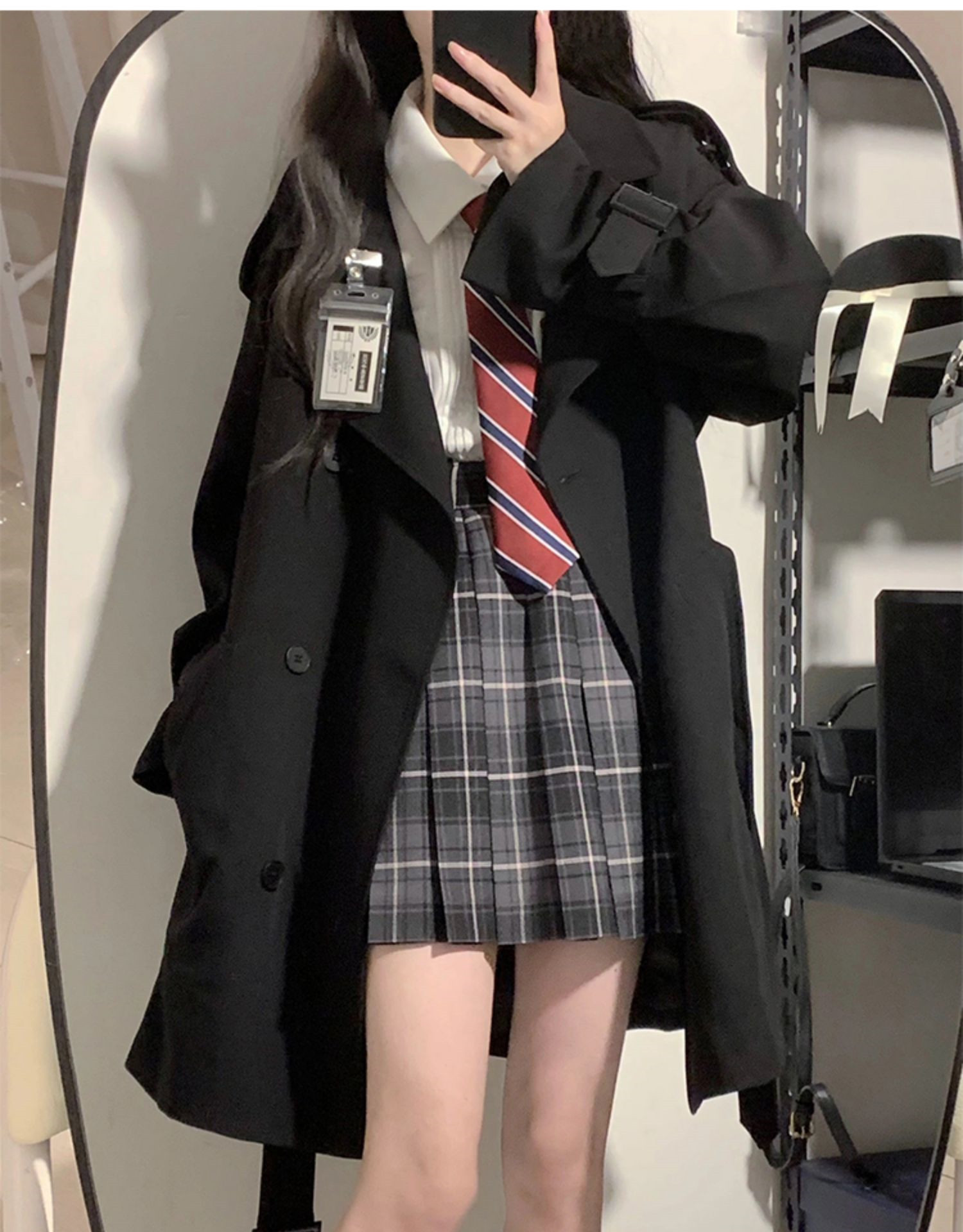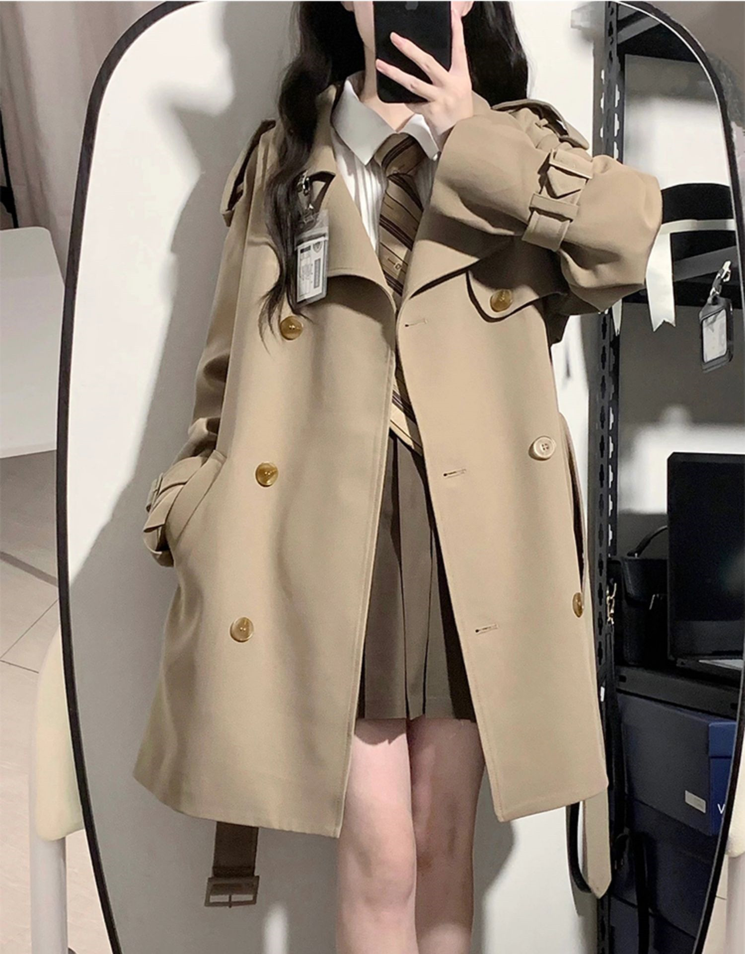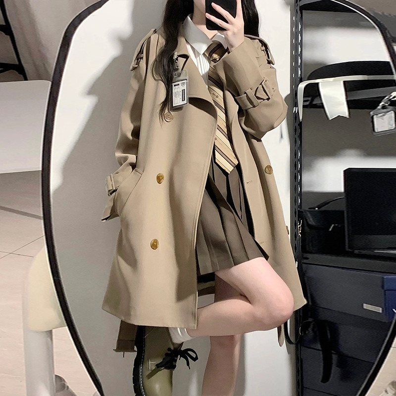 黑色風衣外套女中長款2025秋新款韓系學院風巨好看穿搭大衣小個子