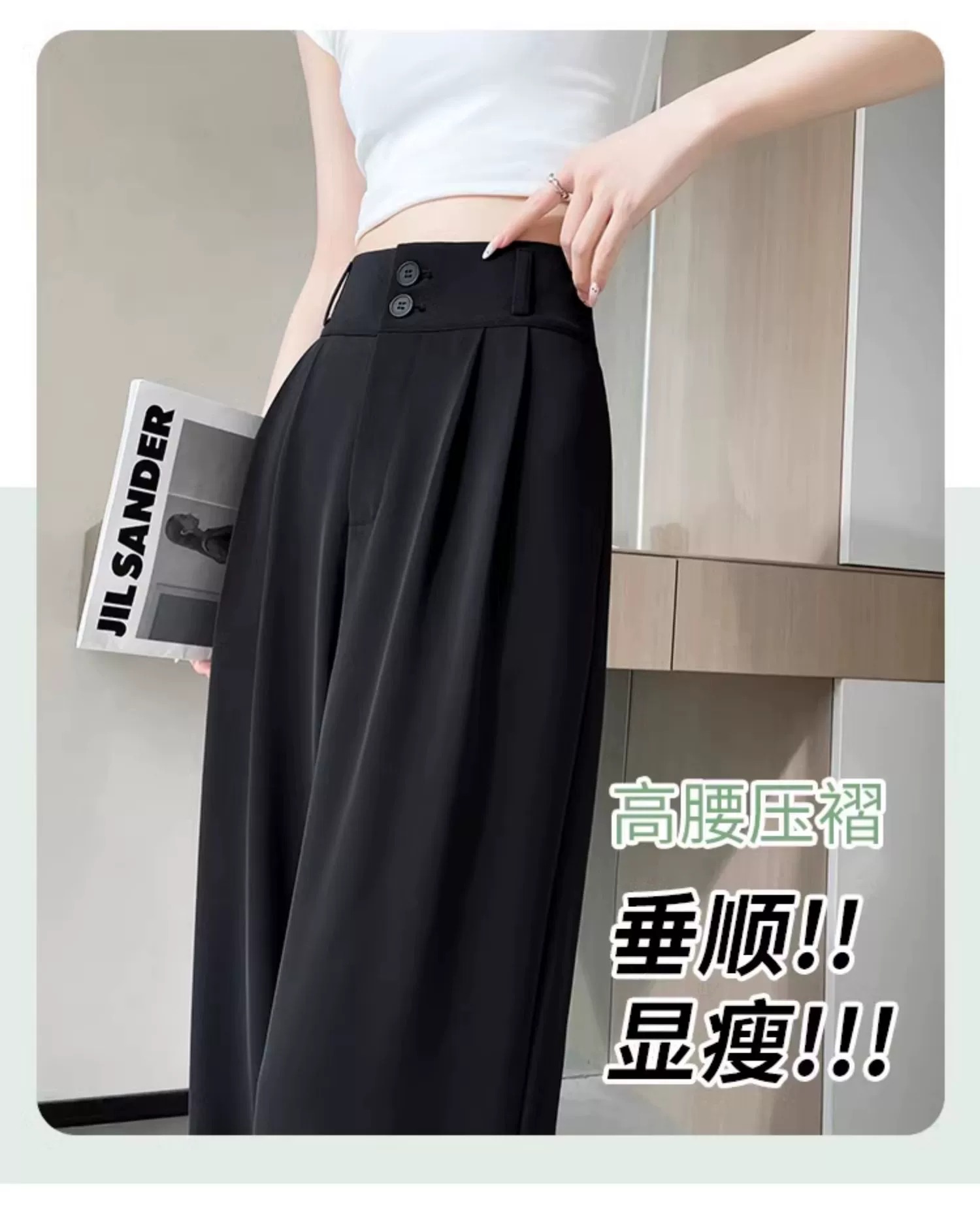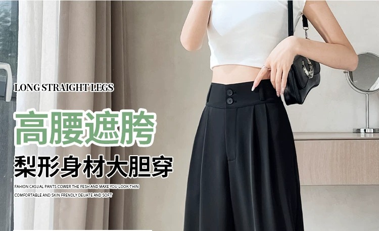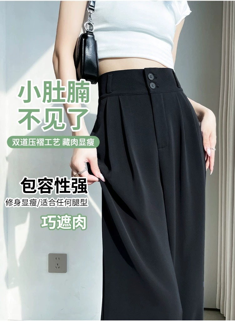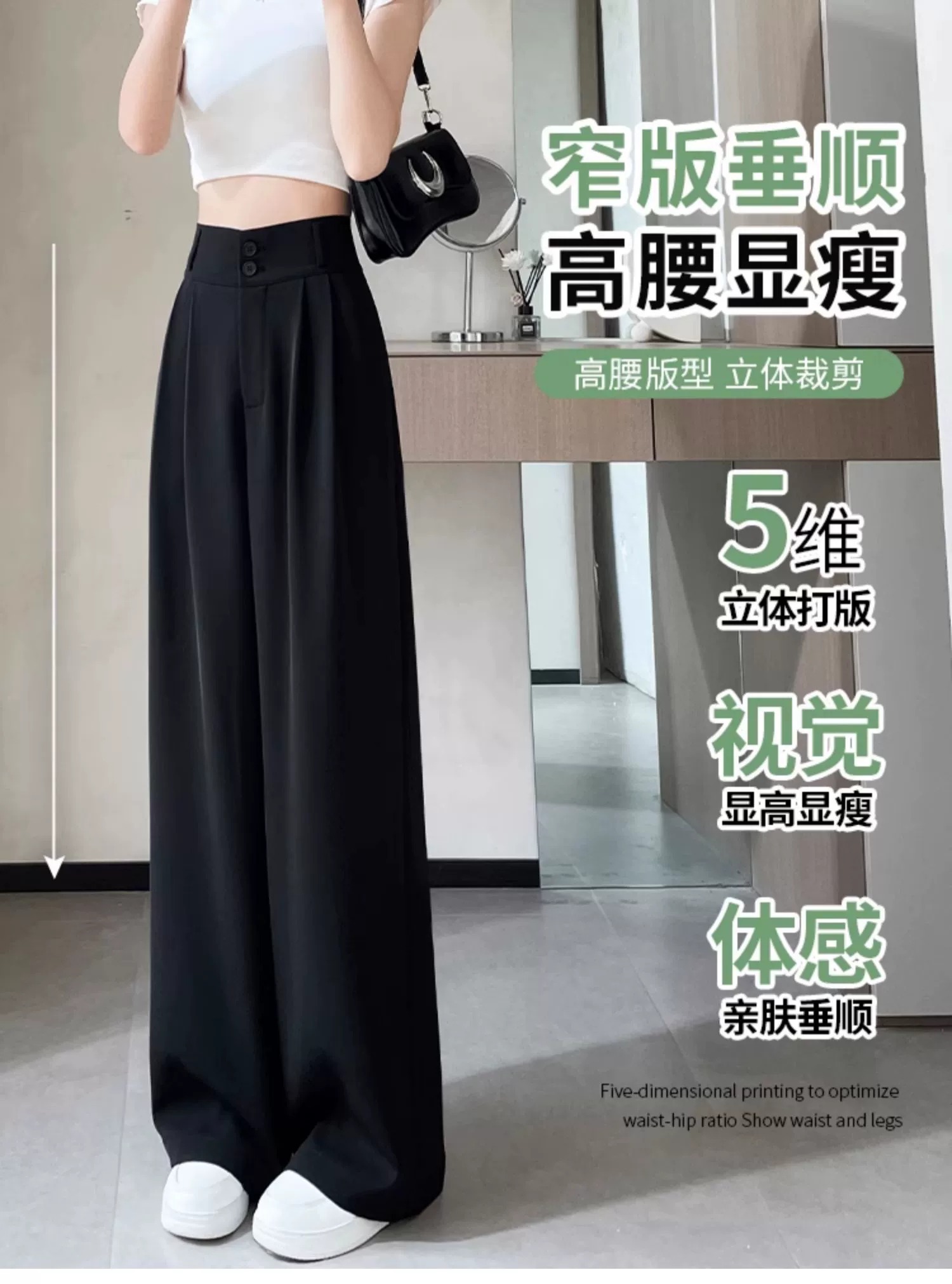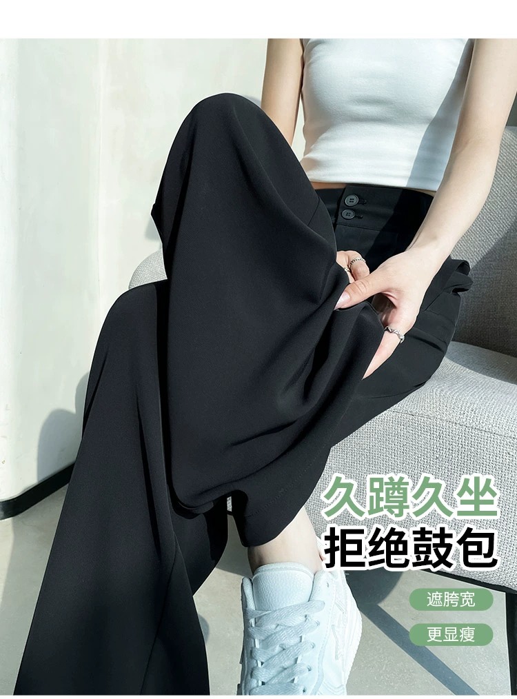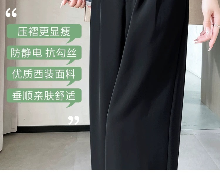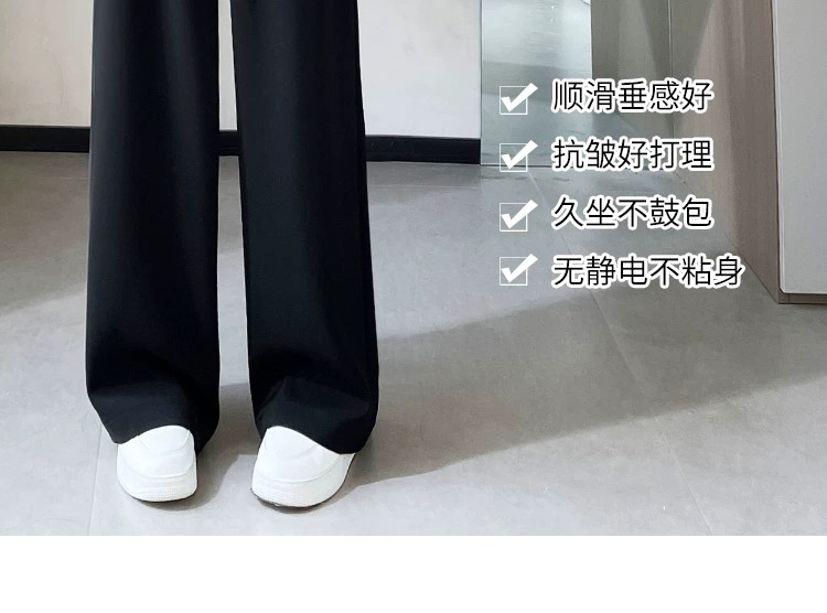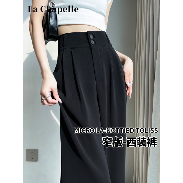 拉夏貝爾黑色西裝褲高級感垂感女春秋夏季西褲冰絲直筒窄版濶腿褲