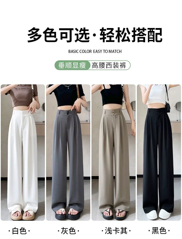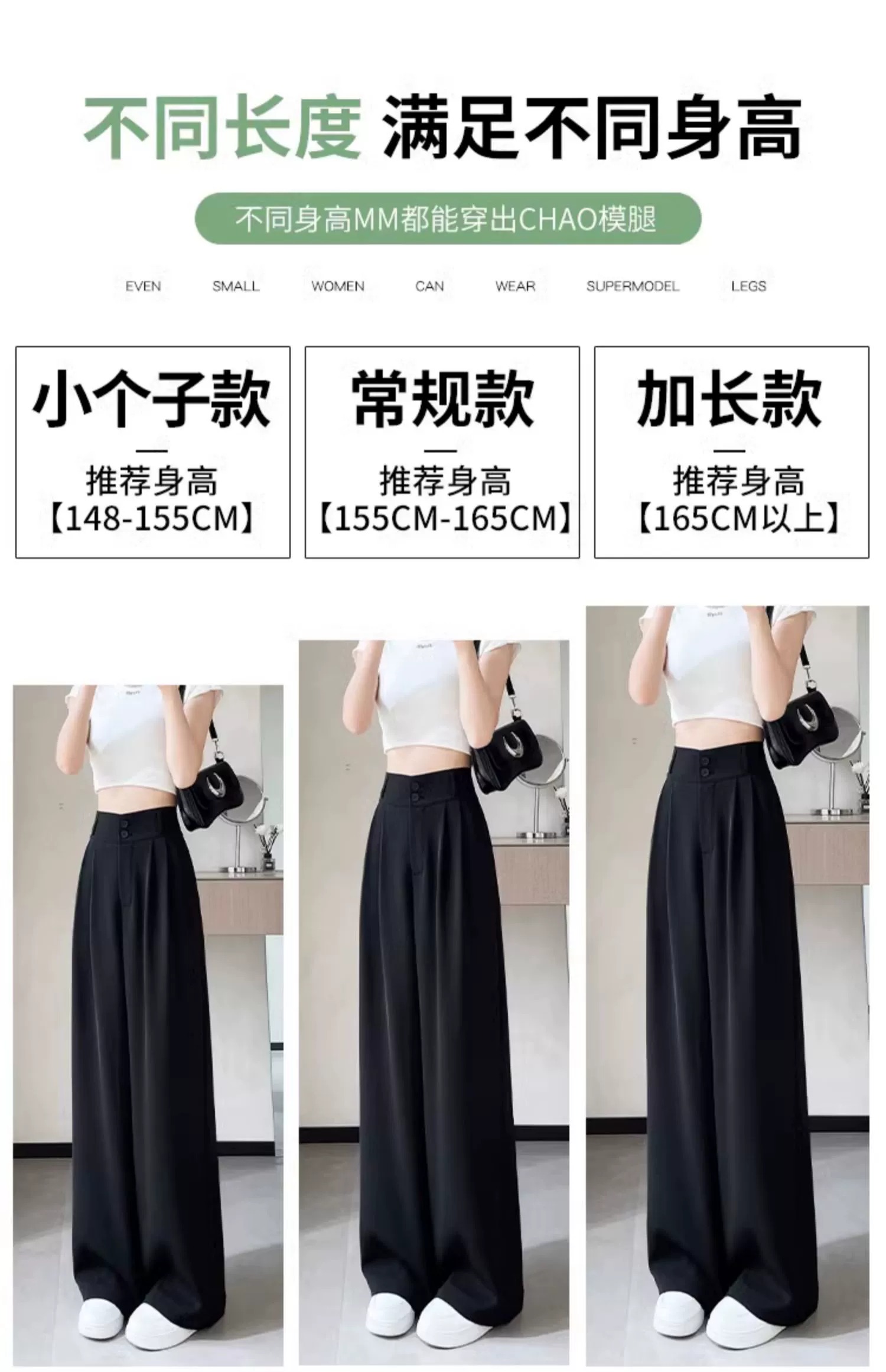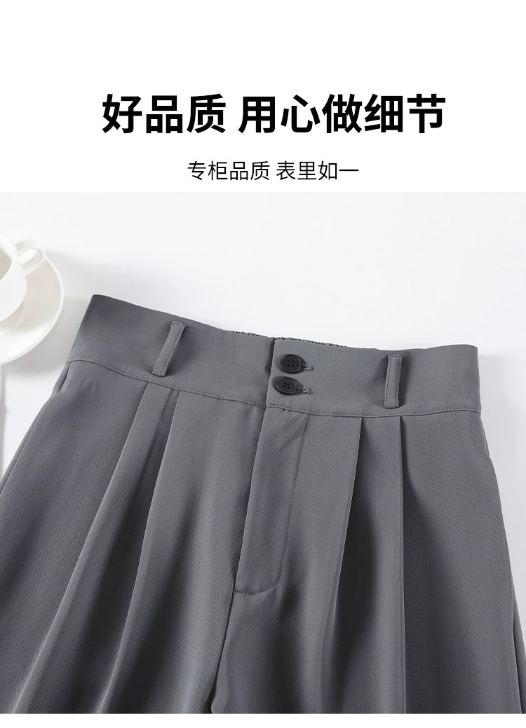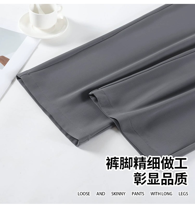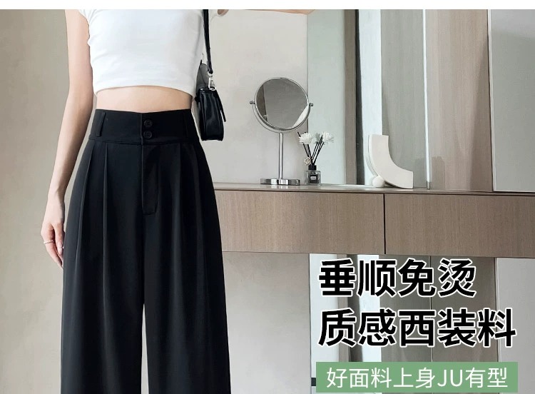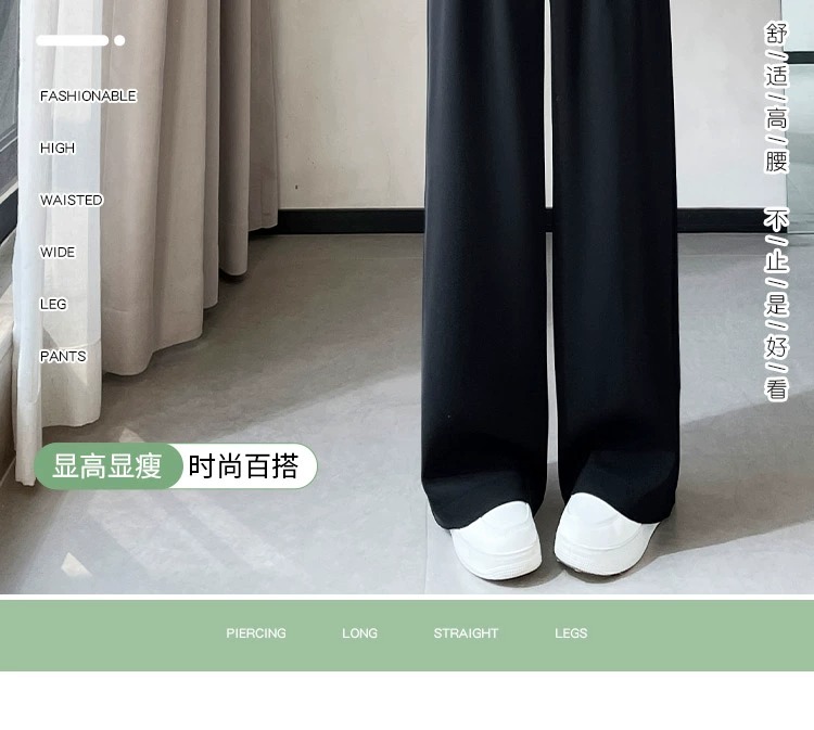 拉夏貝爾黑色西裝褲高級感垂感女春秋夏季西褲冰絲直筒窄版濶腿褲
