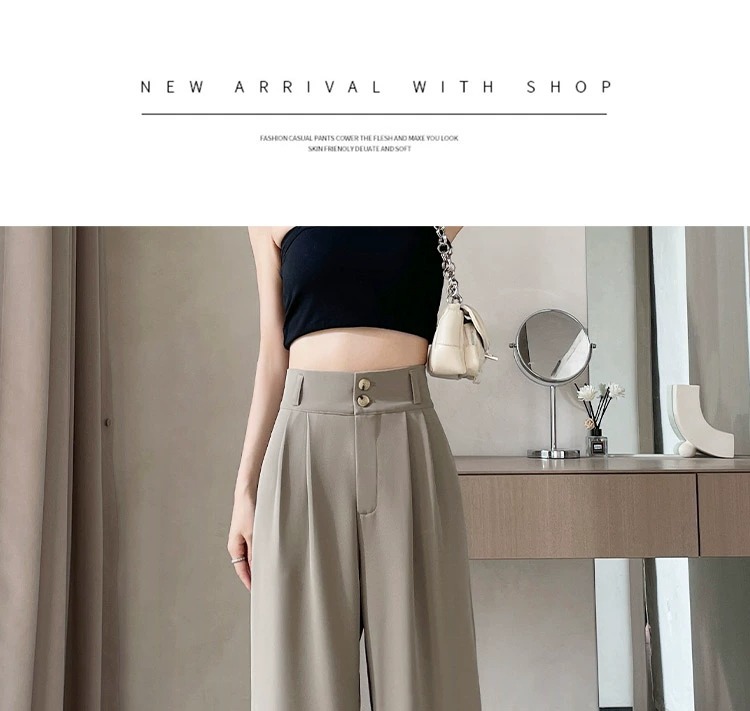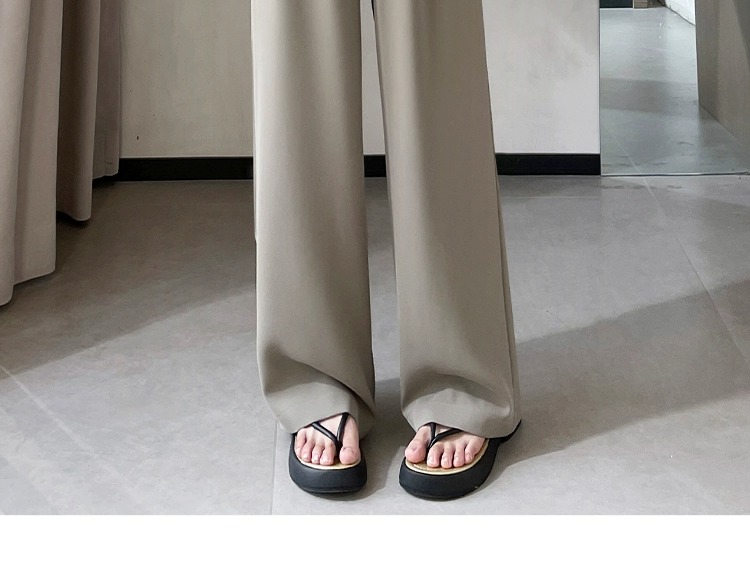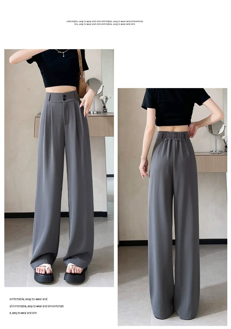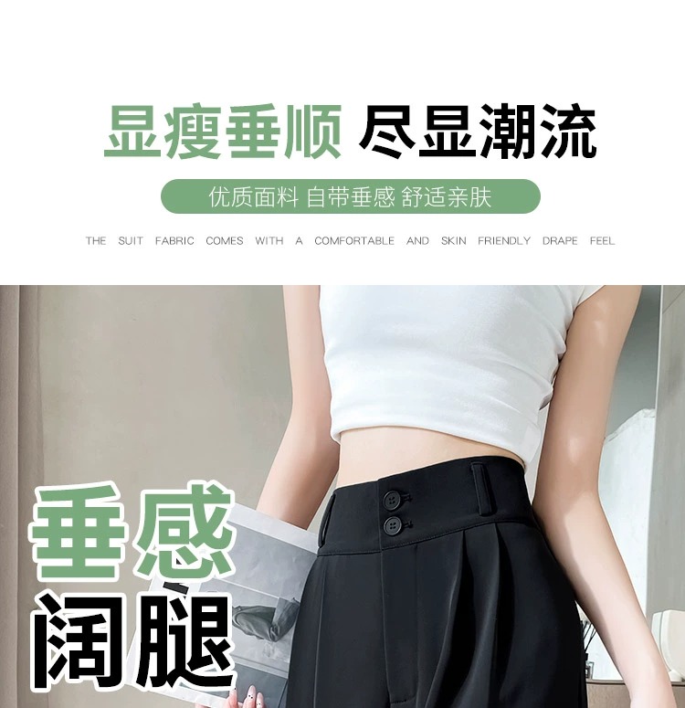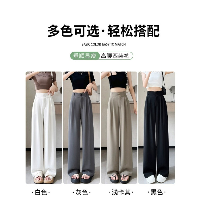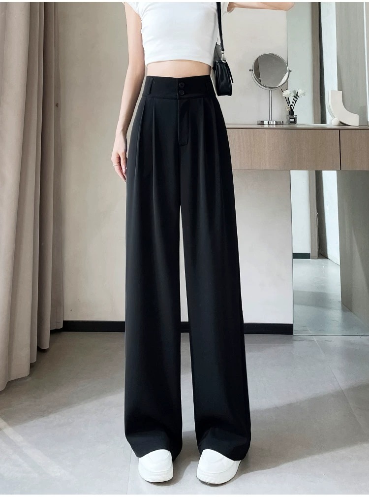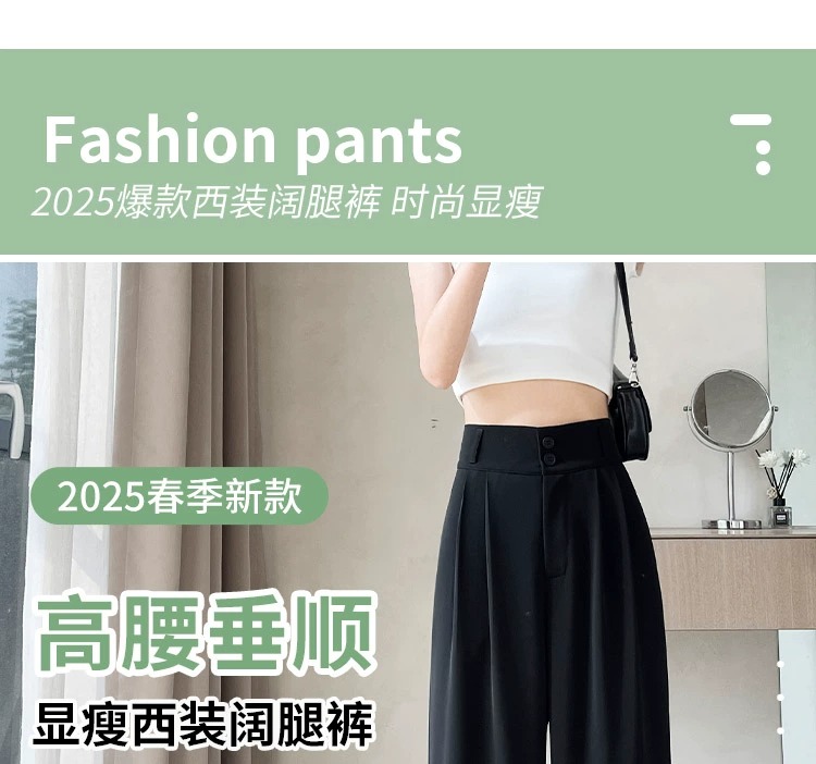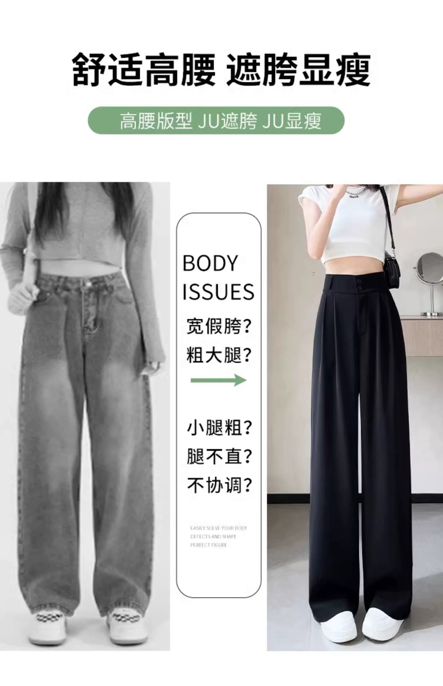 拉夏貝爾黑色西裝褲高級感垂感女春秋夏季西褲冰絲直筒窄版濶腿褲