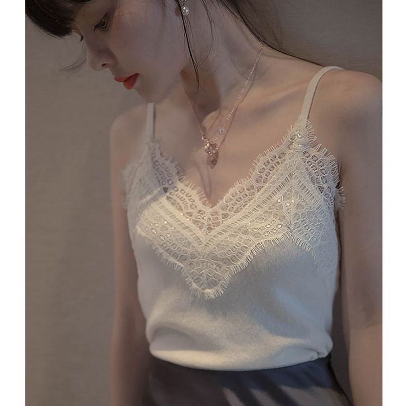 配小西裝內搭蕾絲吊帶背心女高級感西服打底外穿甜辣別致性感上衣