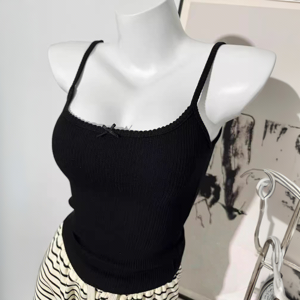 wan能打底!秋季帶胸墊蝴蝶結背心吊帶女2025純欲短款內搭外穿上衣