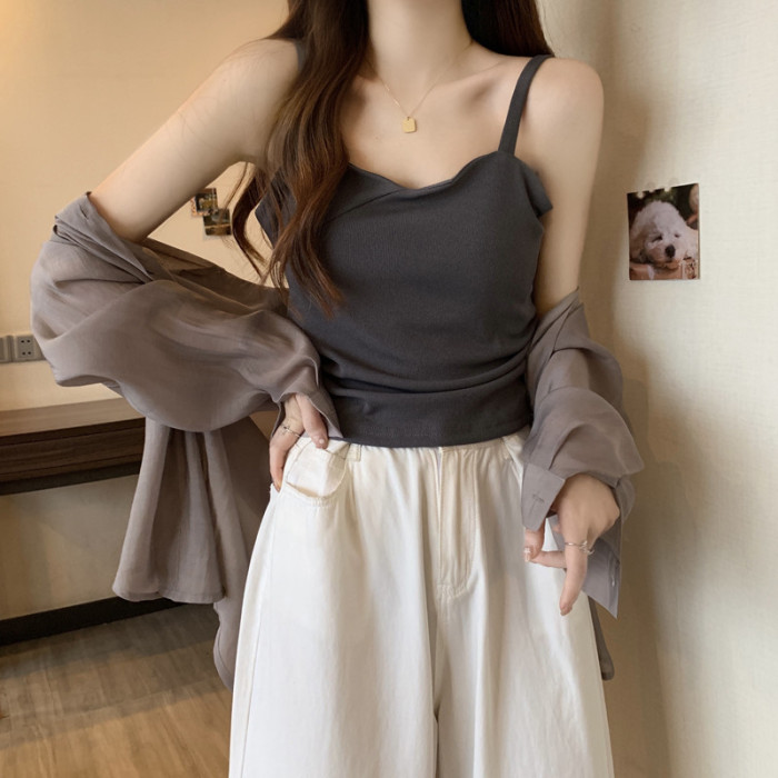 打底吊帶背心女內搭夏季外穿大碼顯瘦遮肚辣妹一字肩短款上衣胖mm