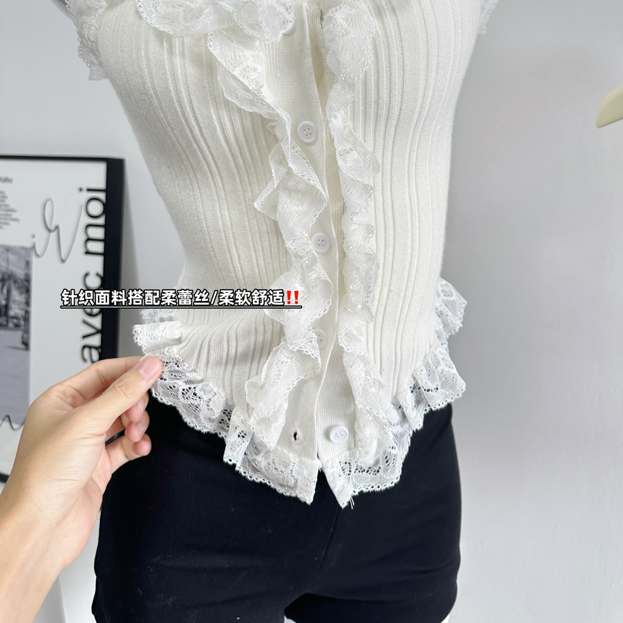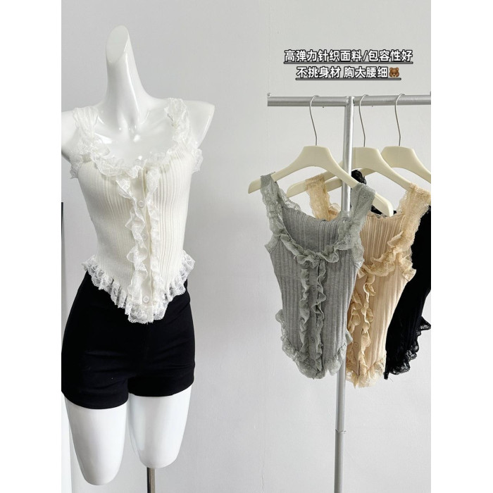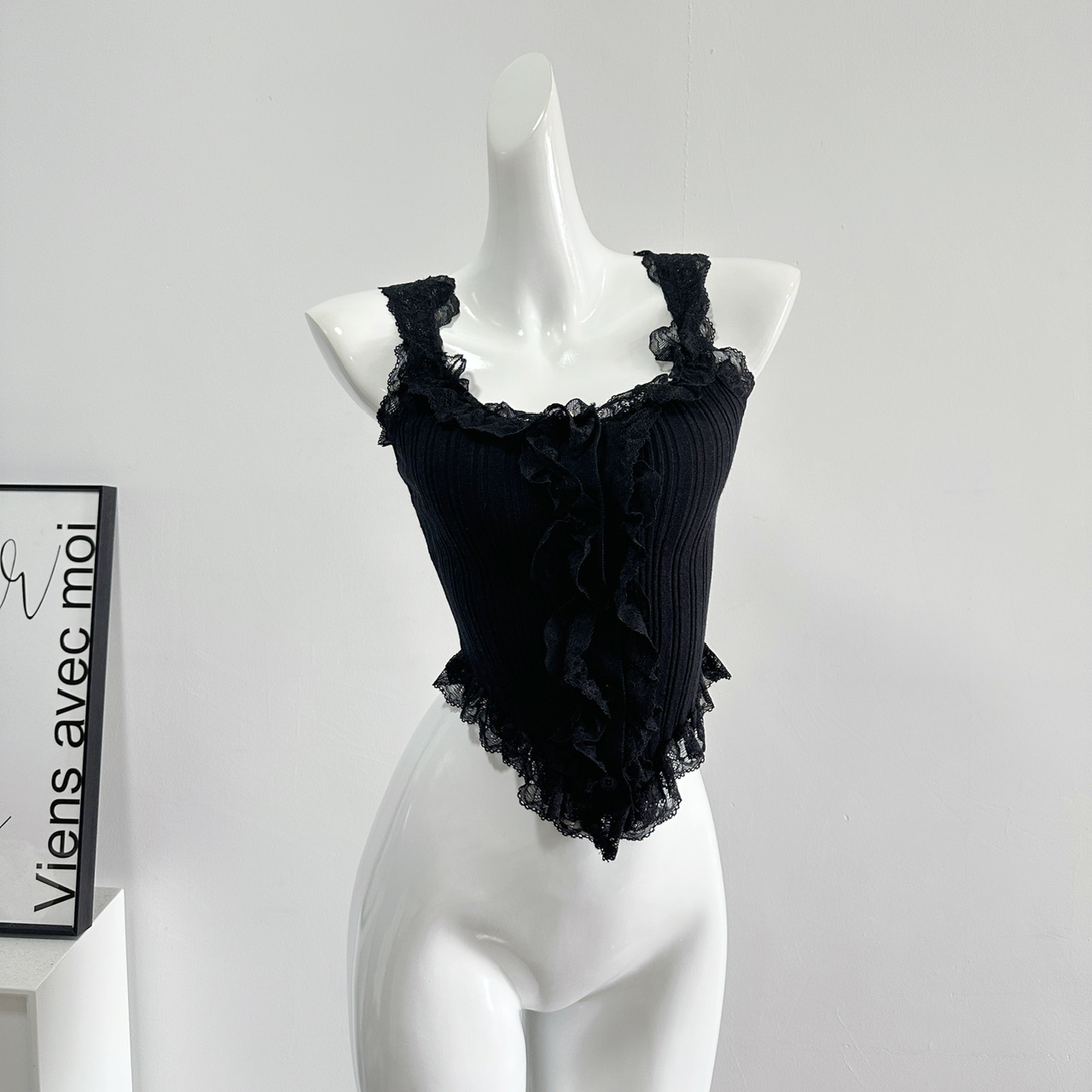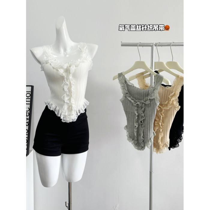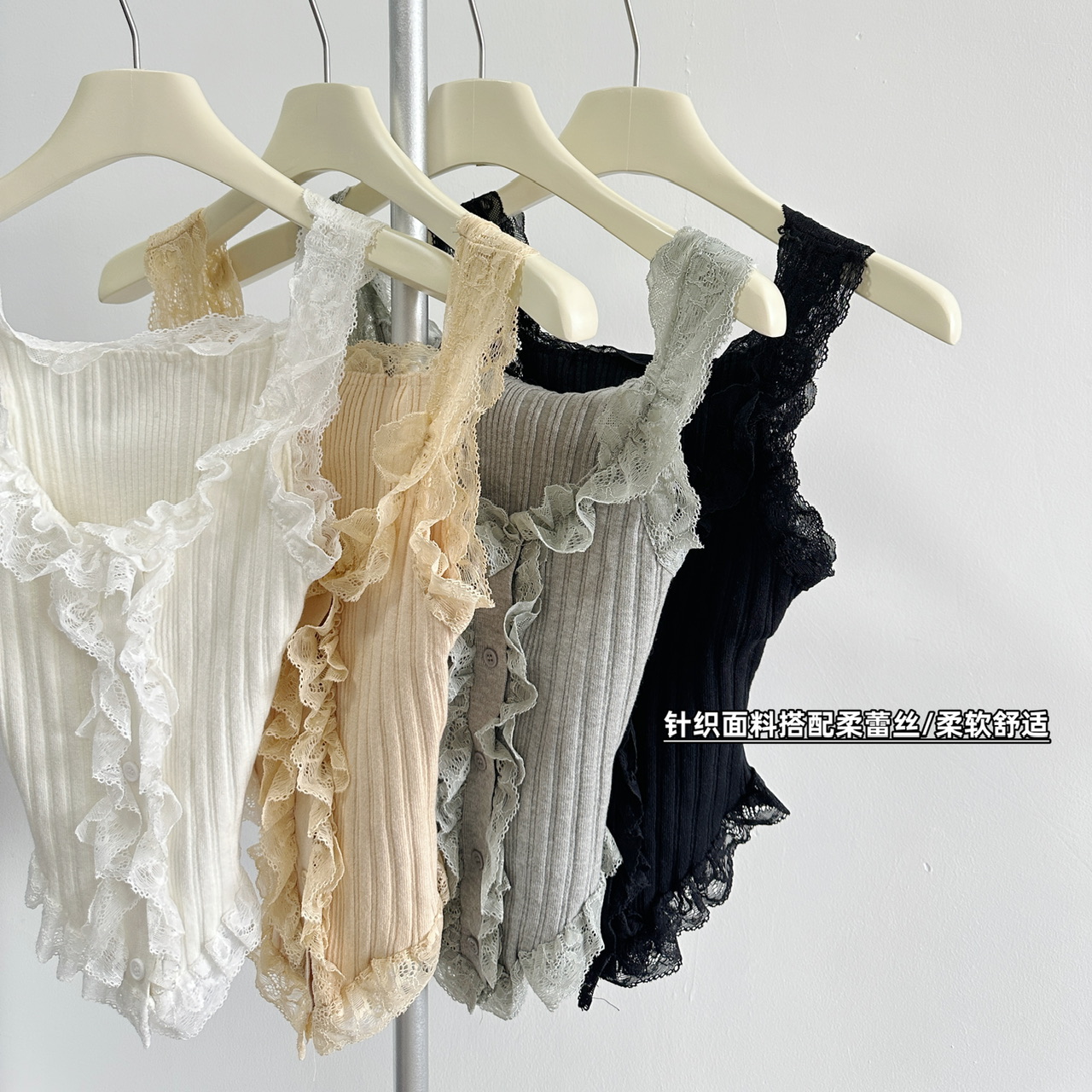POPW自製 甜辣妹蕾絲針織吊帶背心女夏2025新款小衆外穿短款上衣